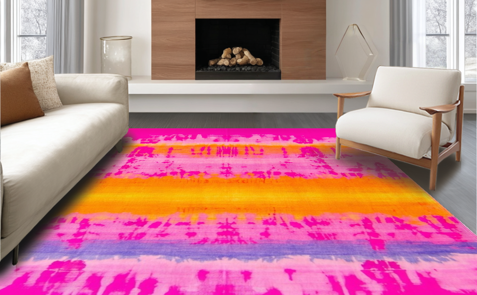 Ultra Soft Area Rug, Non Slip, Stain Resistant, Washable Area Rugs for Living Room, Bedroom, Delightful Colorful Pastel Swirl Pattern(Pink) Overview: