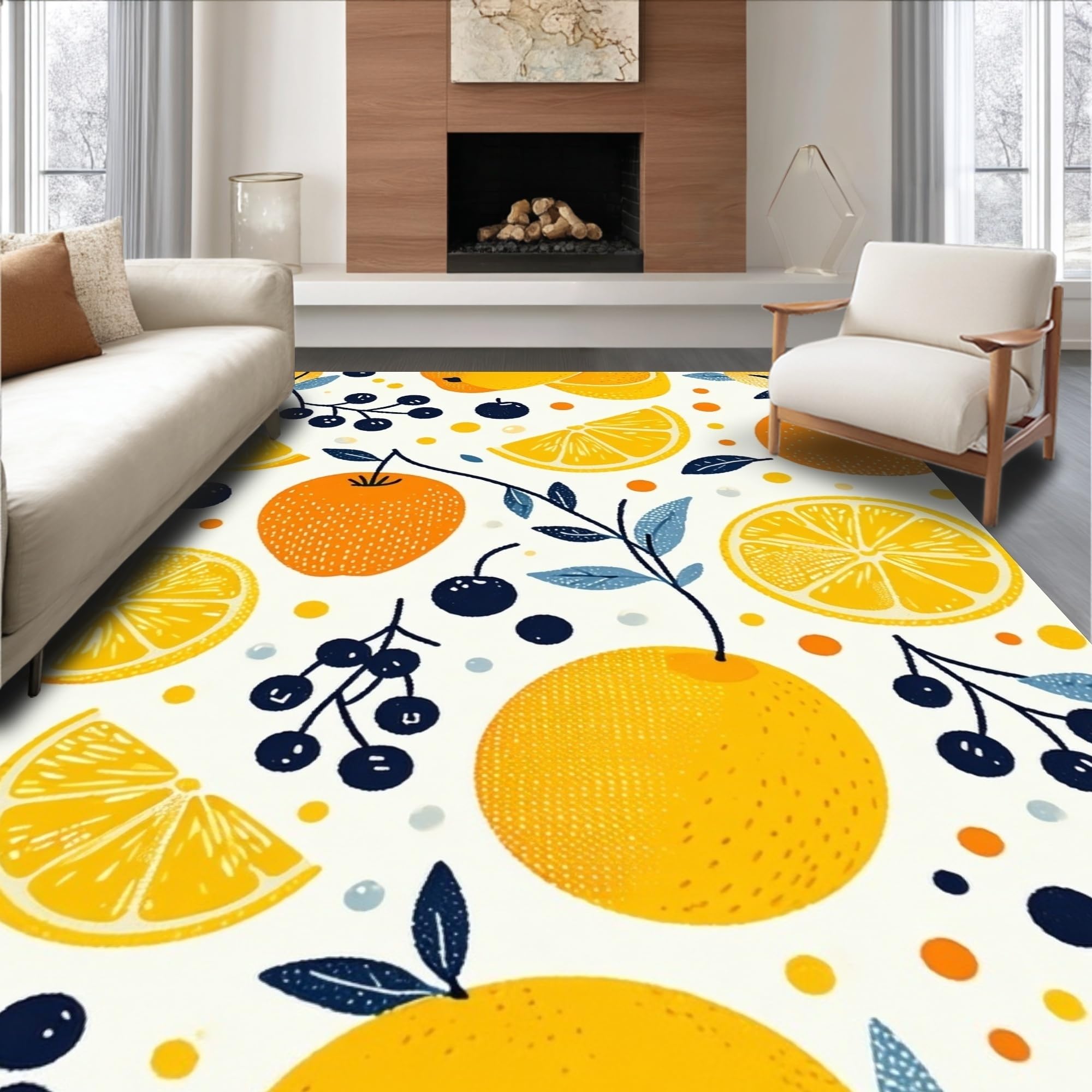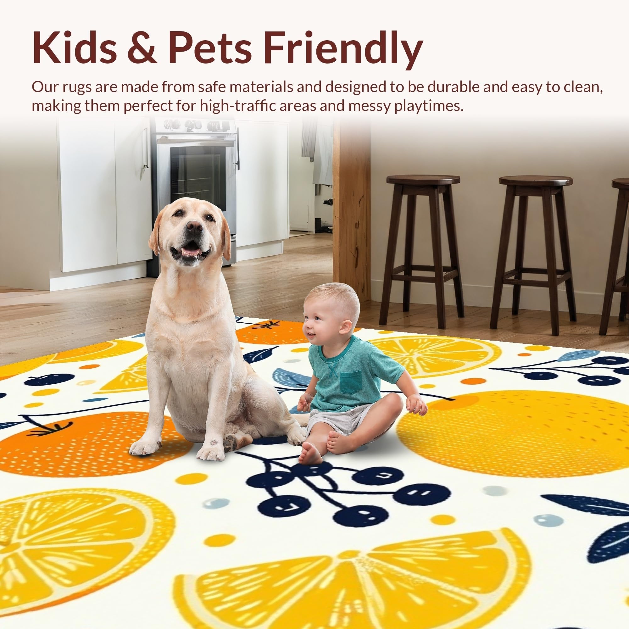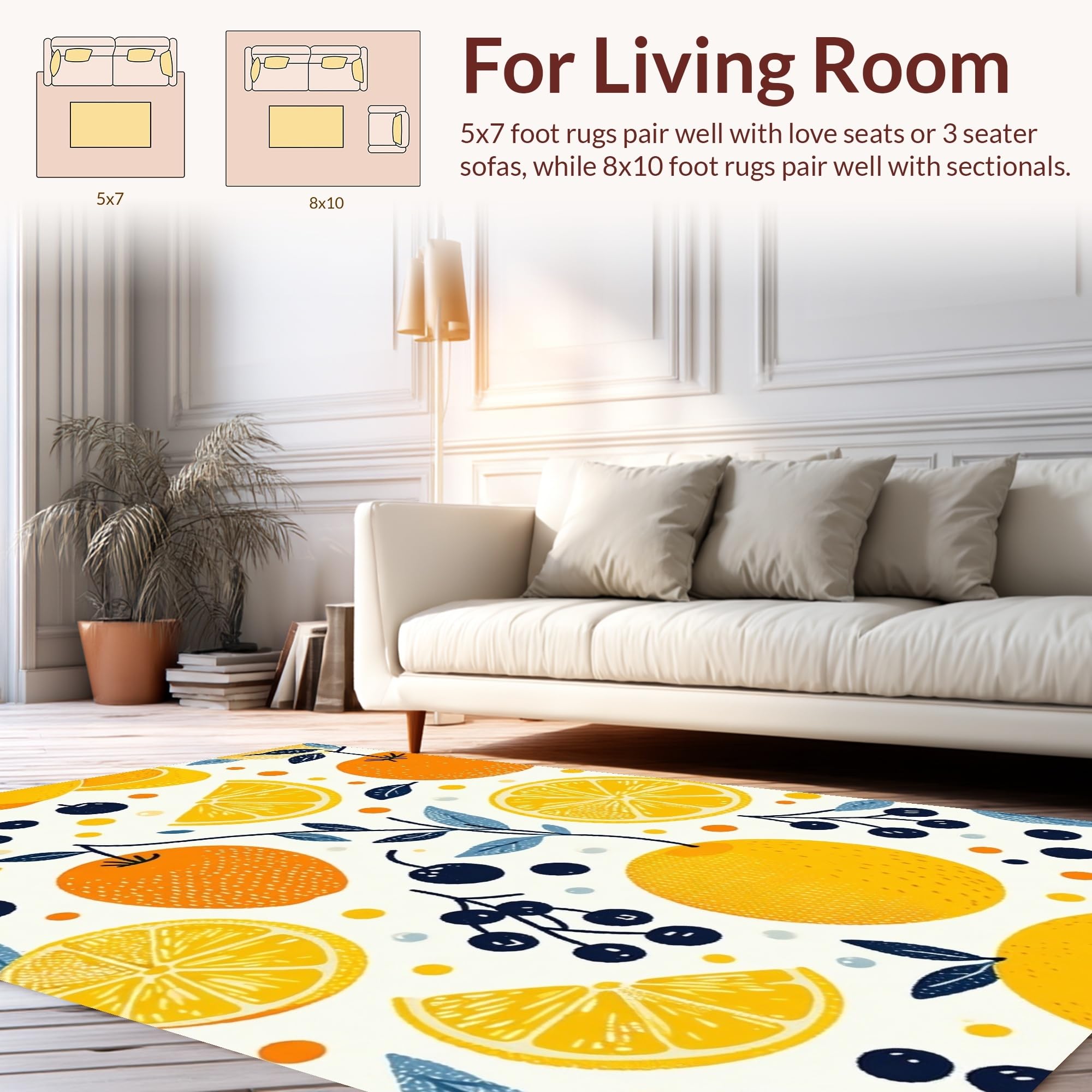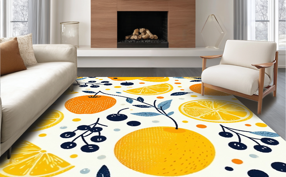 Ultra Soft Area Rug, Non Slip, Stain Resistant, Washable Area Rugs for Living Room, Bedroom, Delightful Fresh Fruit Design Elements(Orange) Overview: