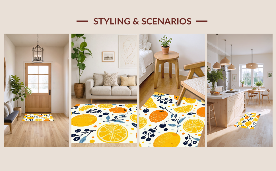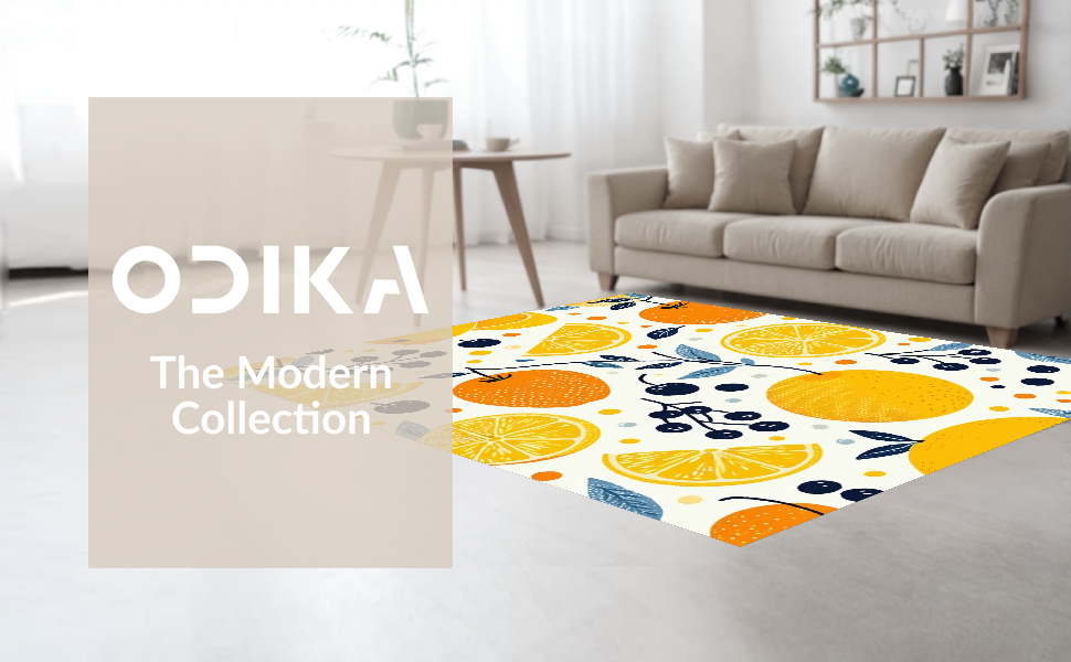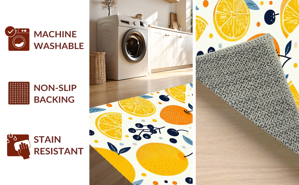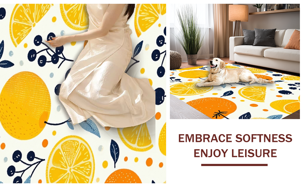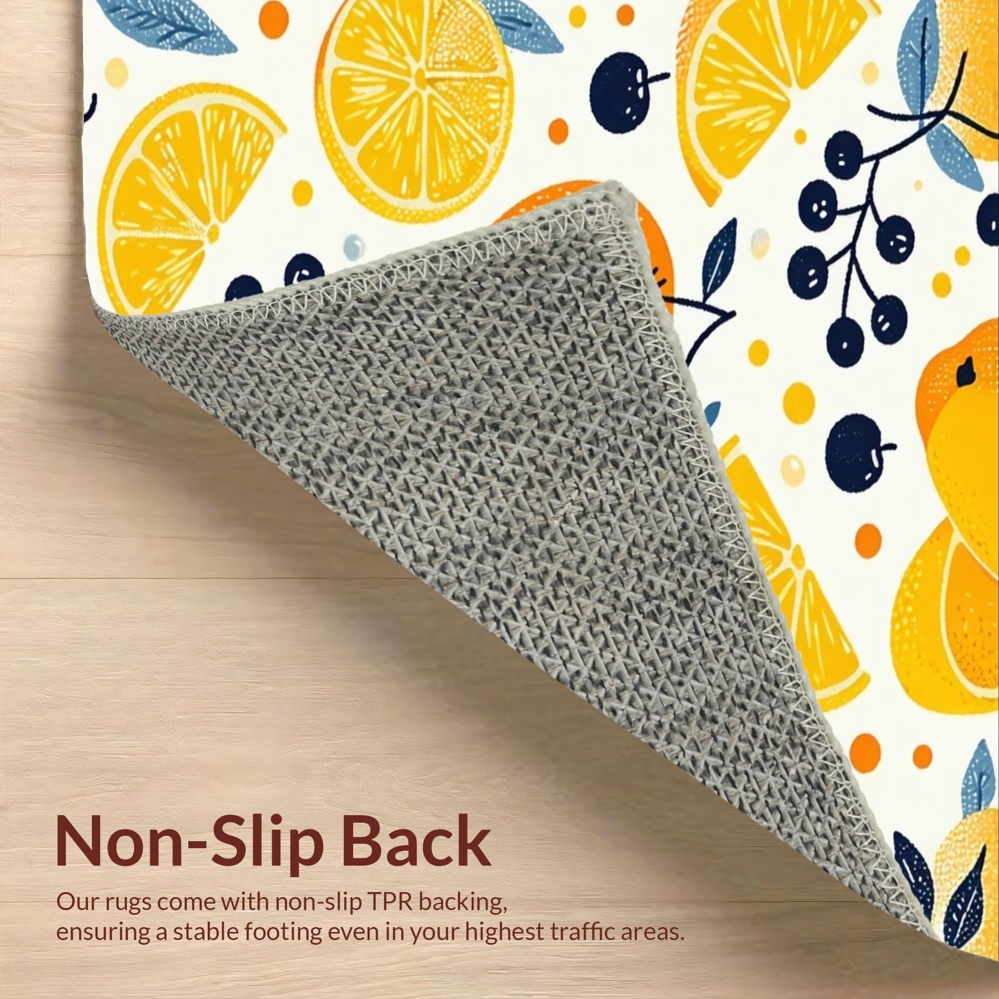Ultra Soft Area Rug, Non Slip, Stain Resistant, Washable Area Rugs for Living Room, Bedroom, Delightful Fresh Fruit Design Elements(Orange) Overview: