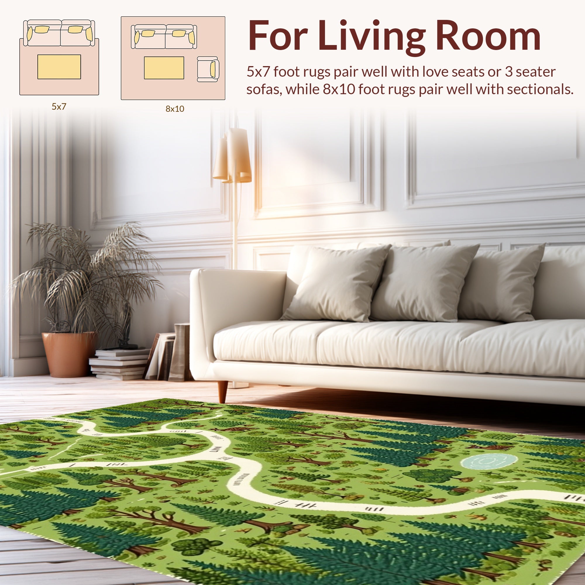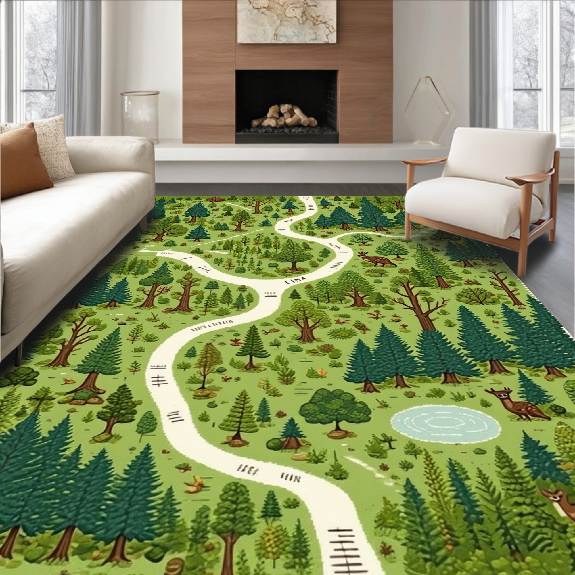 Flatwoven High Traffic Area Rug, Delightful Pastel Woodland Scene, Non Slip, Stain Resistant, Washable Area Rugs for Living Room, Bedroom (Green) Overview: