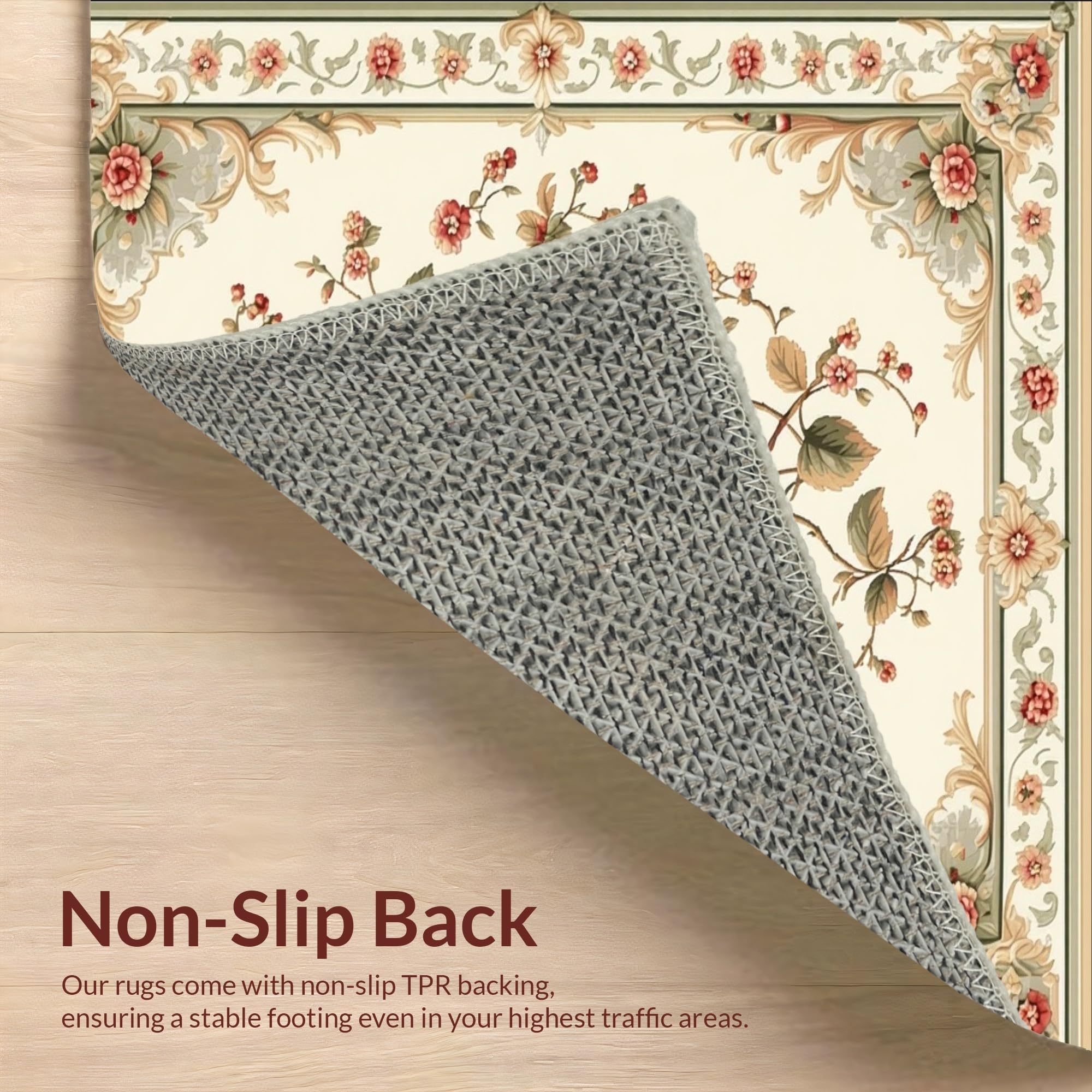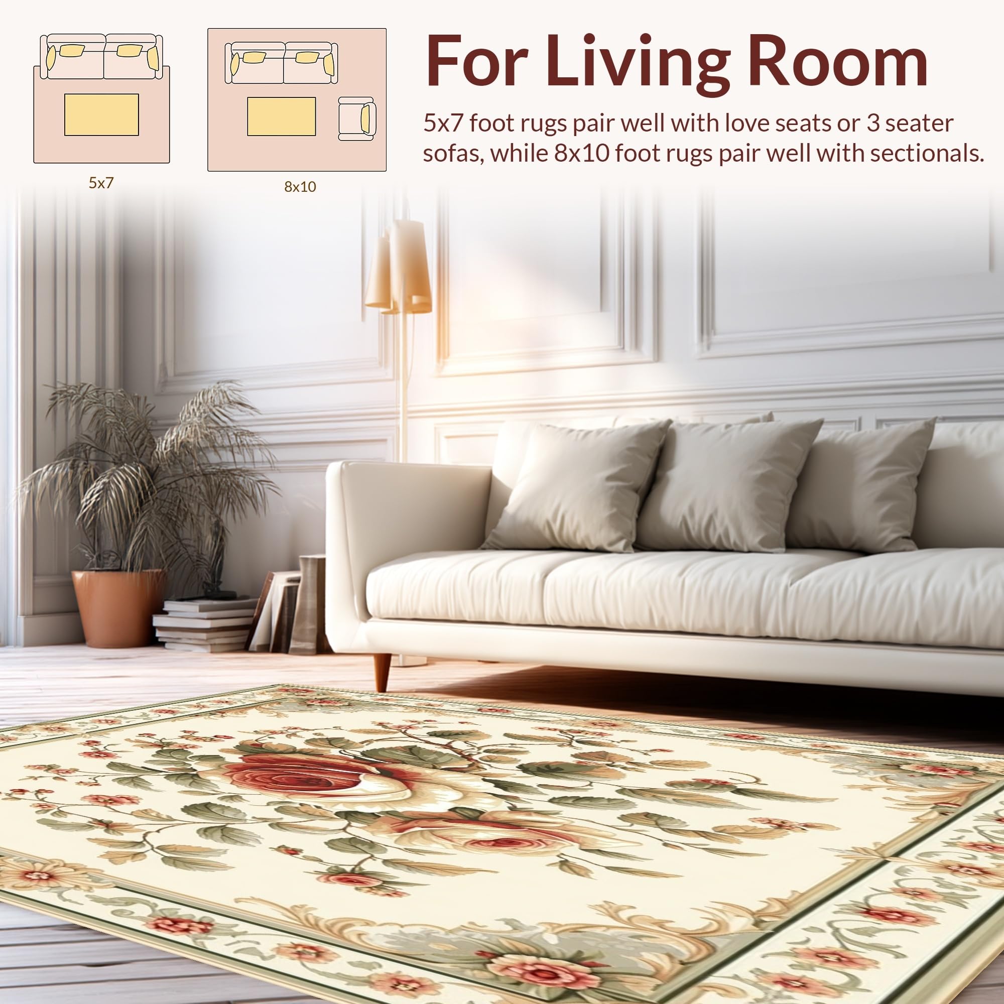 Ultra Soft Area Rug, Non Slip, Stain Resistant, Washable Area Rugs for Living Room, Bedroom, Desert Rose Beige Sage Muted Floral Medallion Floor Accent(Beige) Overview: