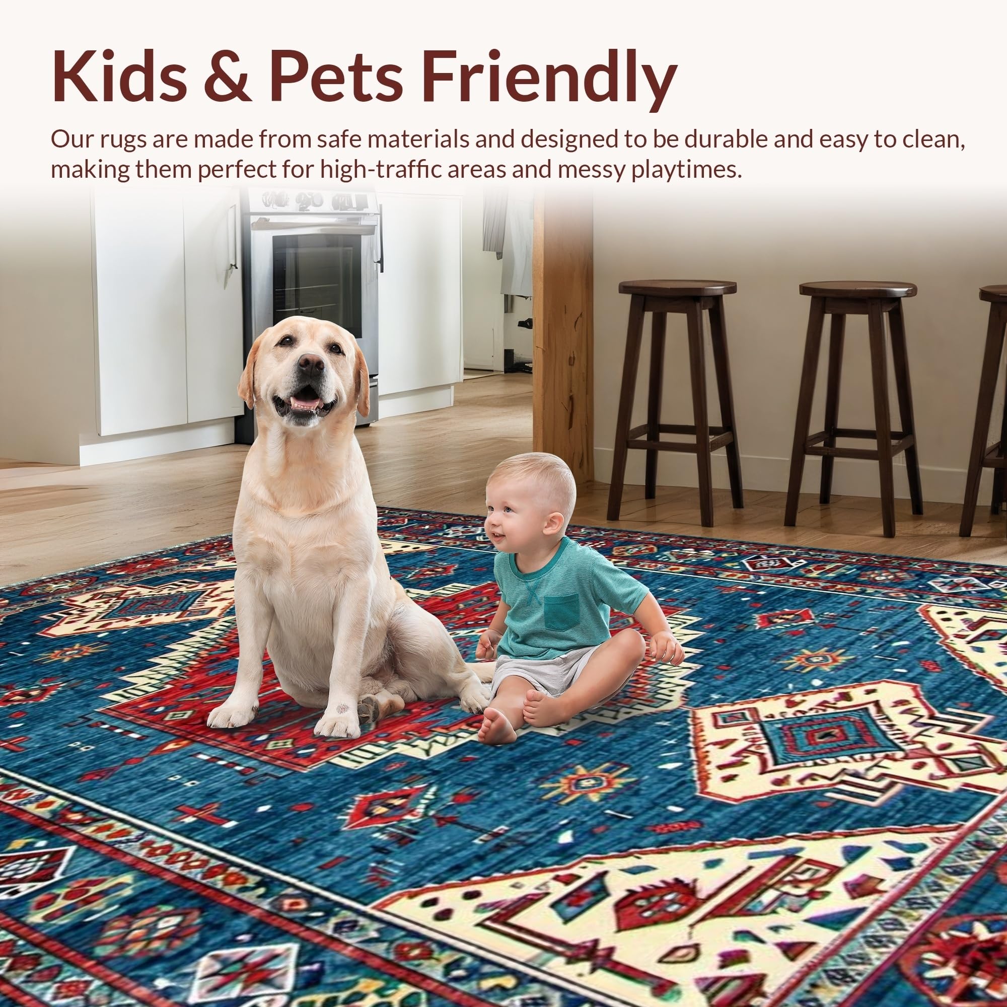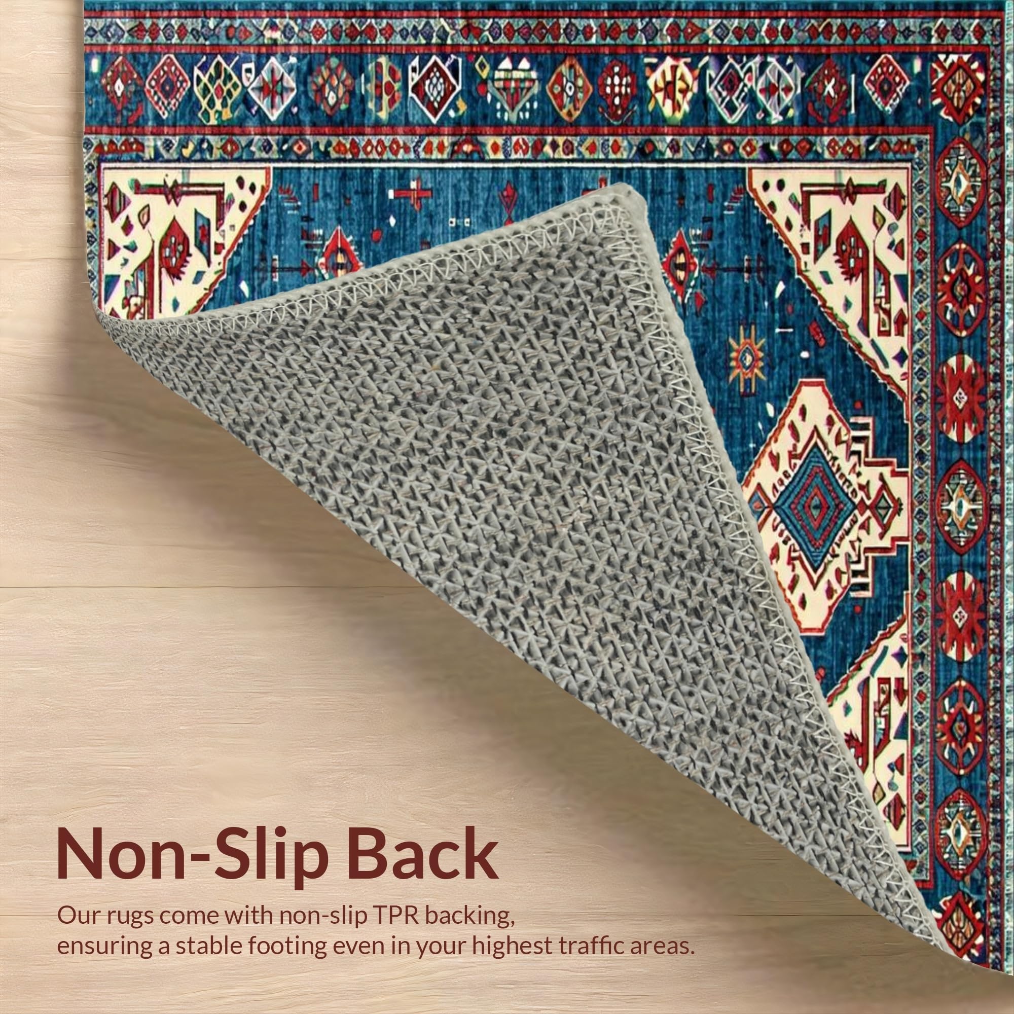 Ultra Soft Area Rug, Non Slip, Stain Resistant, Washable Area Rugs for Living Room, Bedroom, Detailed Blue Tiled Arrangement(Blue) Overview: