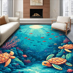 Discovery Island Area Rug Ocean Life Kids Play Mat Aquatic Animal Count Carpet(Blue)