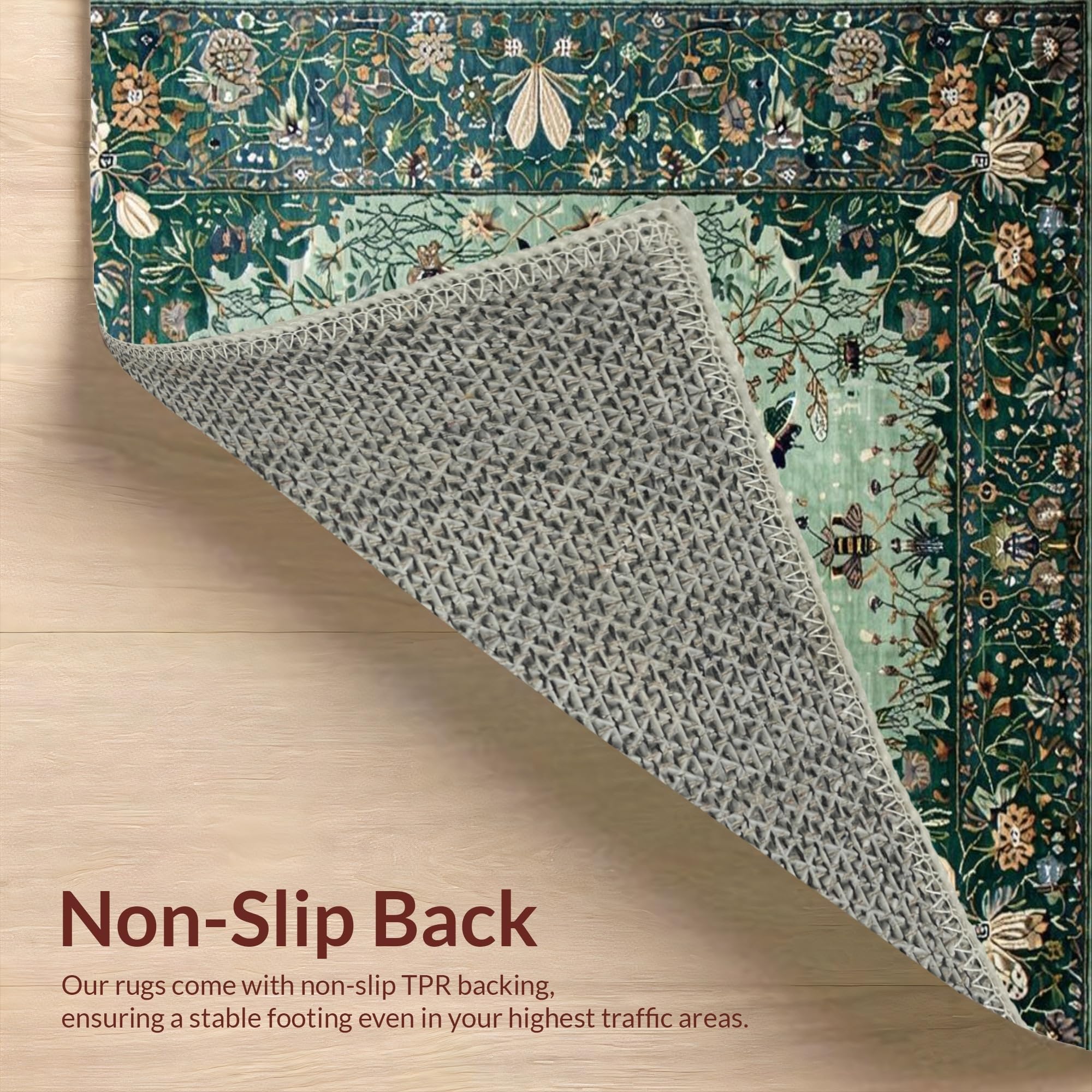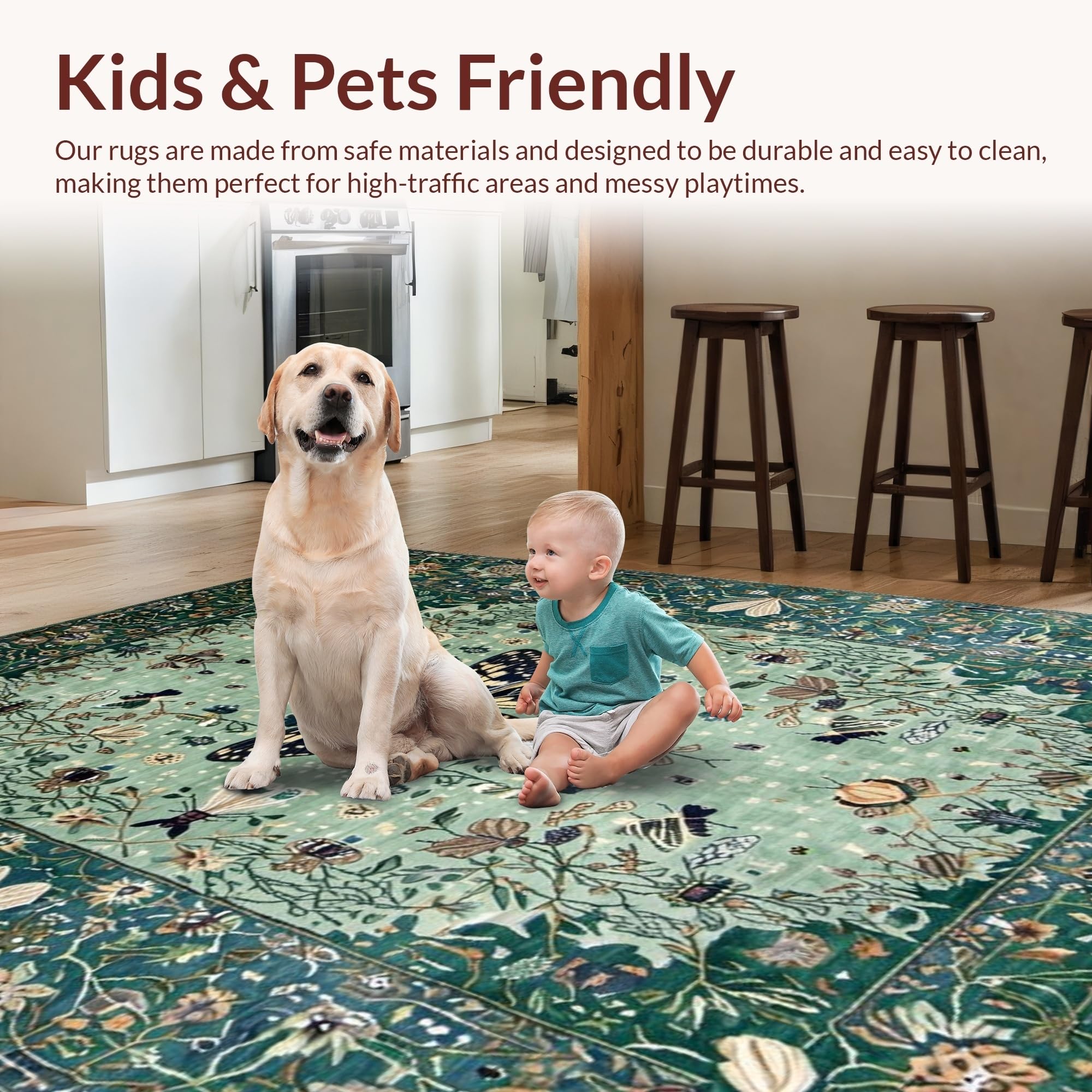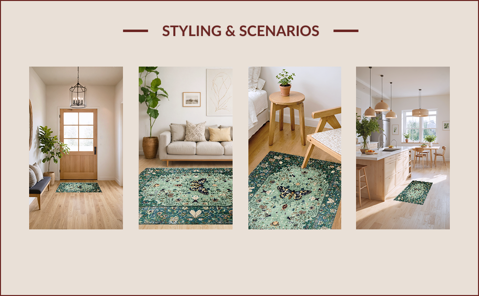 Ultra Soft Area Rug, Non Slip, Stain Resistant, Washable Area Rugs for Living Room, Bedroom, Distinctive Forest Green Insect Motif(Green) Overview: