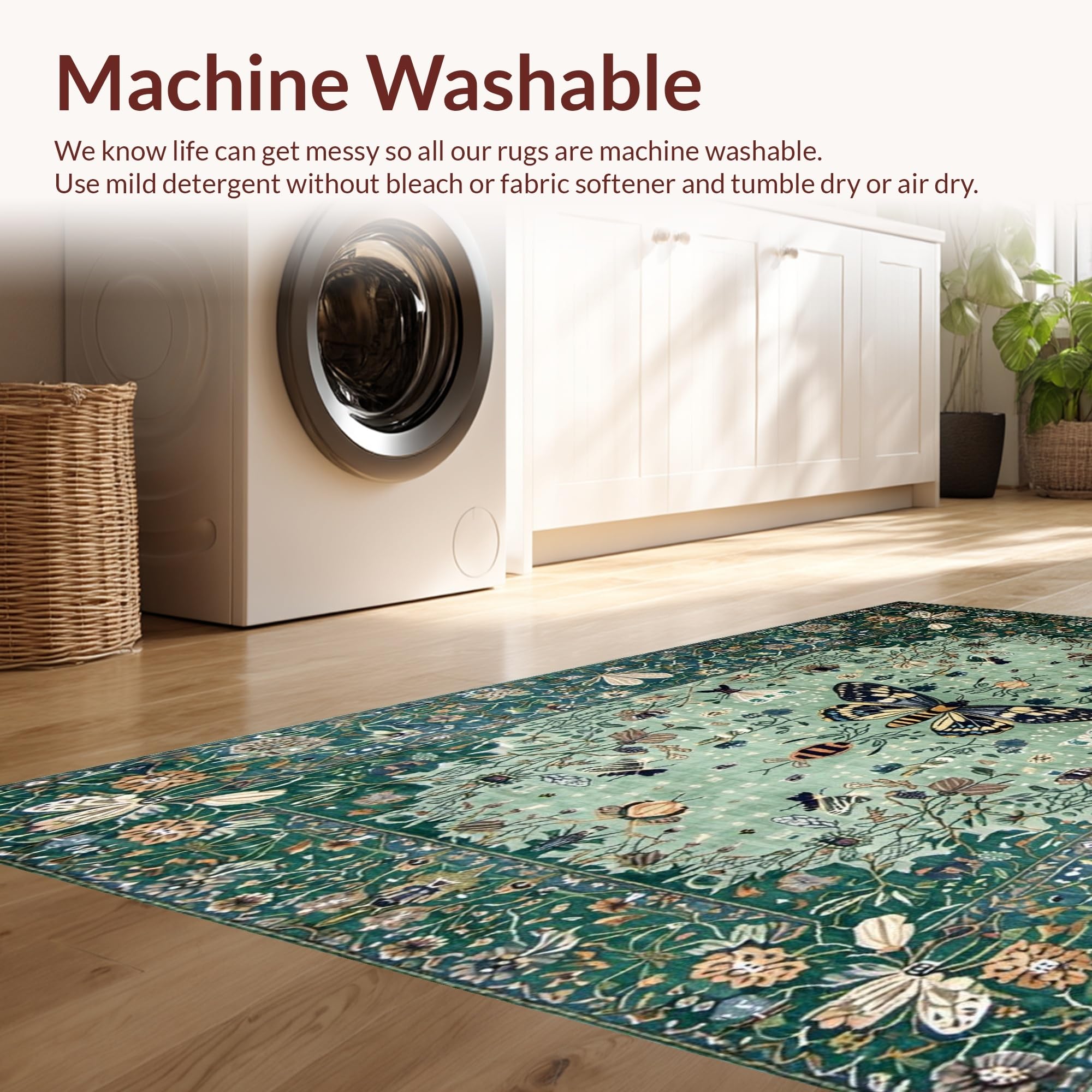 - Machine Washable: Our rugs can be easily thrown in the wash machine.