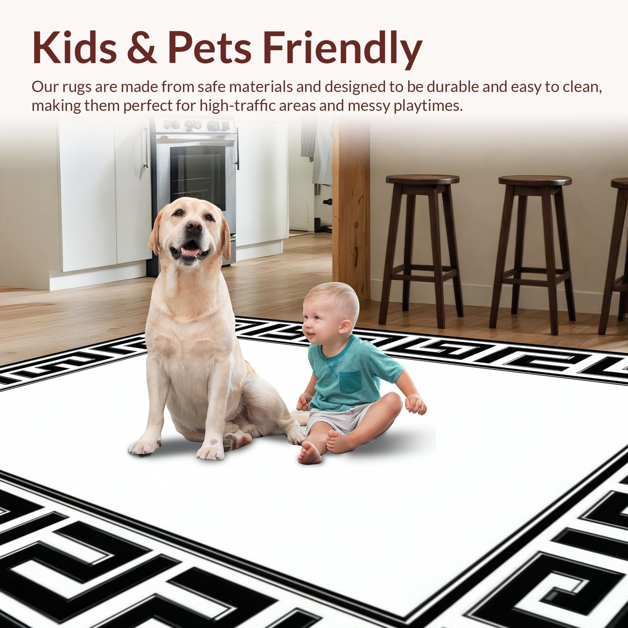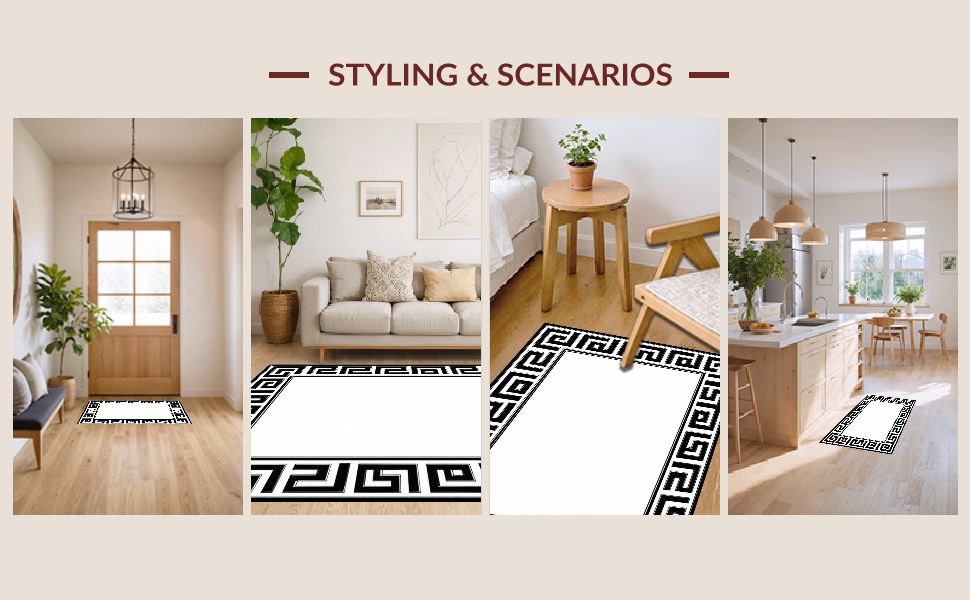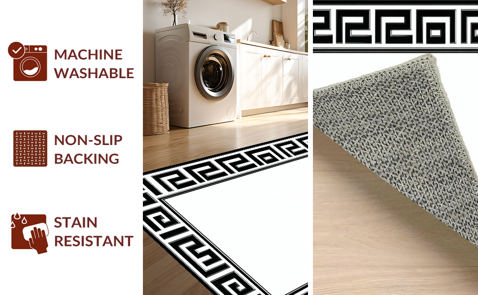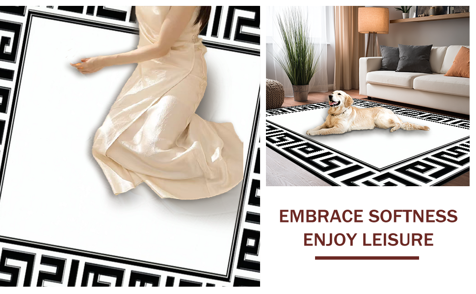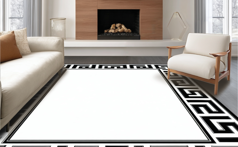 Ultra Soft Area Rug, Non Slip, Stain Resistant, Washable Area Rugs for Living Room, Bedroom, Distinctive Modern Geometric Contrast(Black) Overview: