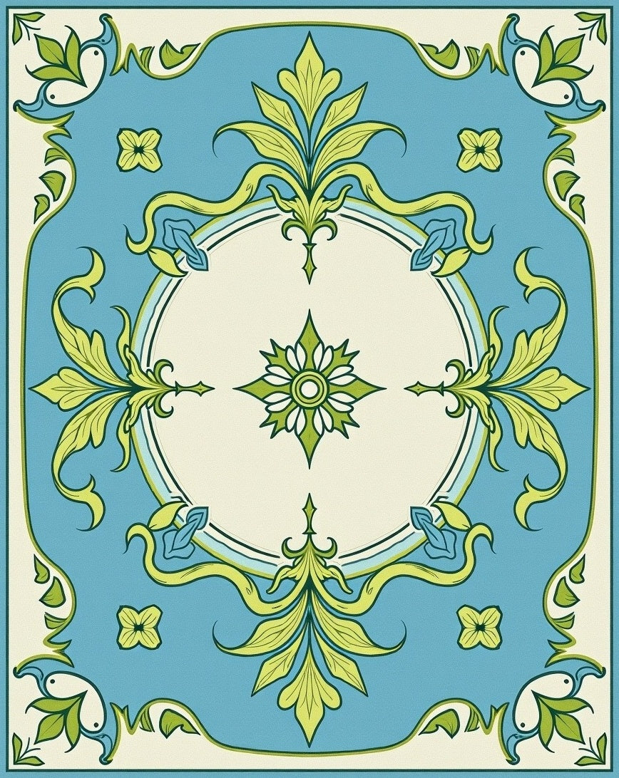 Distressed Botanical Medallion Motif with Cascading Floral Details(Blue)