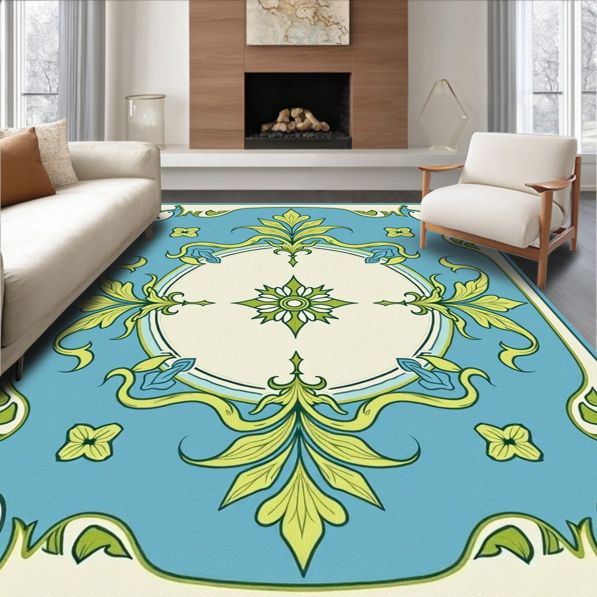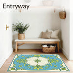 Flatwoven High Traffic Area Rug, Distressed Botanical Medallion Motif with Cascading Floral Details, Non Slip, Stain Resistant, Washable Area Rugs for Living Room, Bedroom (Blue) Overview: