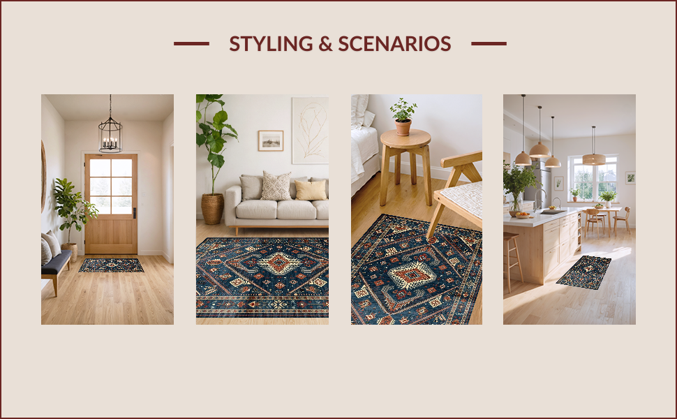 Ultra Soft Area Rug, Non Slip, Stain Resistant, Washable Area Rugs for Living Room, Bedroom, Distressed Earth Tone Elegance(Blue) Overview: