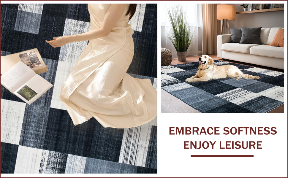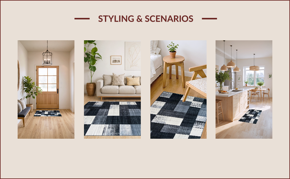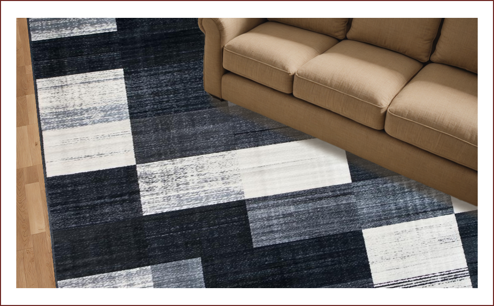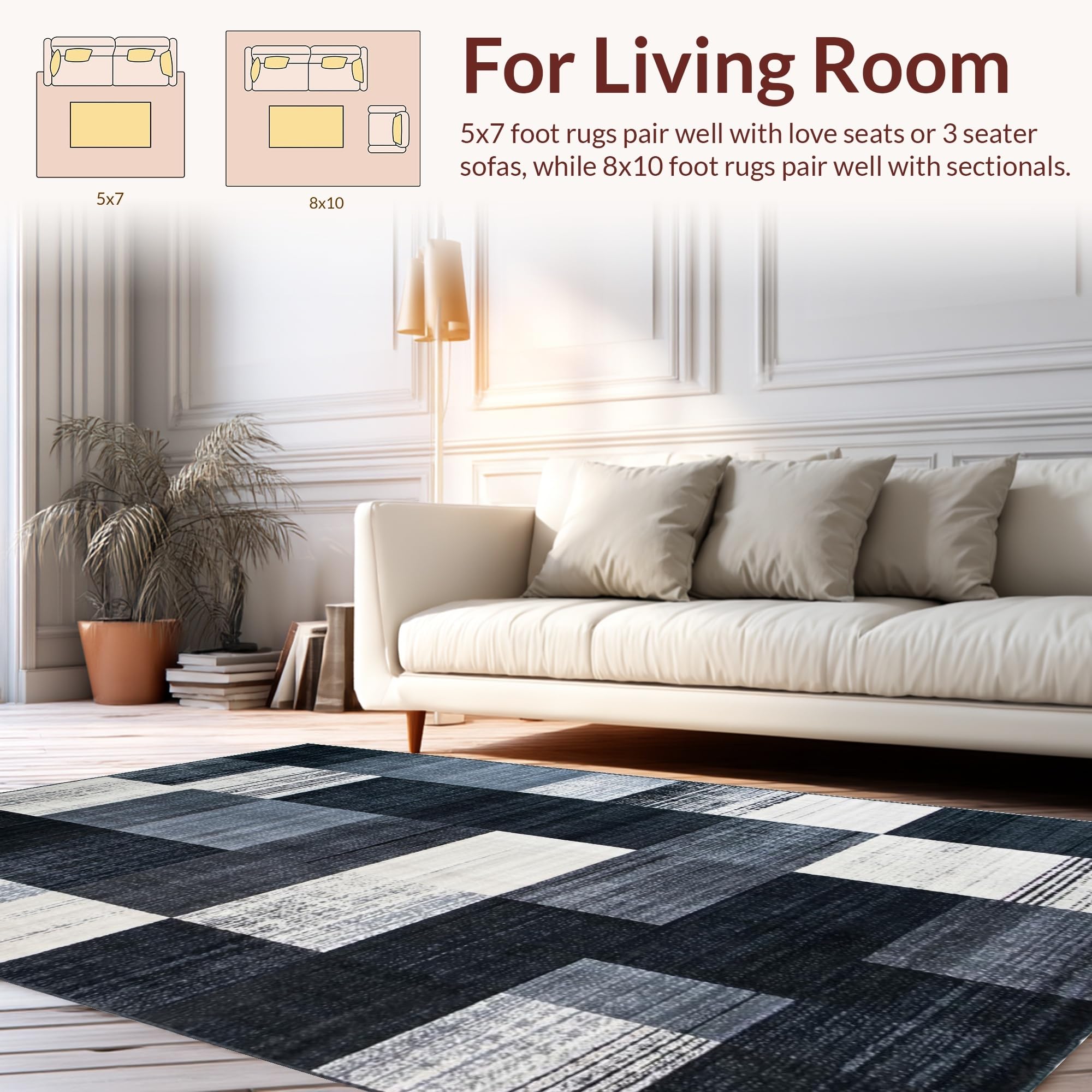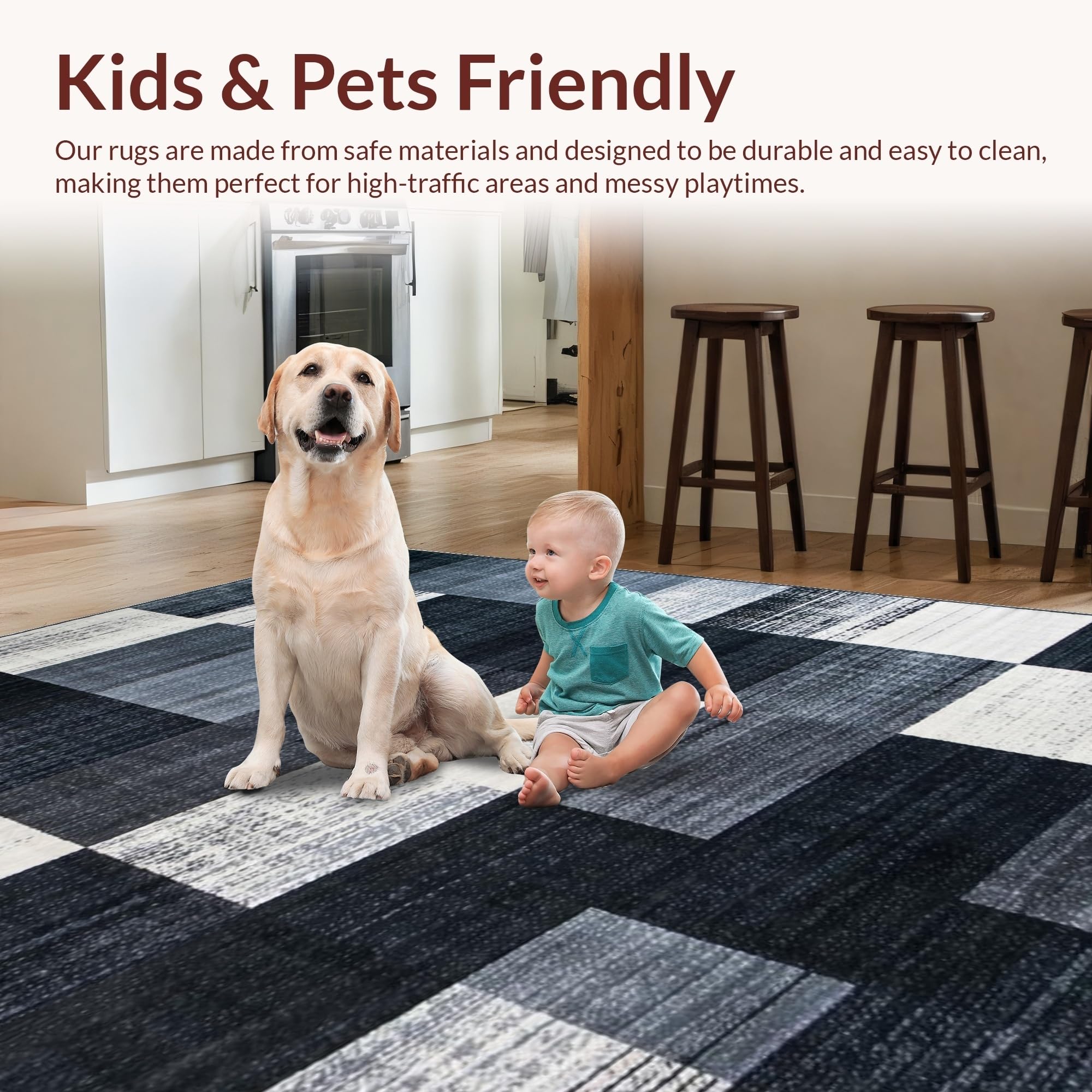 Ultra Soft Area Rug, Non Slip, Stain Resistant, Washable Area Rugs for Living Room, Bedroom, Distressed Geometric Floor Accent(Black) Overview: