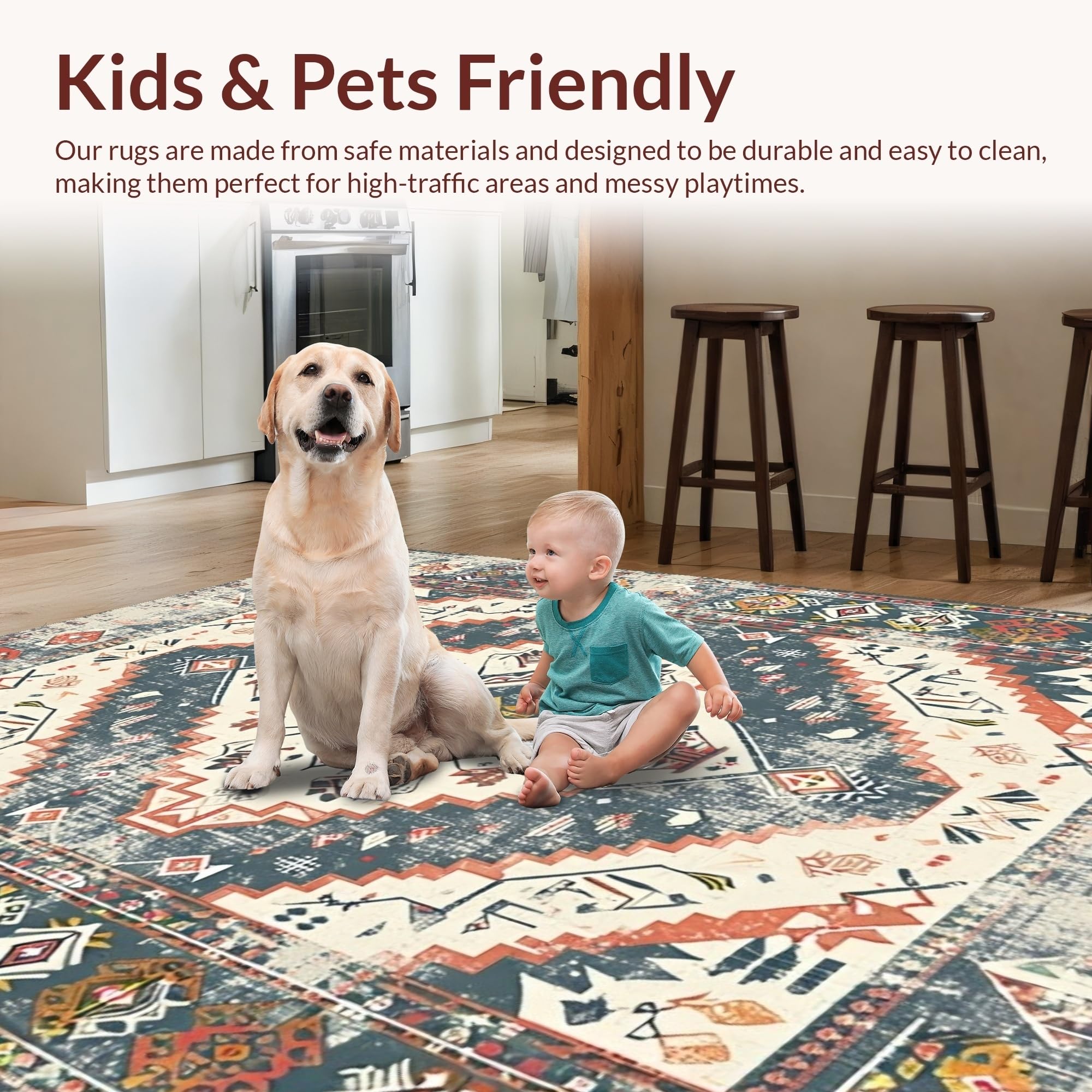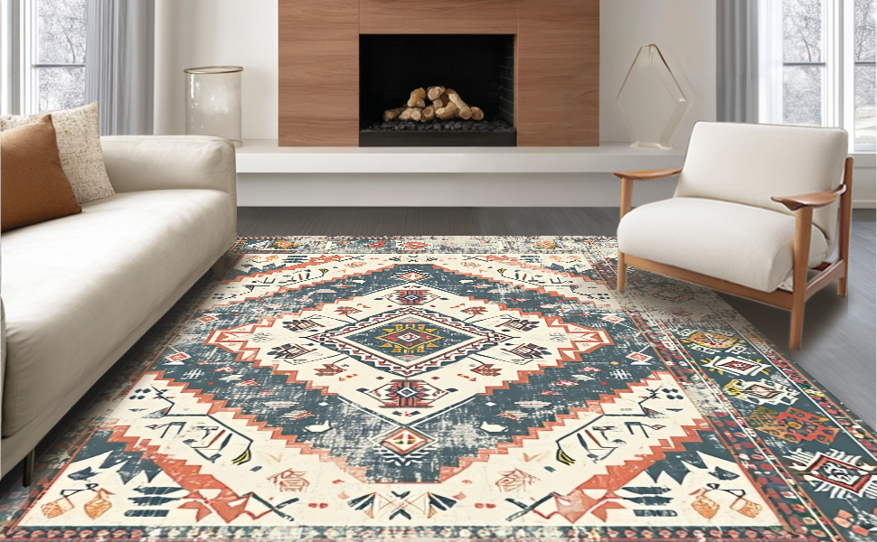 Ultra Soft Area Rug, Non Slip, Stain Resistant, Washable Area Rugs for Living Room, Bedroom, Distressed Rustic Geometric Flair(Gray) Overview: