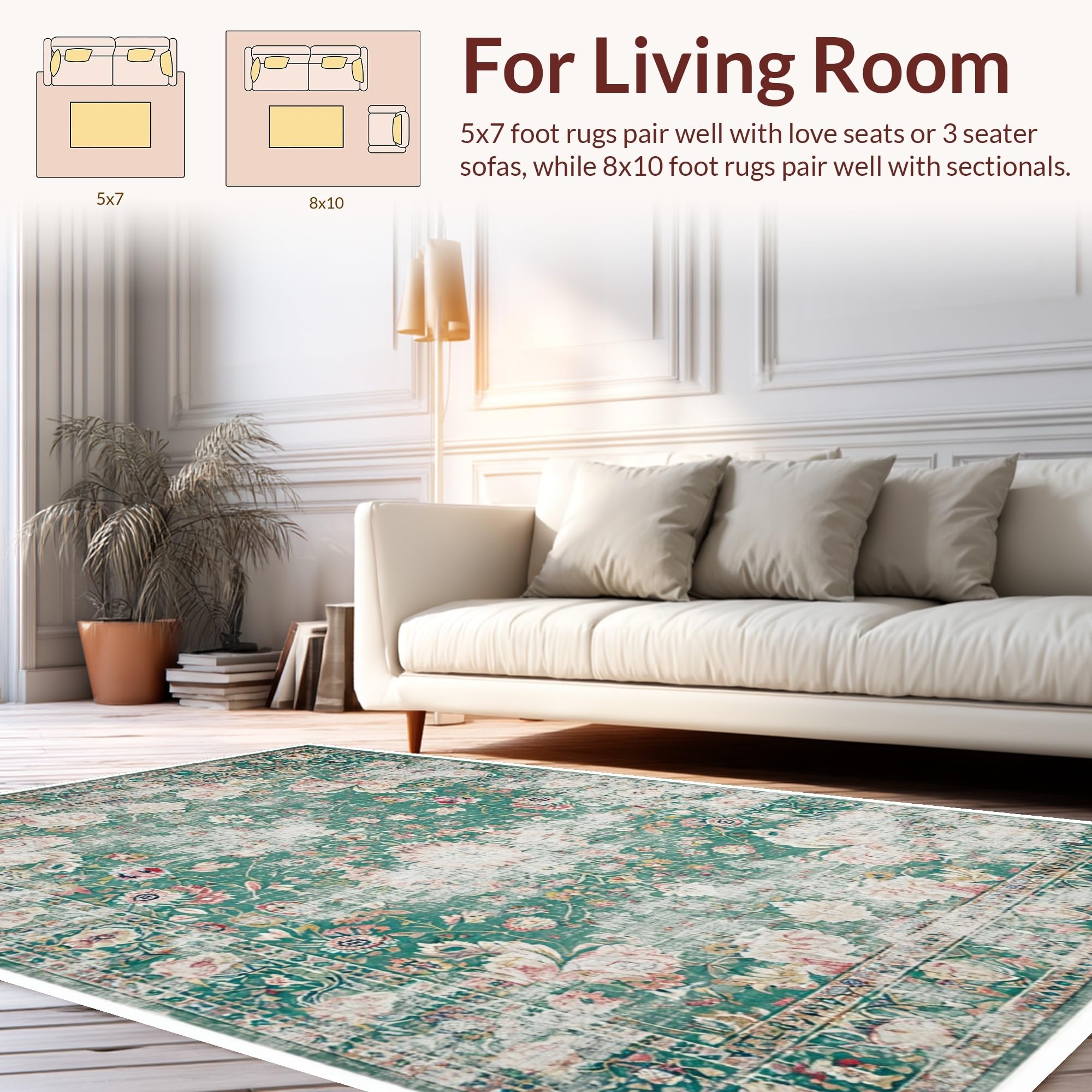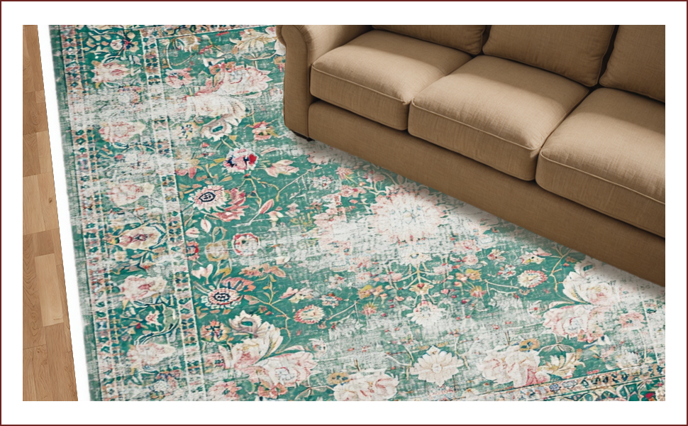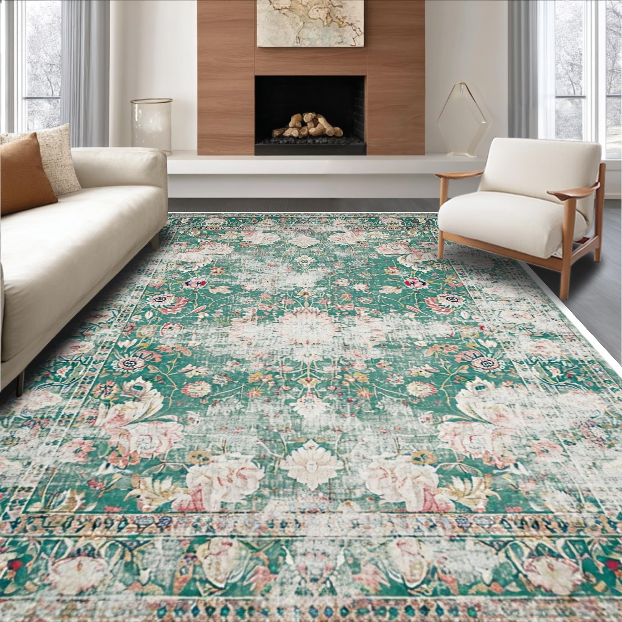 Ultra Soft Area Rug, Non Slip, Stain Resistant, Washable Area Rugs for Living Room, Bedroom, Distressed Sage Green Living Room Boho Carpet(Beige) Overview: