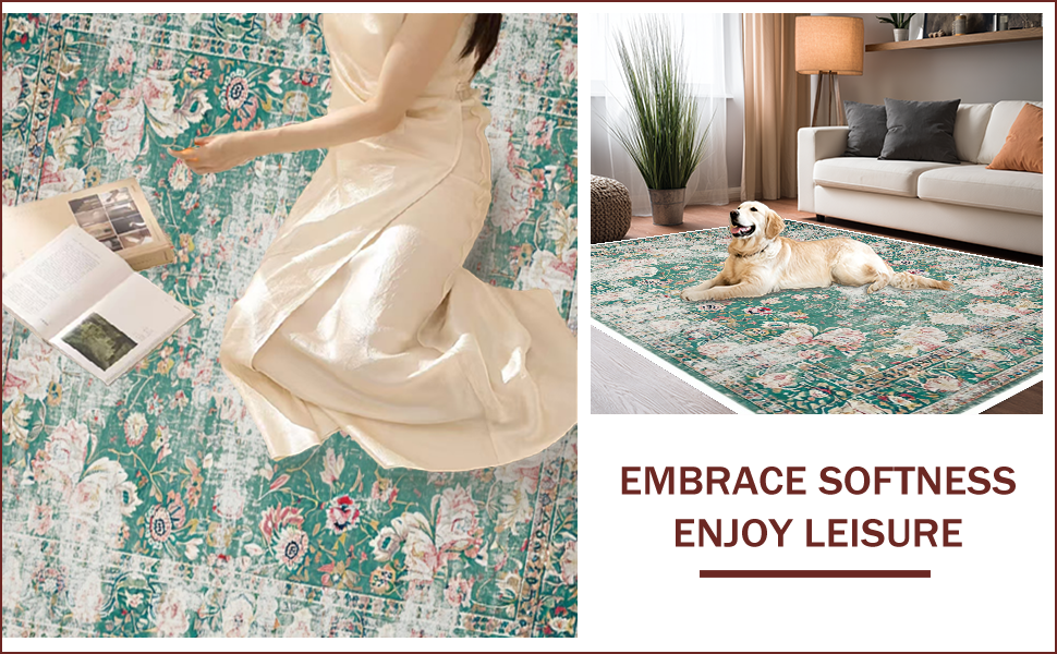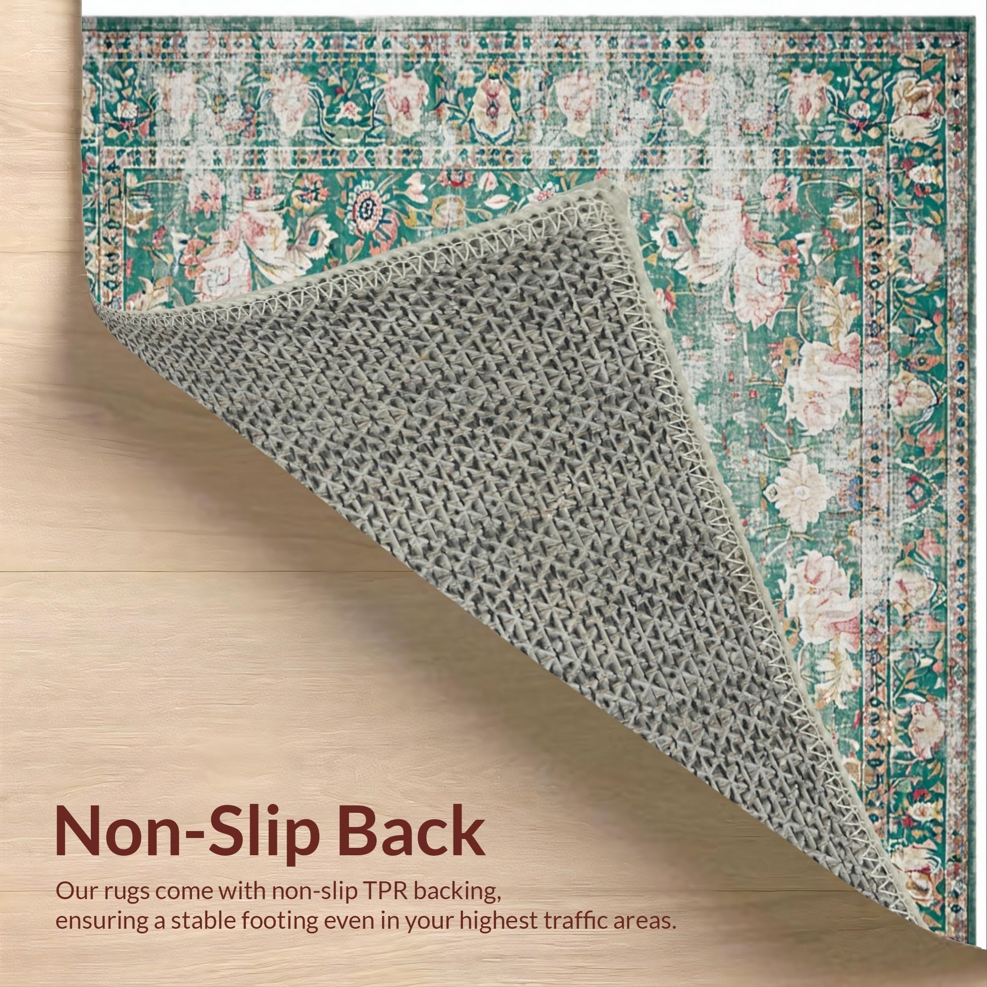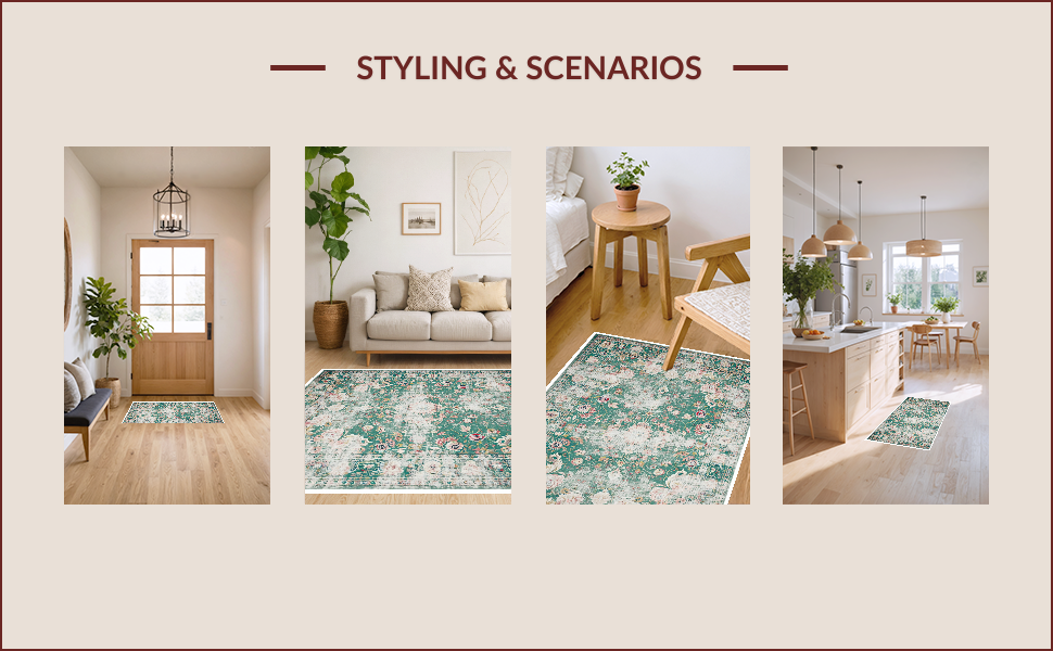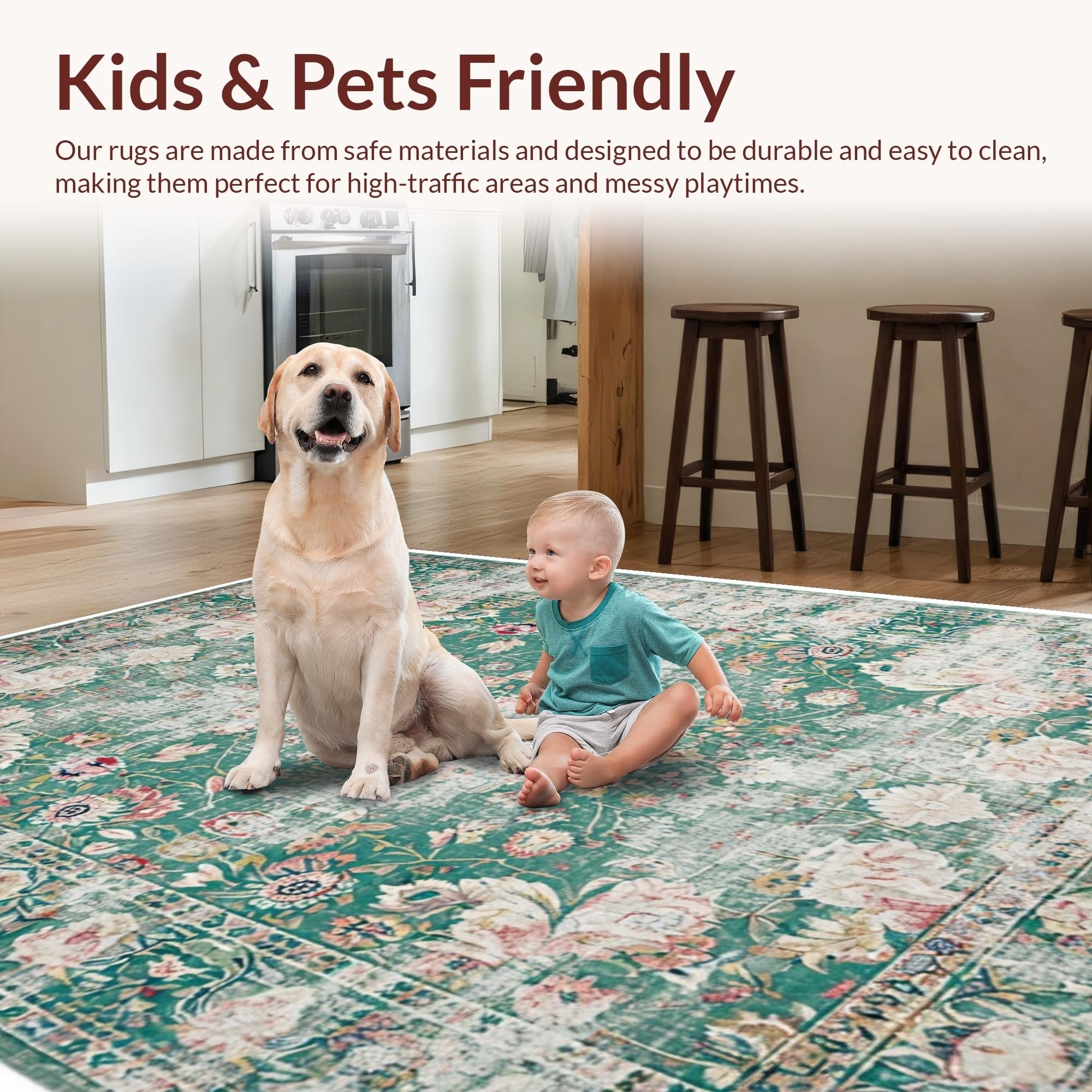 Ultra Soft Area Rug, Non Slip, Stain Resistant, Washable Area Rugs for Living Room, Bedroom, Distressed Sage Green Living Room Boho Carpet(Beige) Overview:
