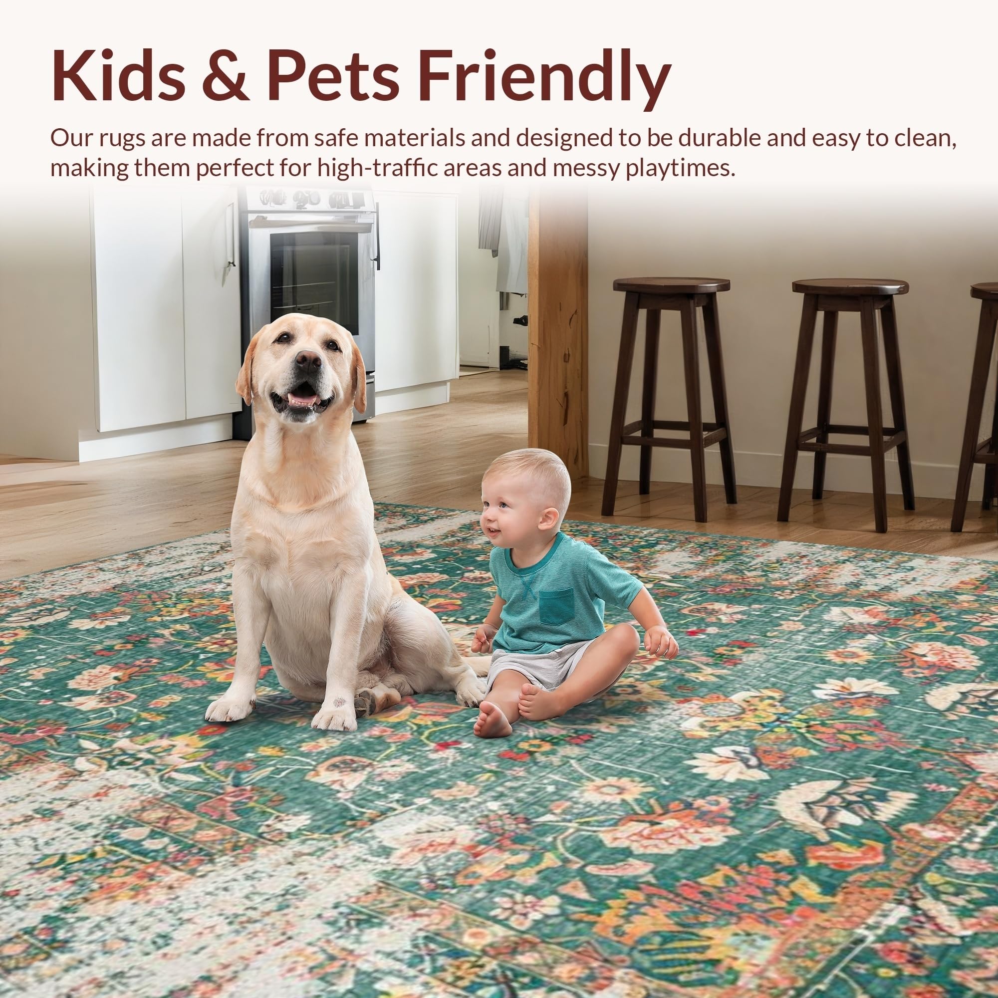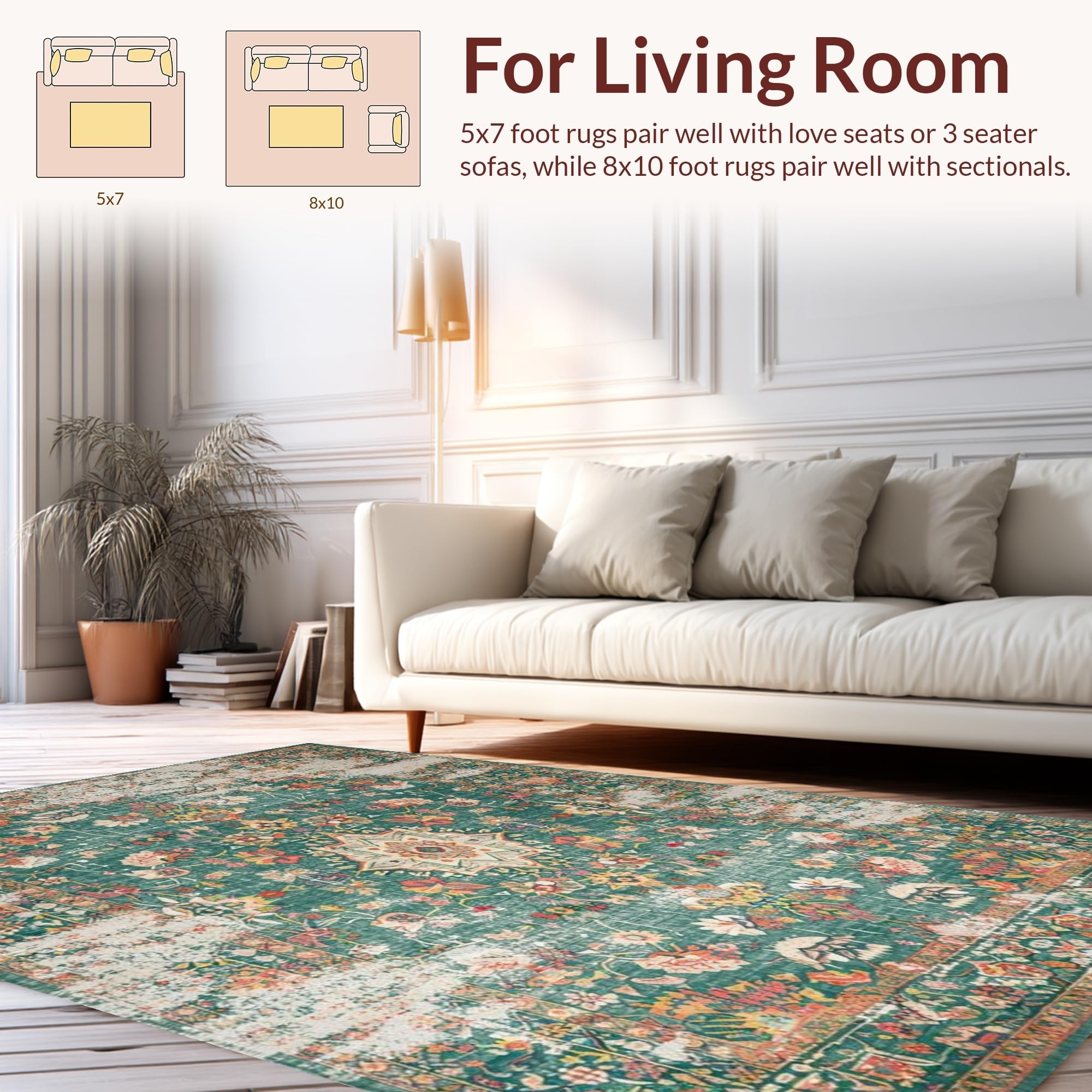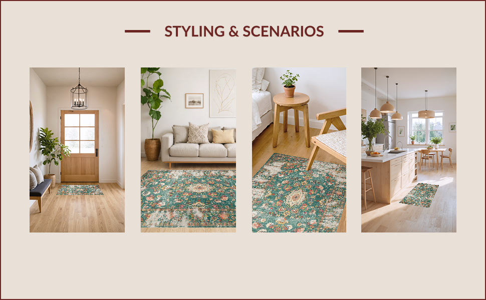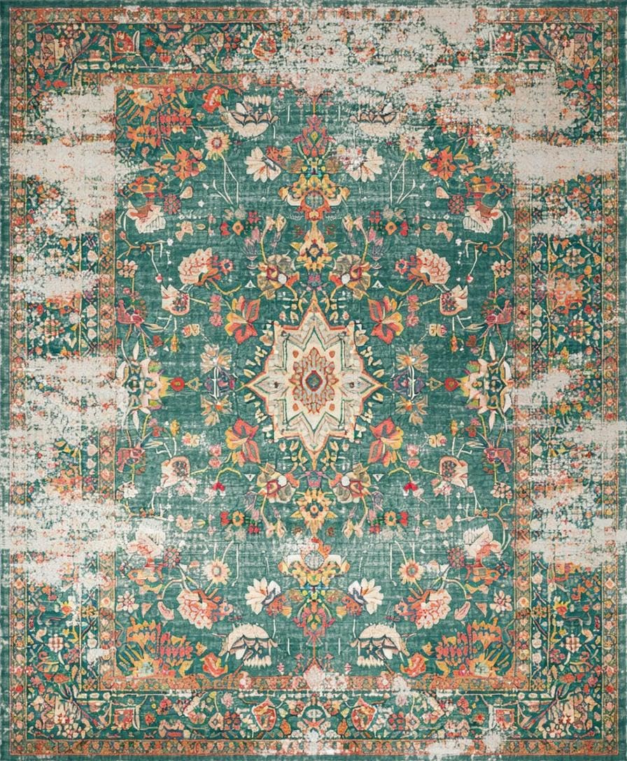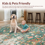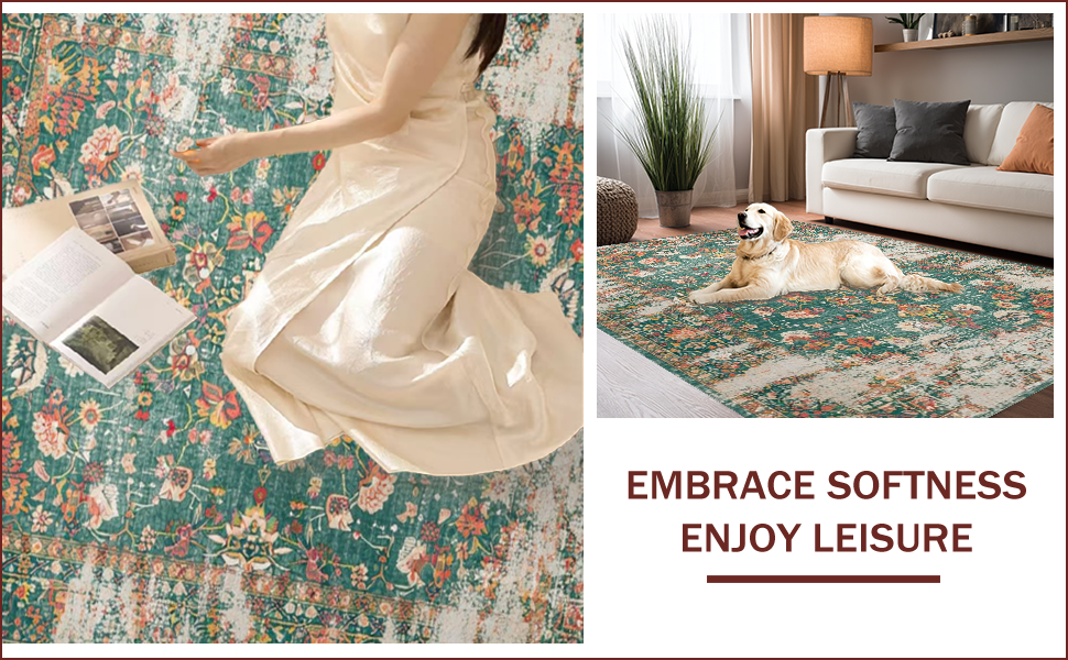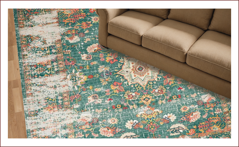 Ultra Soft Area Rug, Non Slip, Stain Resistant, Washable Area Rugs for Living Room, Bedroom, Distressed Vintage Botanical Aesthetic(Green) Overview: