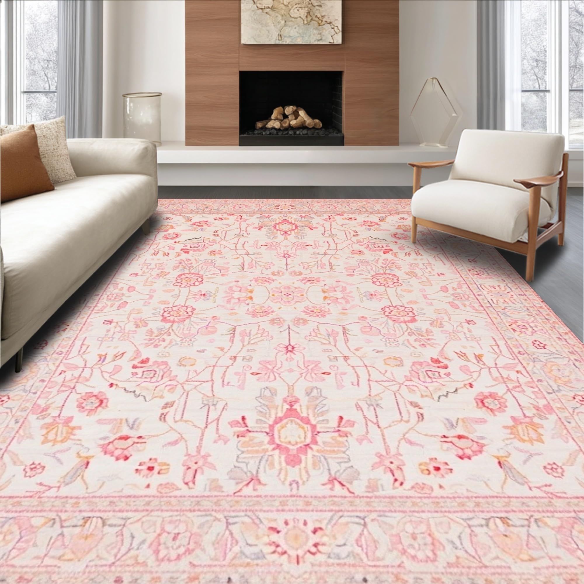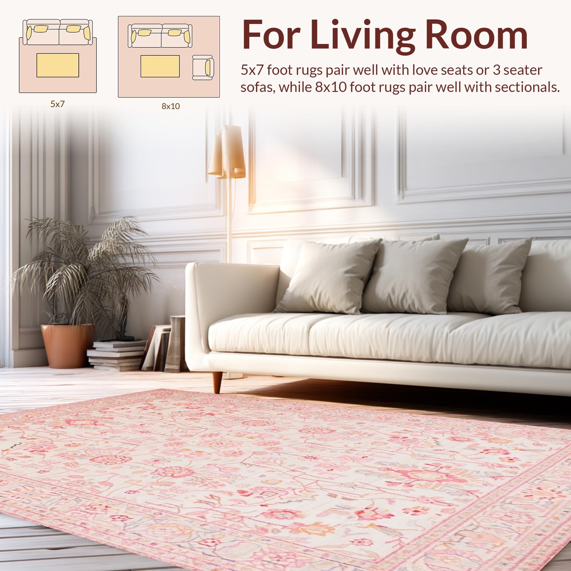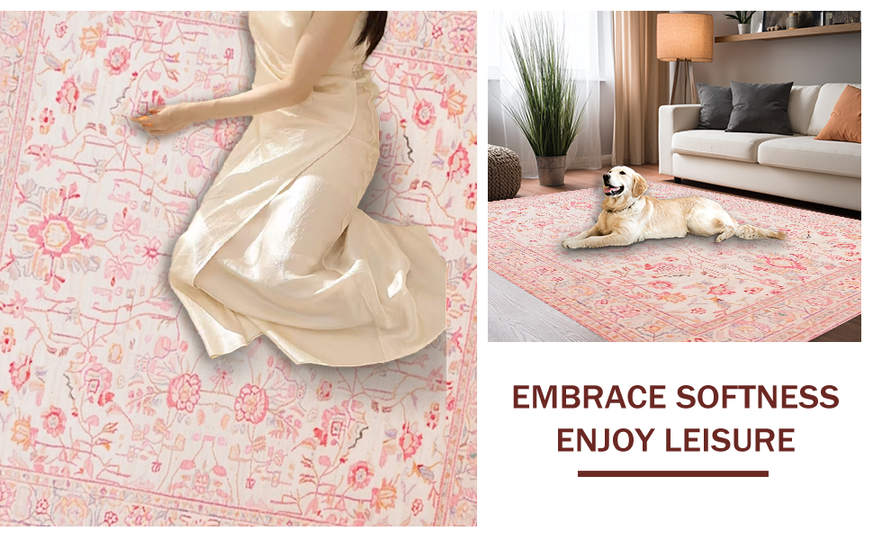 Ultra Soft Area Rug, Non Slip, Stain Resistant, Washable Area Rugs for Living Room, Bedroom, Dreamy Cozy Watercolor Floral Design(Pink) Overview: