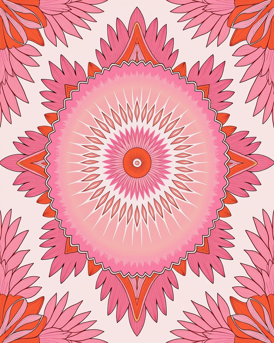 Dreamy Floral Medallion Accent Low Profile Construction(Pink)