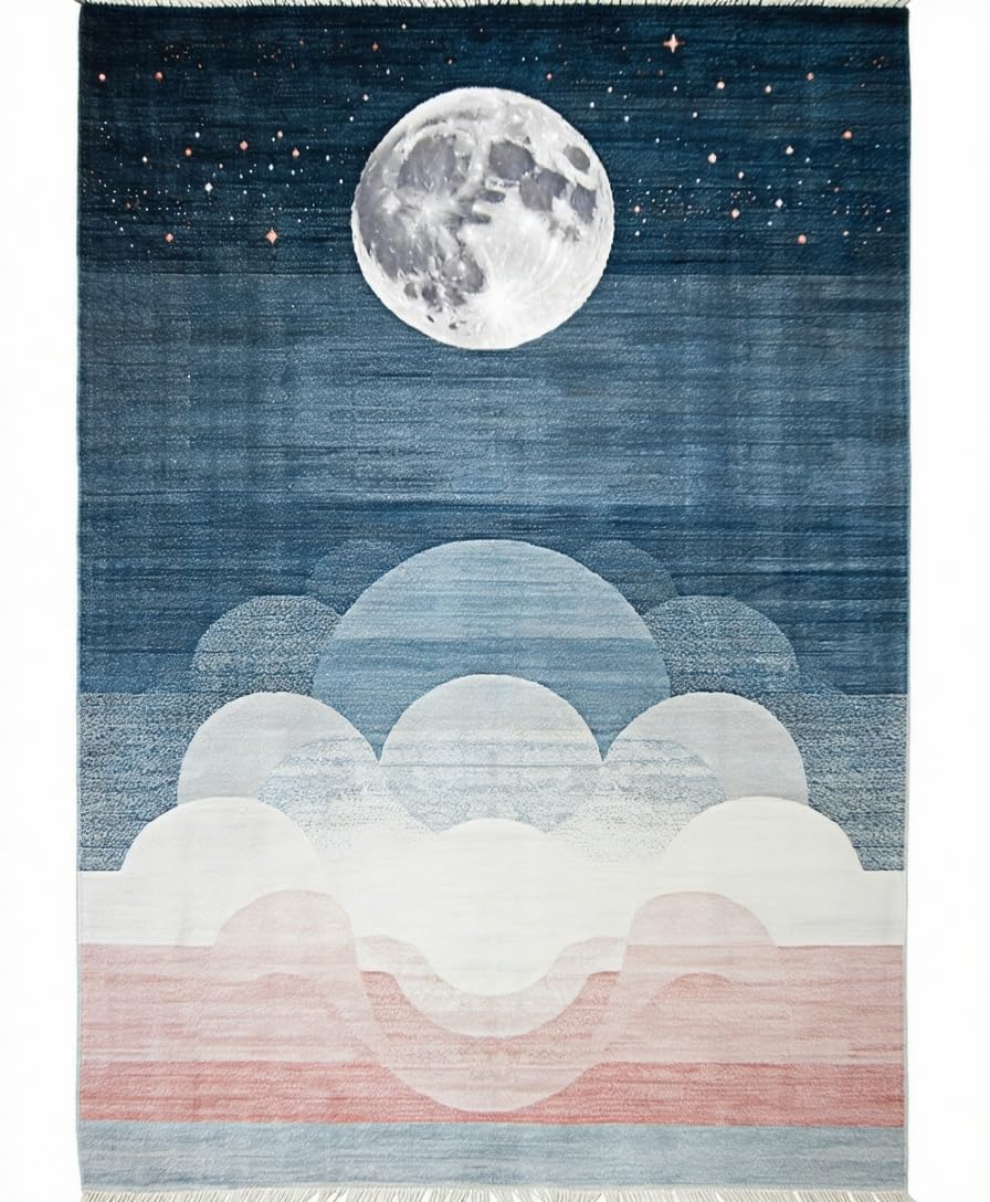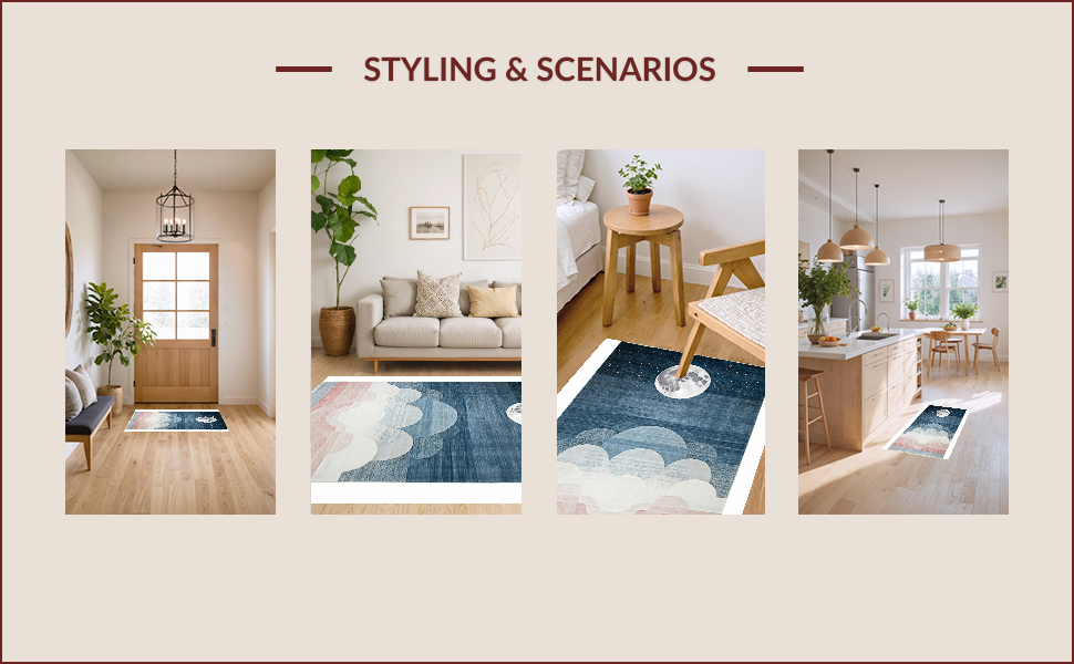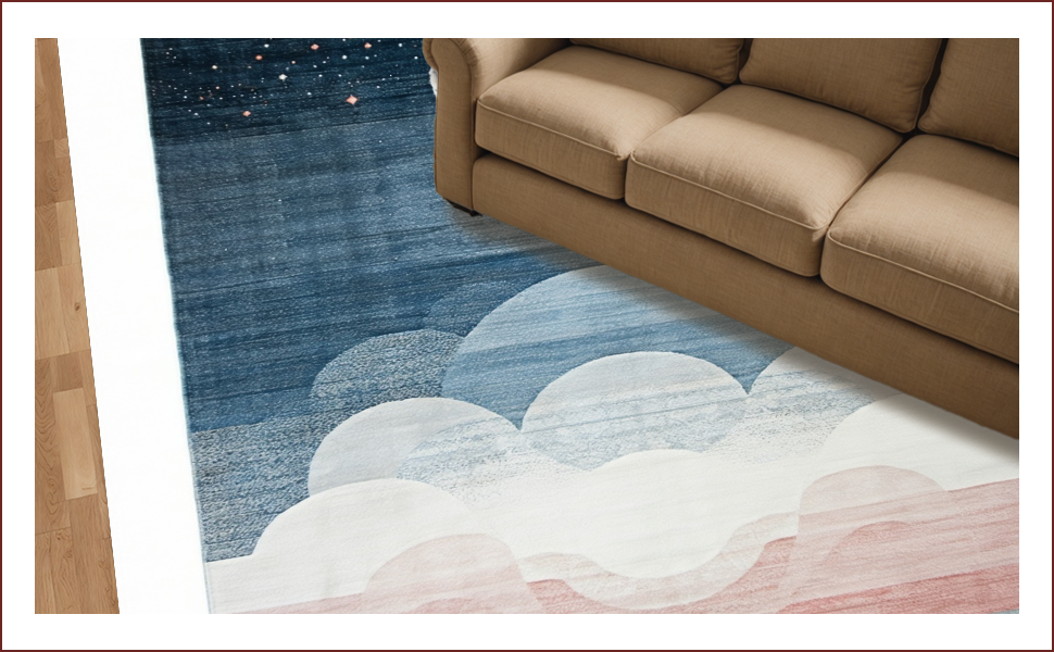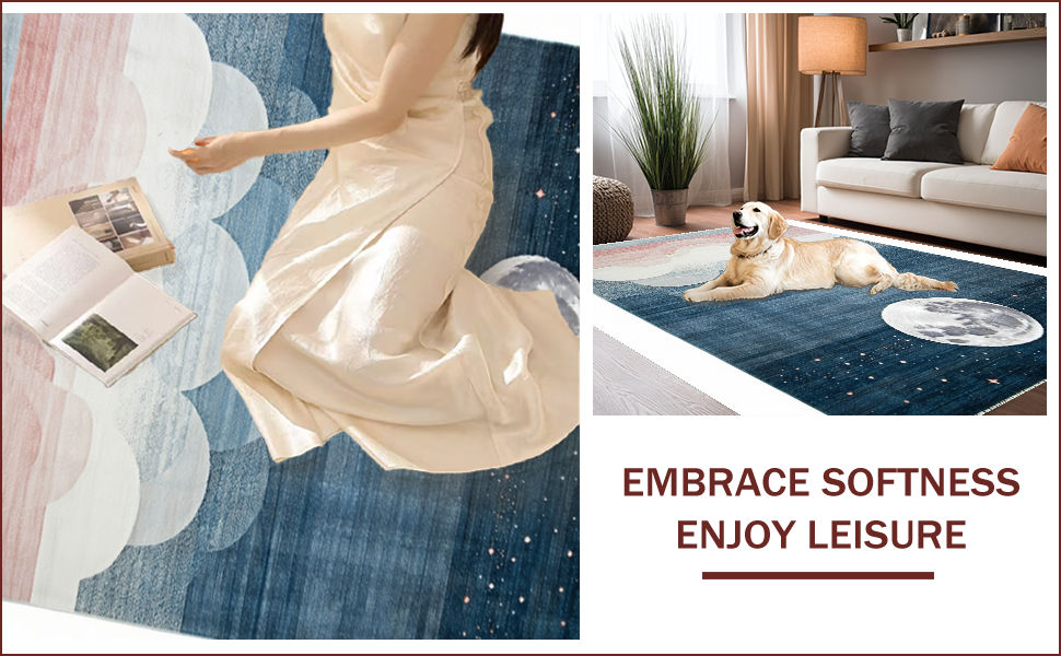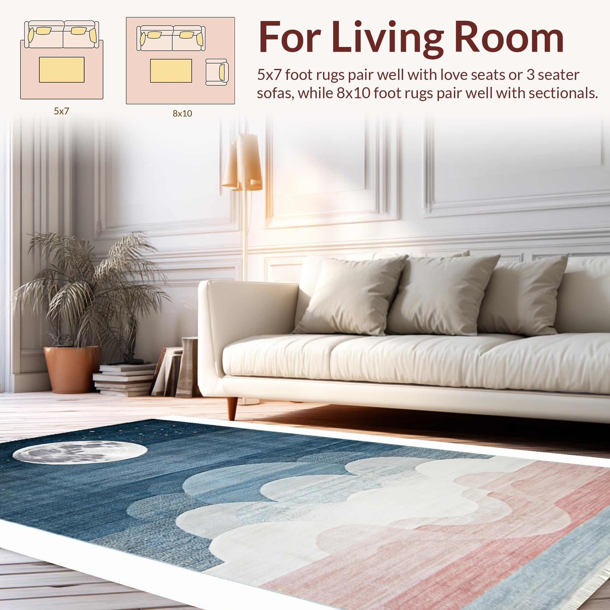 Ultra Soft Area Rug, Non Slip, Stain Resistant, Washable Area Rugs for Living Room, Bedroom, Dreamy Half-Moon Earthy Aesthetic(Blue) Overview: