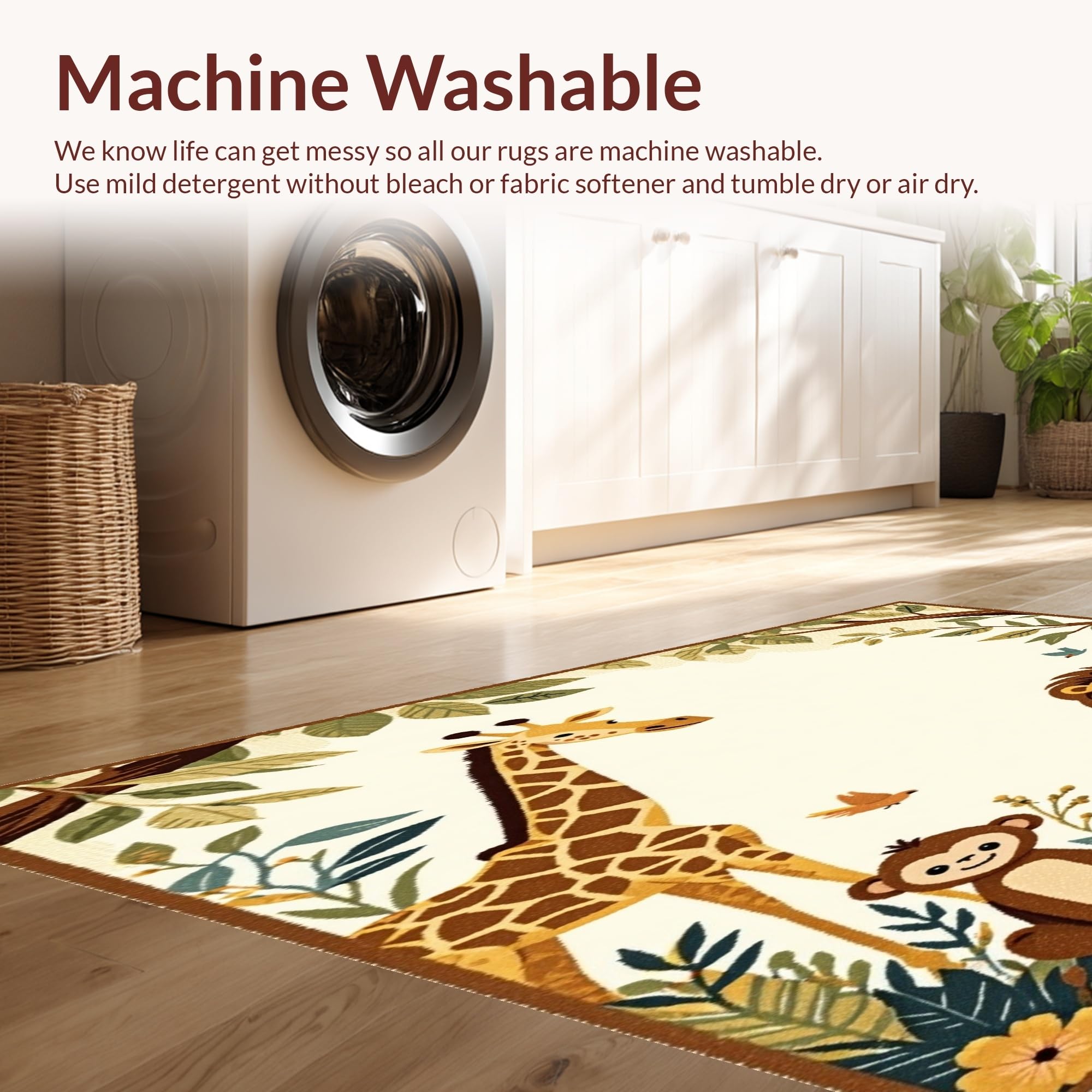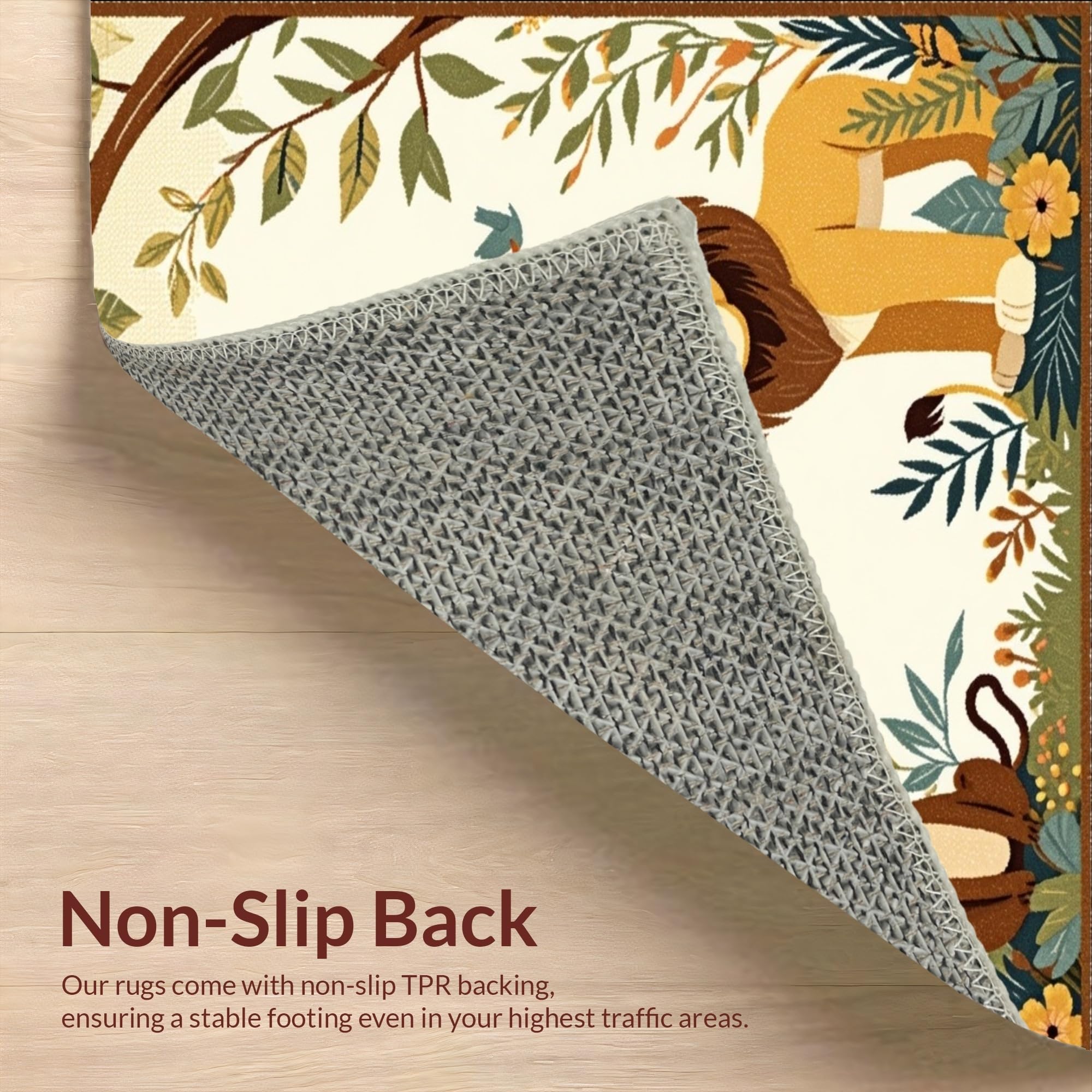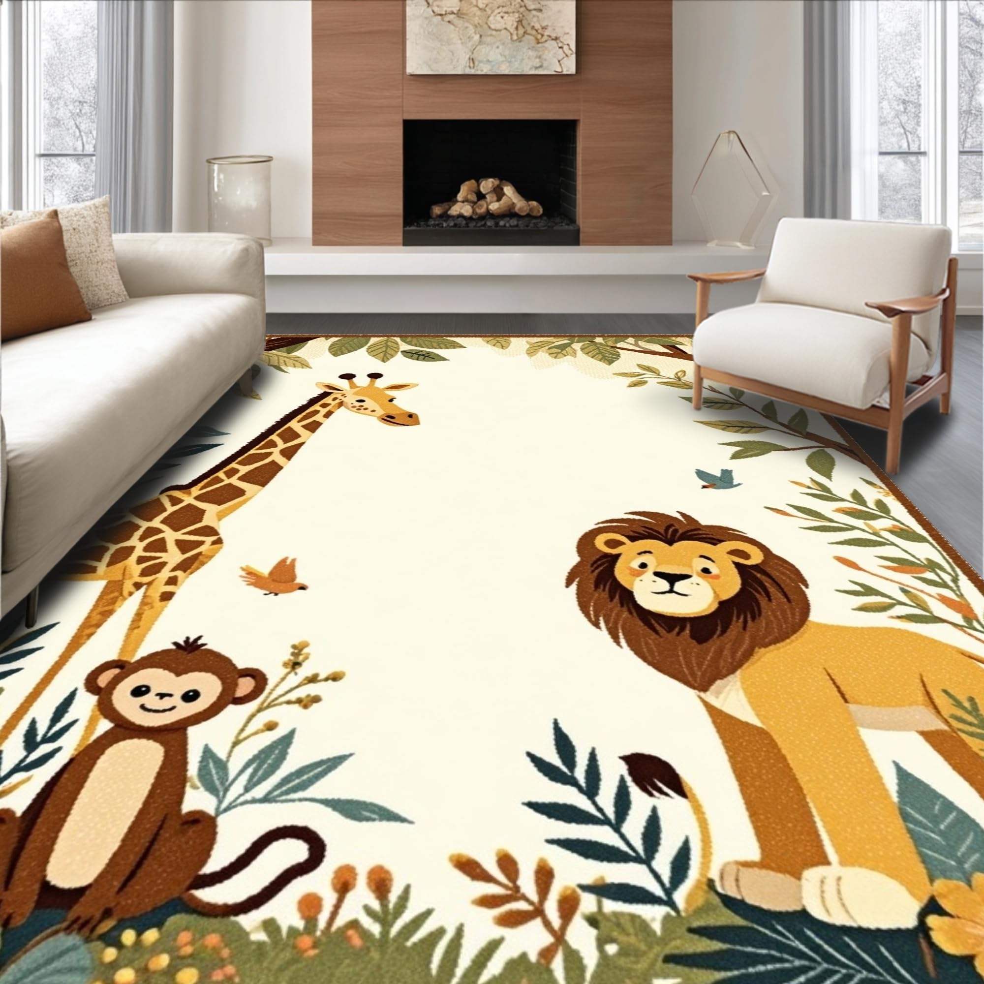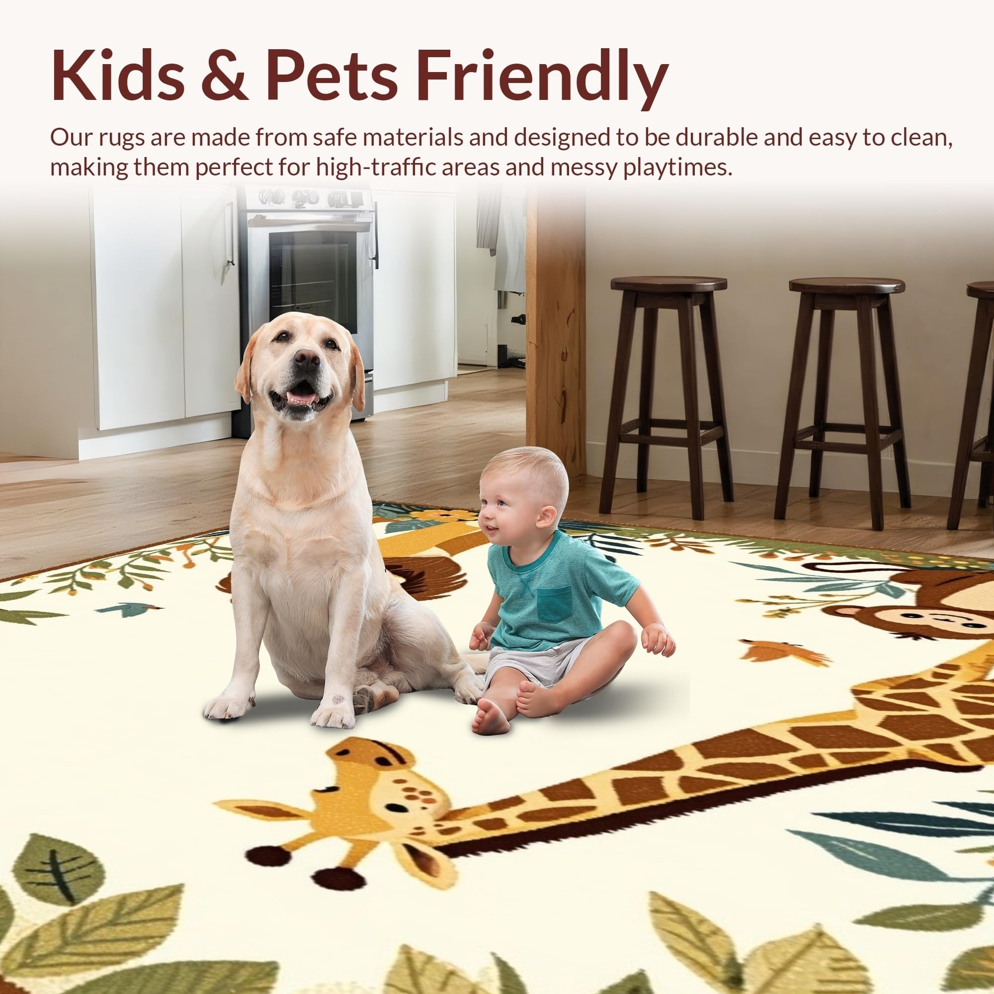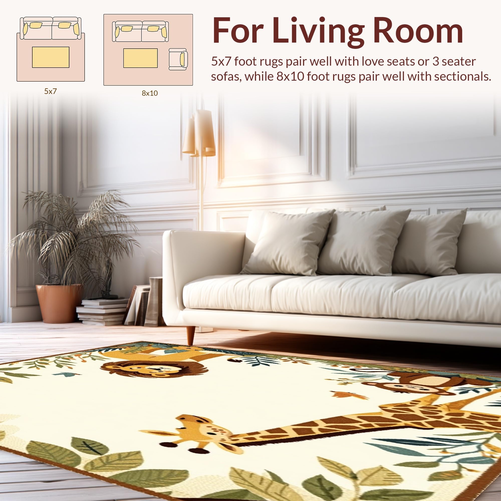 Ultra Soft Area Rug, Non Slip, Stain Resistant, Washable Area Rugs for Living Room, Bedroom, Dreamy Jungle Kids Area Beige Safari Animals Playful Floor(Beige) Overview: