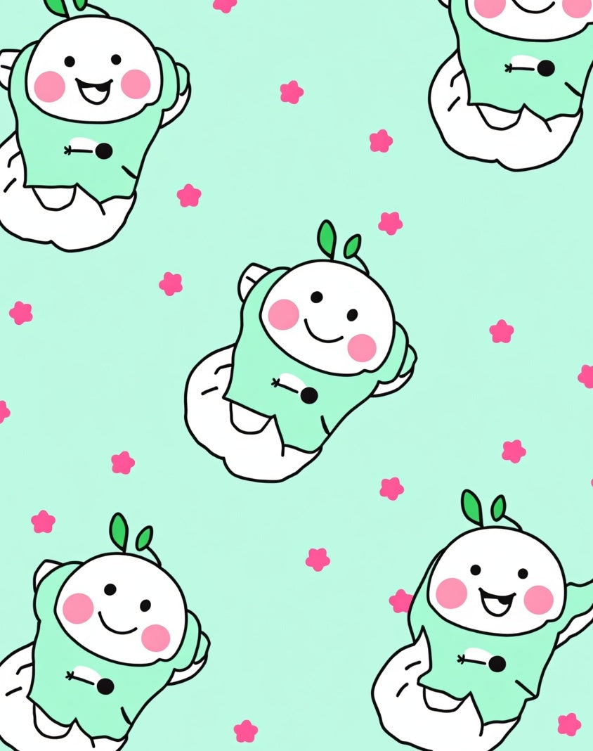 Dreamy Pond Creatures Beneath Floating Floral Canopy(Green)