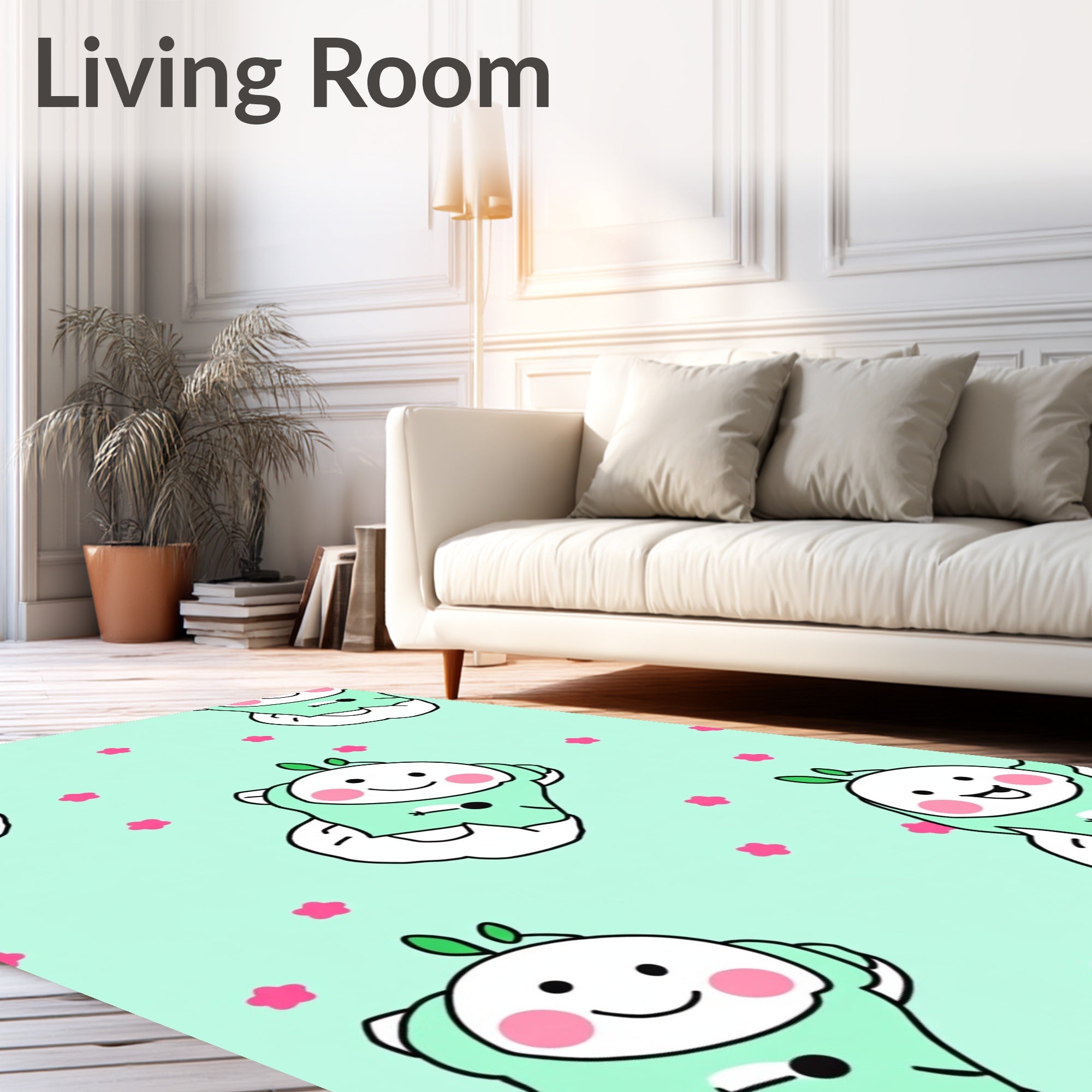 Flatwoven High Traffic Area Rug, Dreamy Pond Creatures Beneath Floating Floral Canopy, Non Slip, Stain Resistant, Washable Area Rugs for Living Room, Bedroom (Green) Overview: