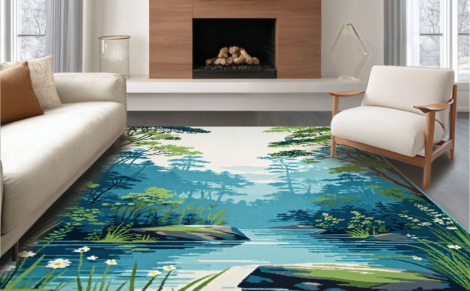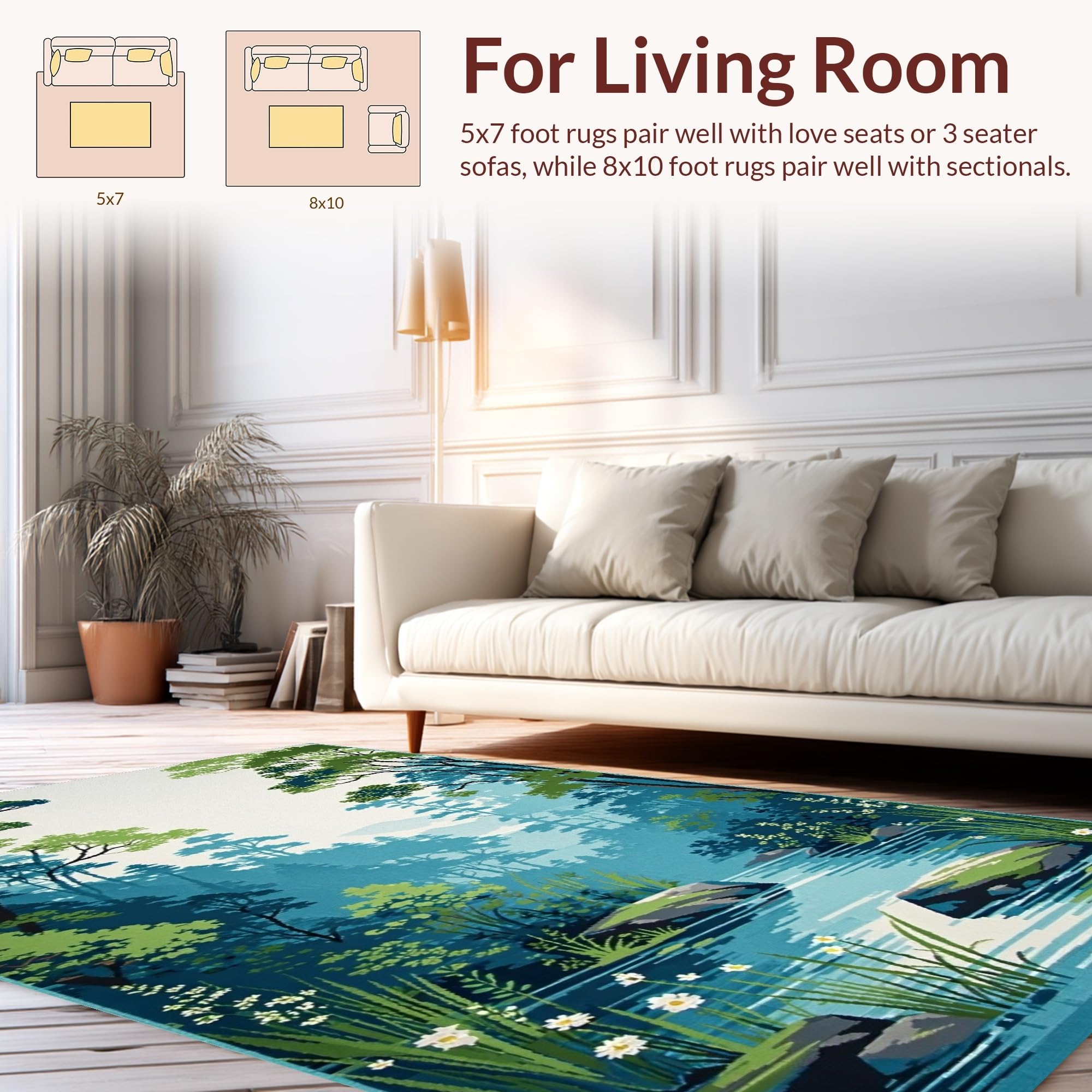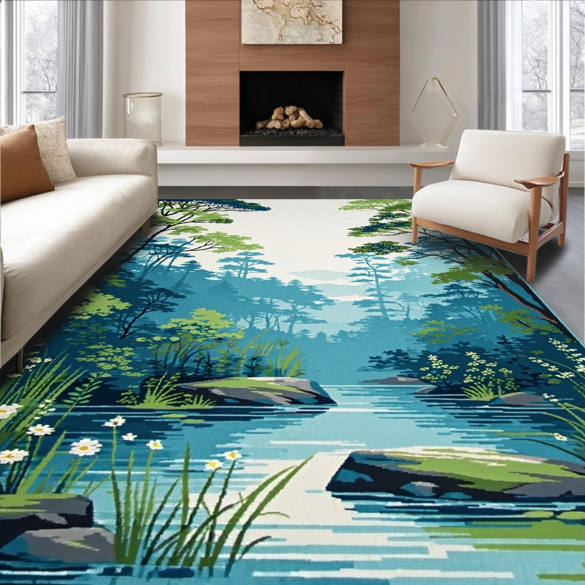 Ultra Soft Area Rug, Non Slip, Stain Resistant, Washable Area Rugs for Living Room, Bedroom, Dreamy Watercolor Pond Visualization(Blue) Overview: