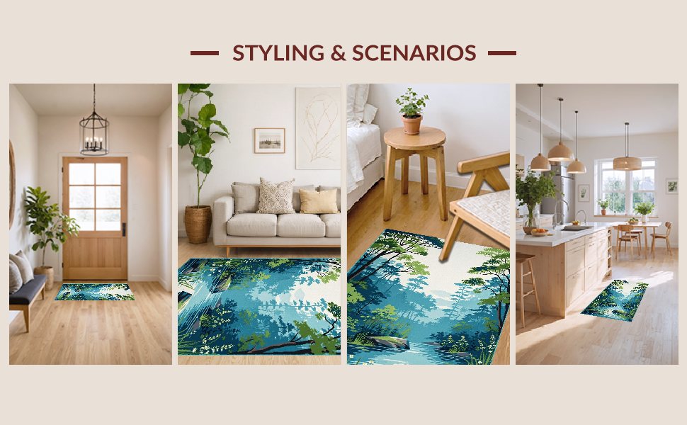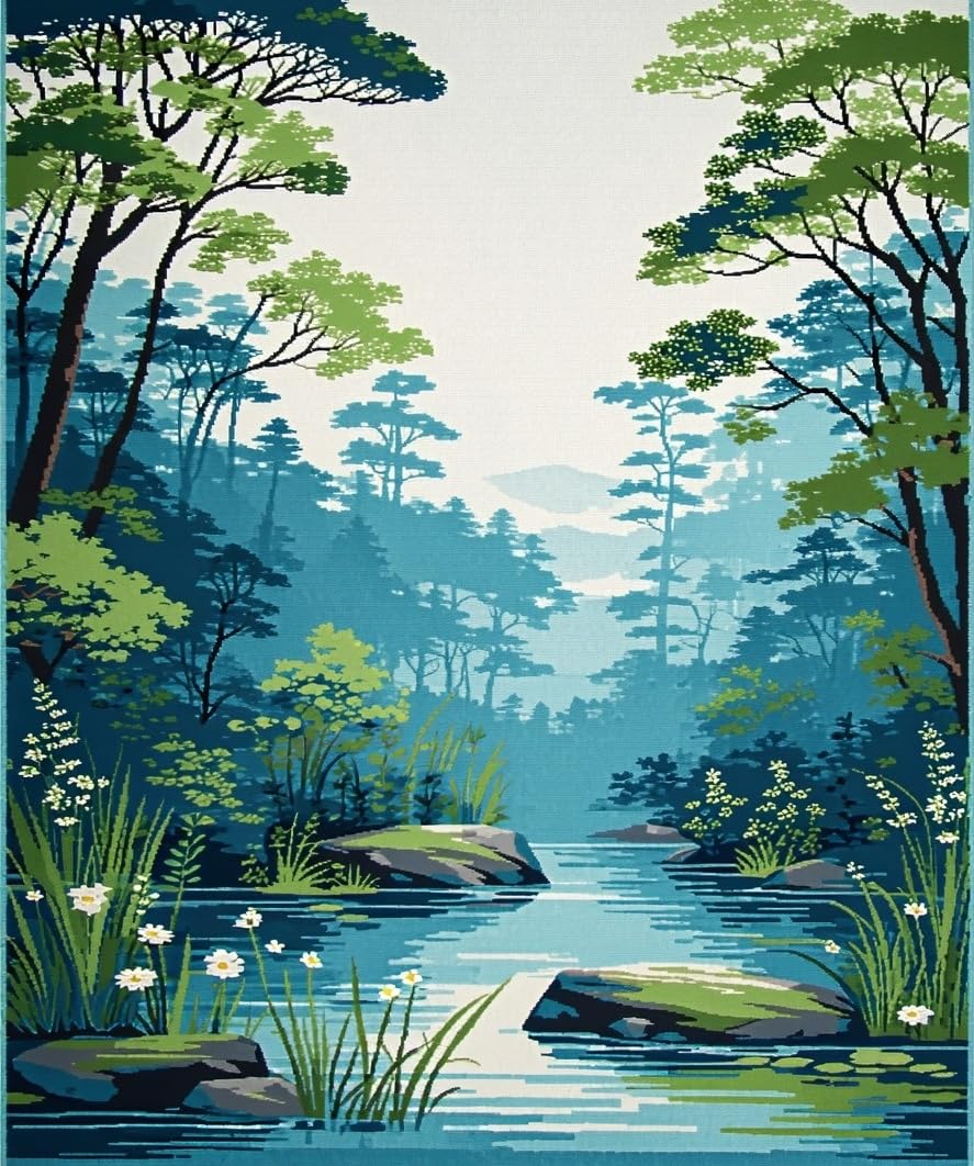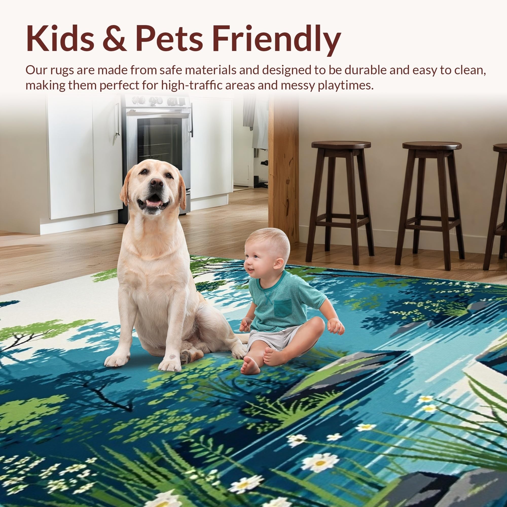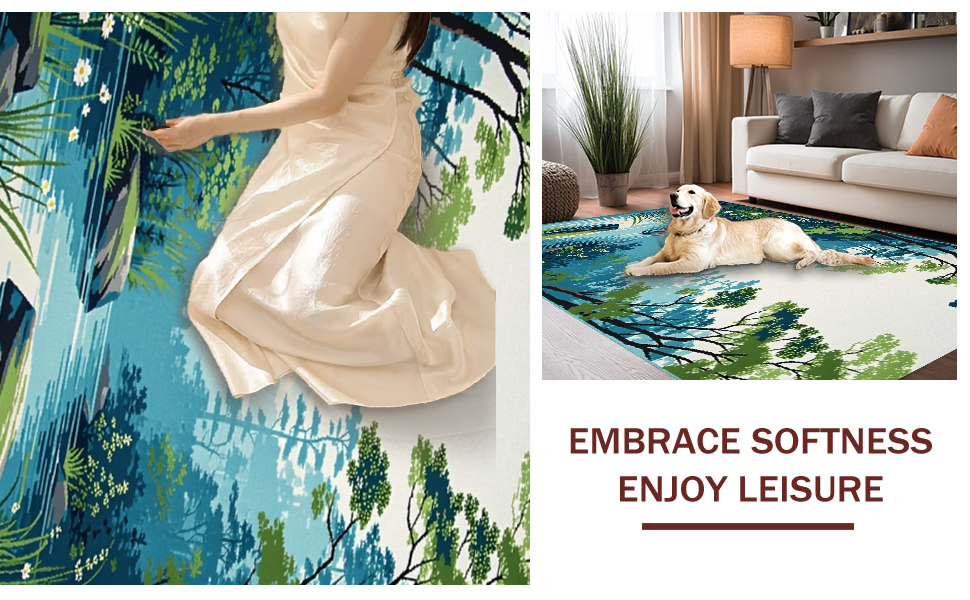 Ultra Soft Area Rug, Non Slip, Stain Resistant, Washable Area Rugs for Living Room, Bedroom, Dreamy Watercolor Pond Visualization(Blue) Overview: