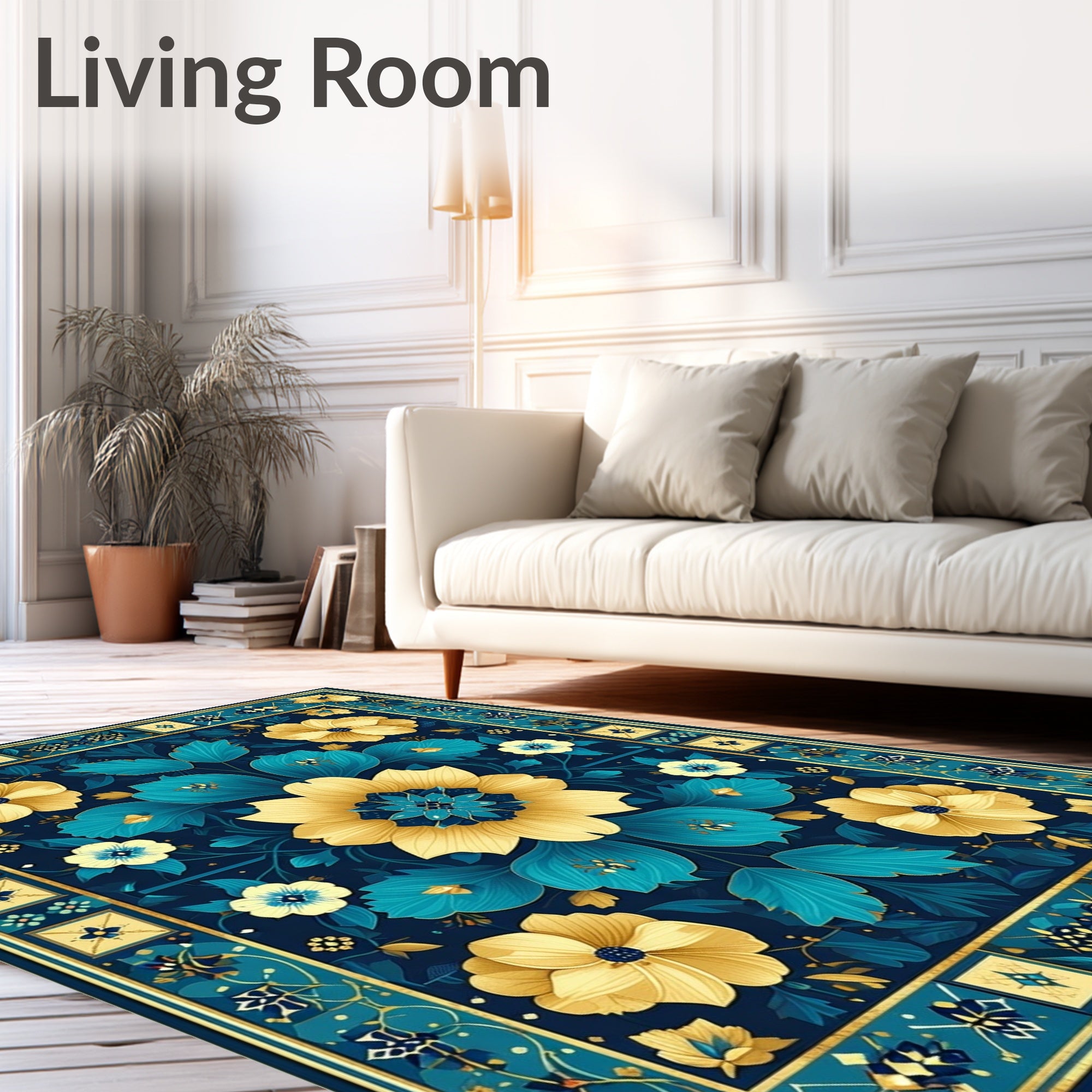 Flatwoven High Traffic Area Rug, Large Indoor, Non Slip, Stain Resistant, Washable Area Rugs for Living Room, Bedroom (Blue) Overview: