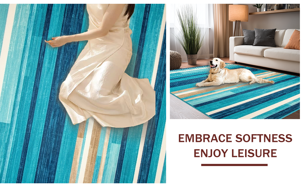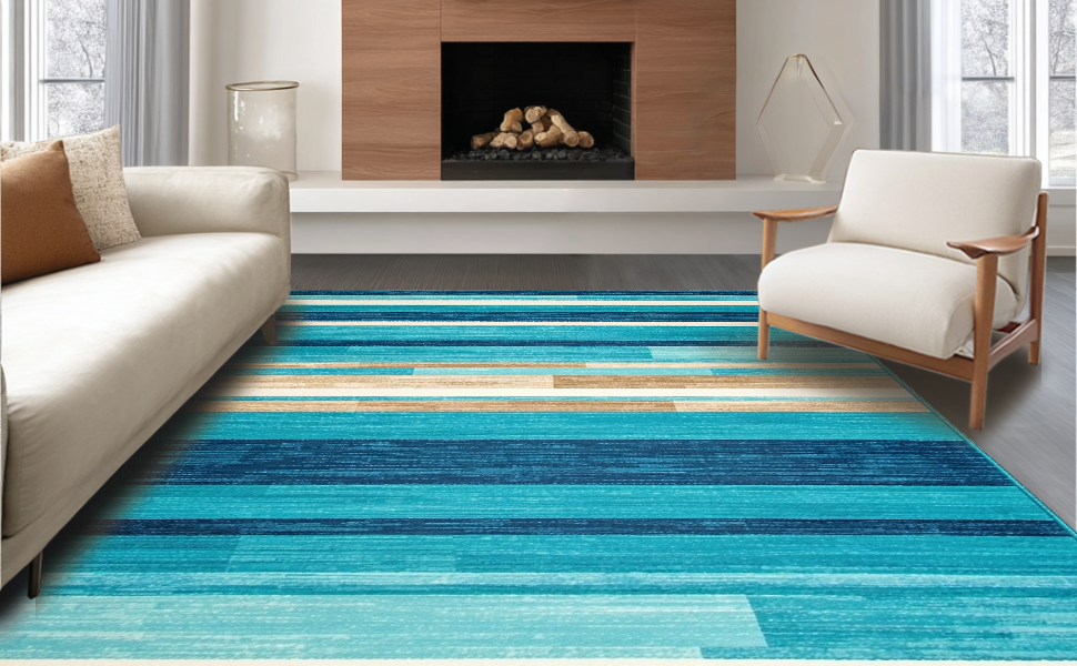 Ultra Soft Area Rug, Non Slip, Stain Resistant, Washable Area Rugs for Living Room, Bedroom, Dynamic Aqua Blue Surf Design(Blue) Overview: