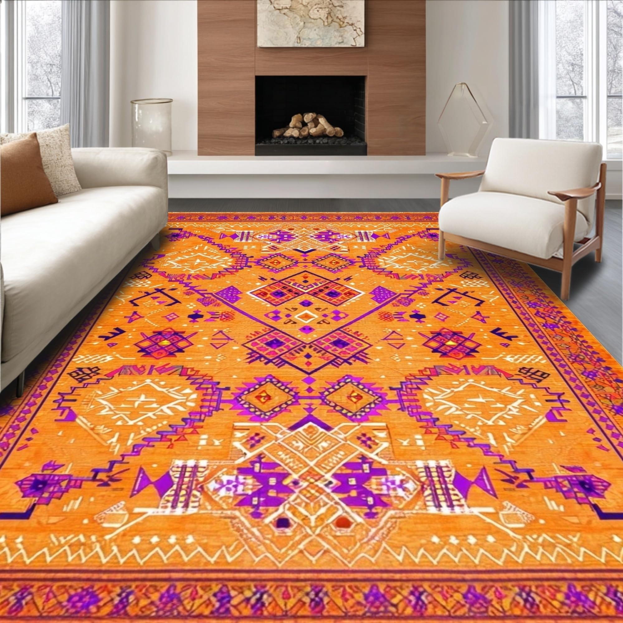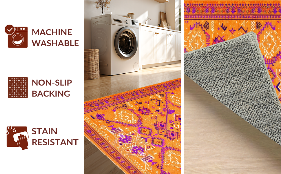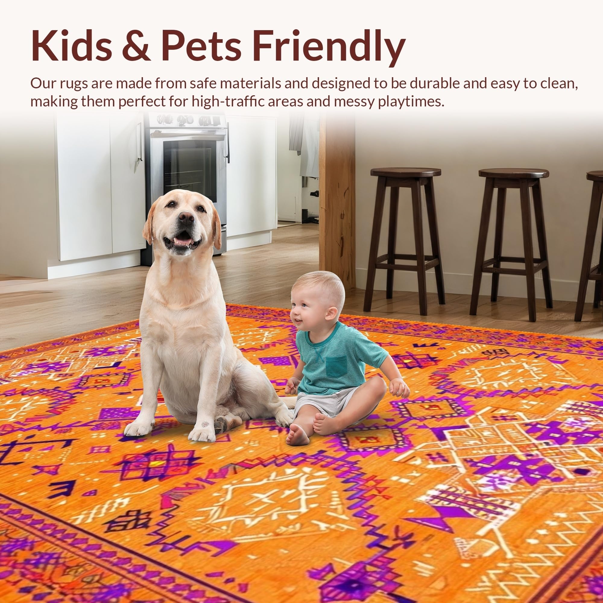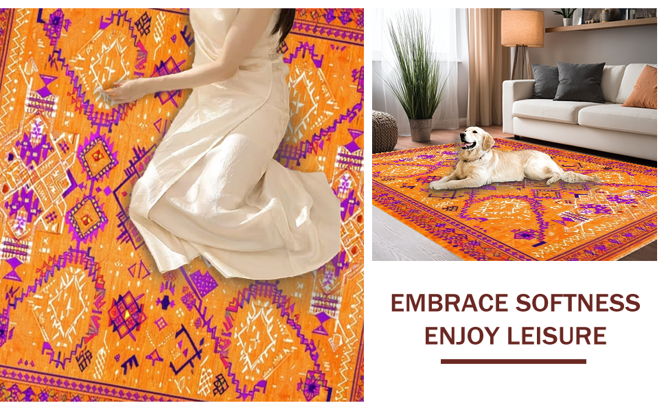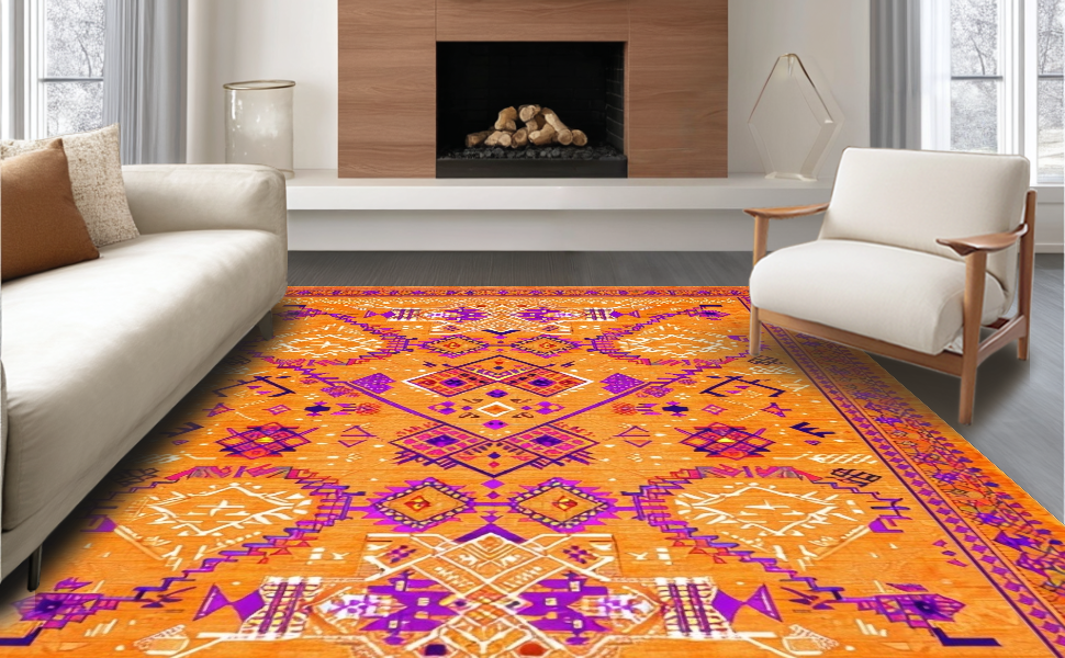 Ultra Soft Area Rug, Non Slip, Stain Resistant, Washable Area Rugs for Living Room, Bedroom, Dynamic Artisan Woven Palette(Orange) Overview: