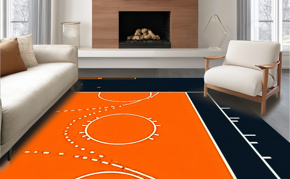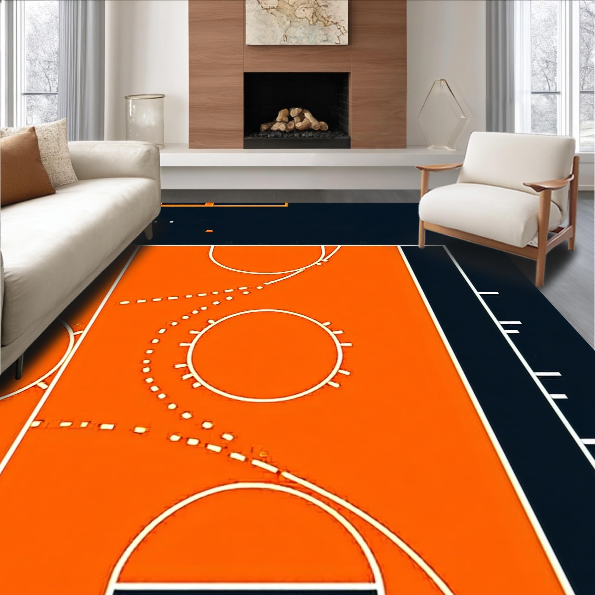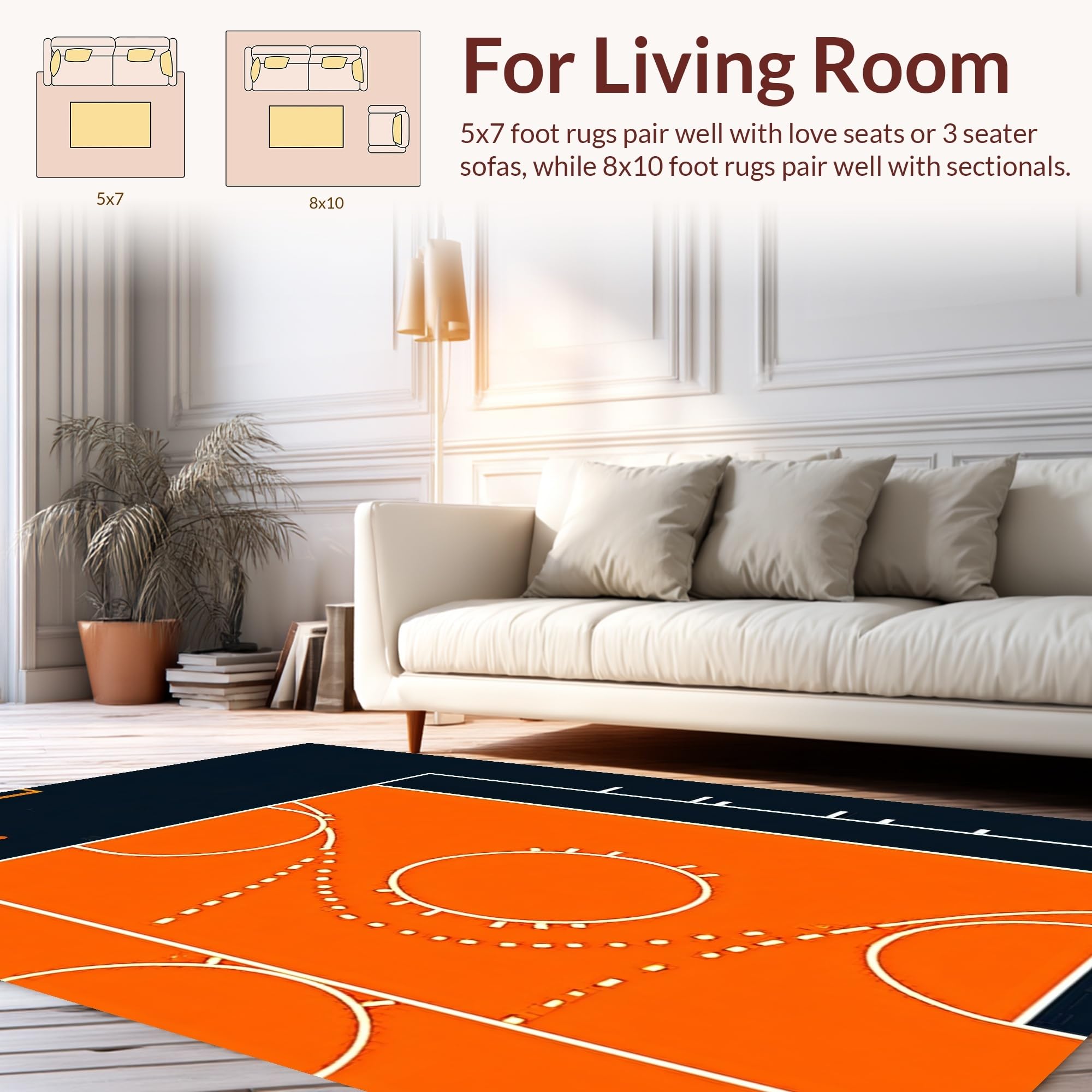 Ultra Soft Area Rug, Non Slip, Stain Resistant, Washable Area Rugs for Living Room, Bedroom, Dynamic Basketball Graphic Artistry(Orange) Overview: