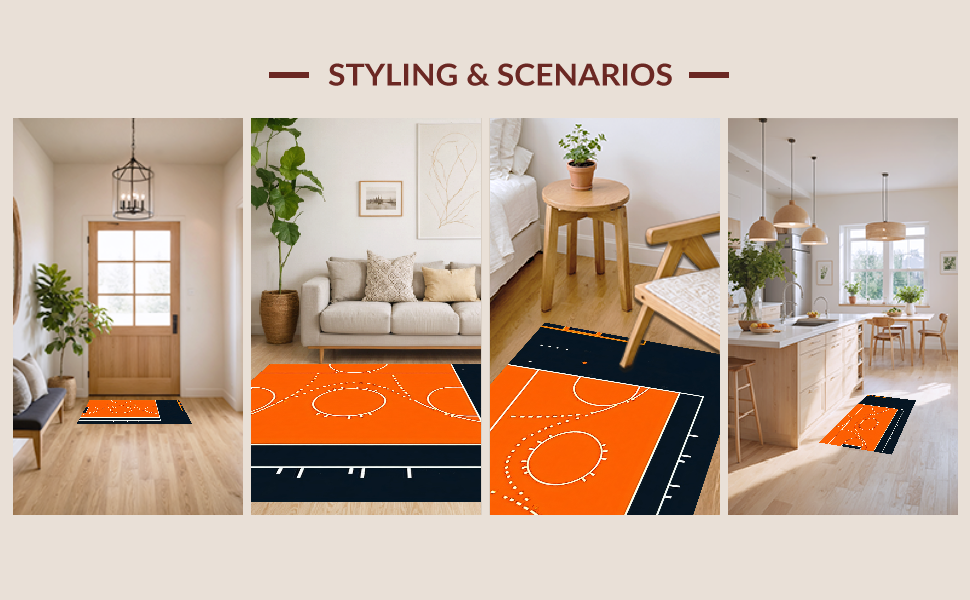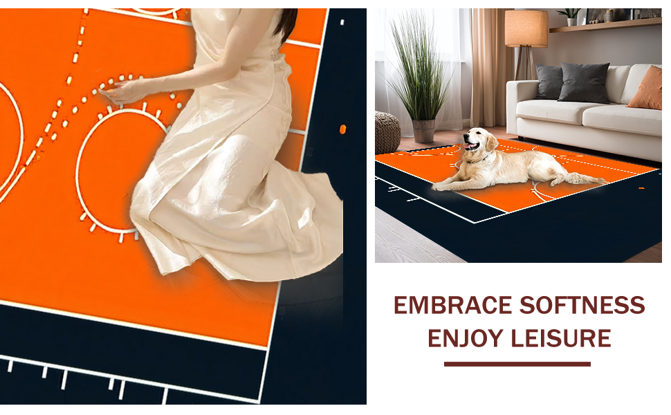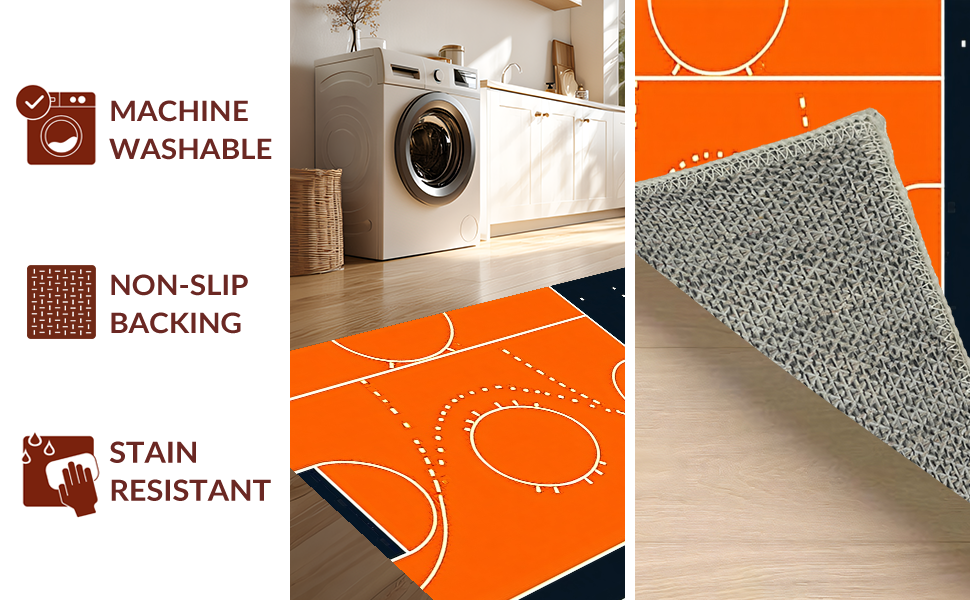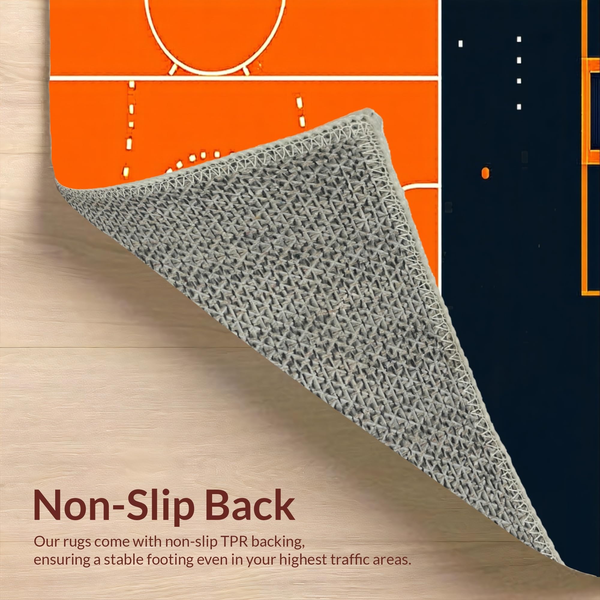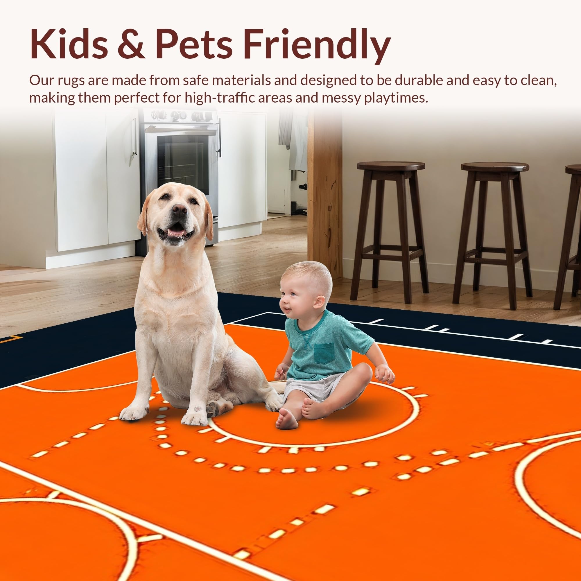 Ultra Soft Area Rug, Non Slip, Stain Resistant, Washable Area Rugs for Living Room, Bedroom, Dynamic Basketball Graphic Artistry(Orange) Overview:
