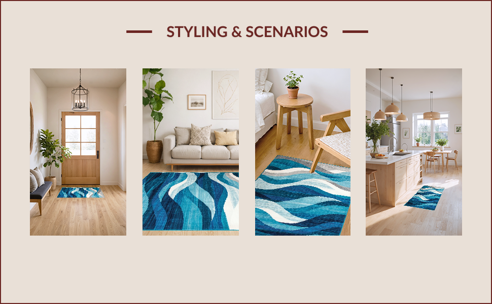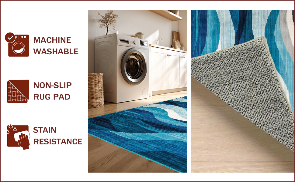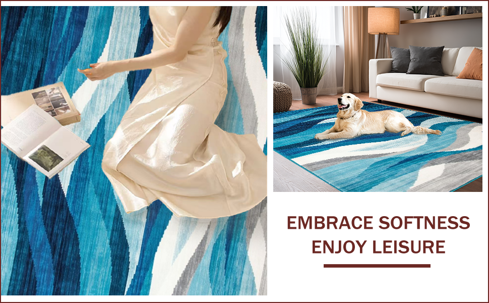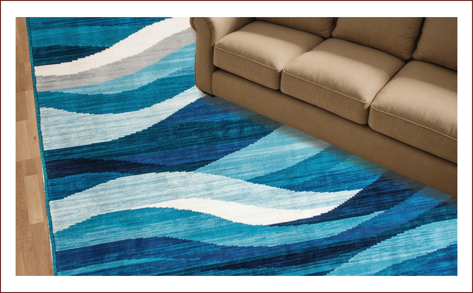 Ultra Soft Area Rug, Non Slip, Stain Resistant, Washable Area Rugs for Living Room, Bedroom, Dynamic Beach-Inspired Textural Motif(Blue) Overview:
