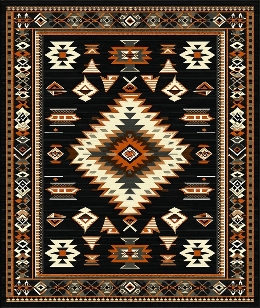 Flatwoven High Traffic Area Rug, Dynamic Black and Geometric Styles, Non Slip, Stain Resistant, Washable Area Rugs for Living Room, Bedroom (Black) Overview: