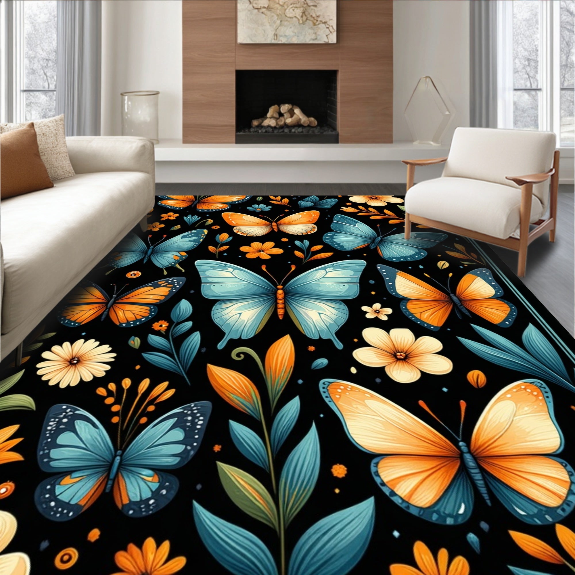 Flatwoven High Traffic Area Rug, Dynamic Black and Teal Palette, Non Slip, Stain Resistant, Washable Area Rugs for Living Room, Bedroom (Black) Overview: