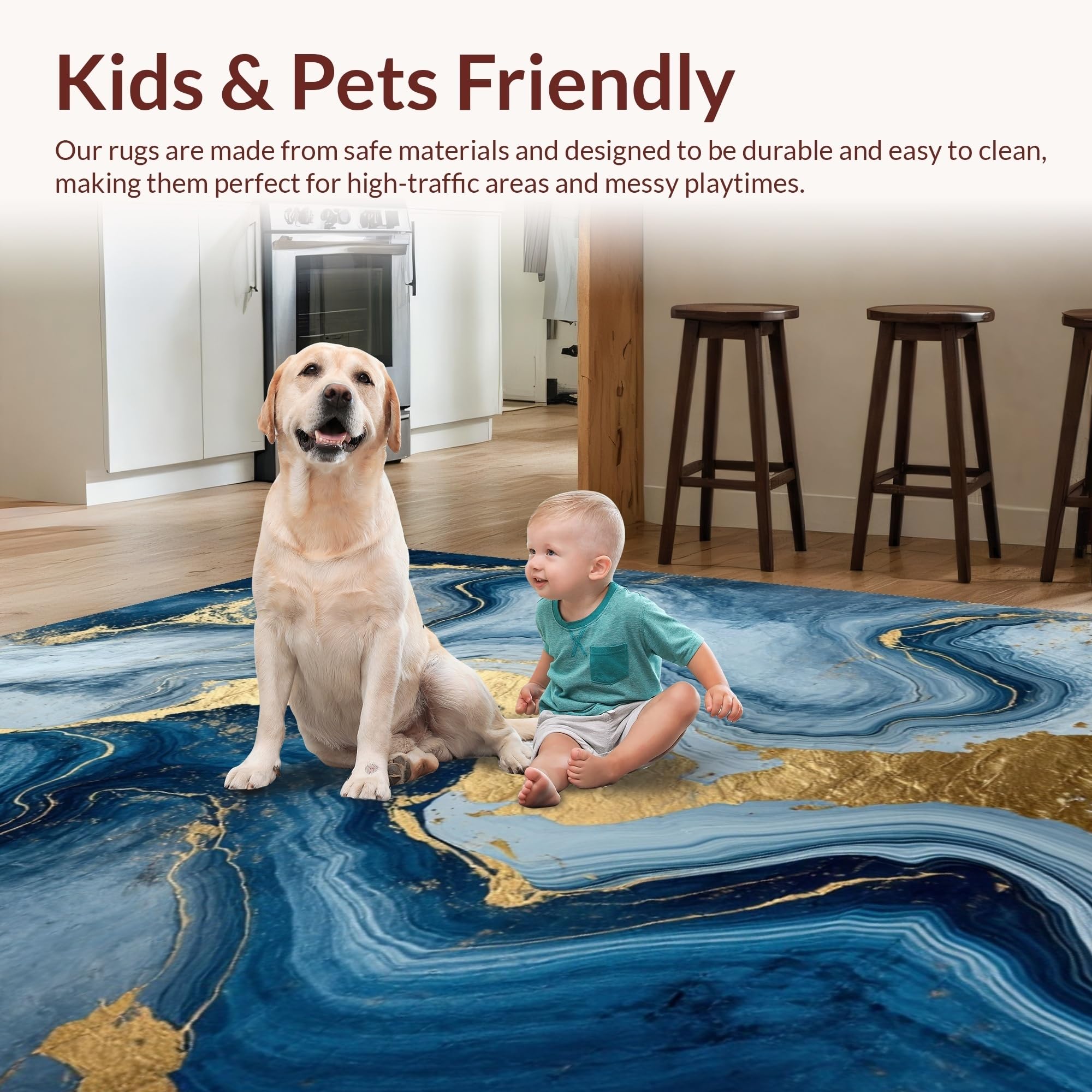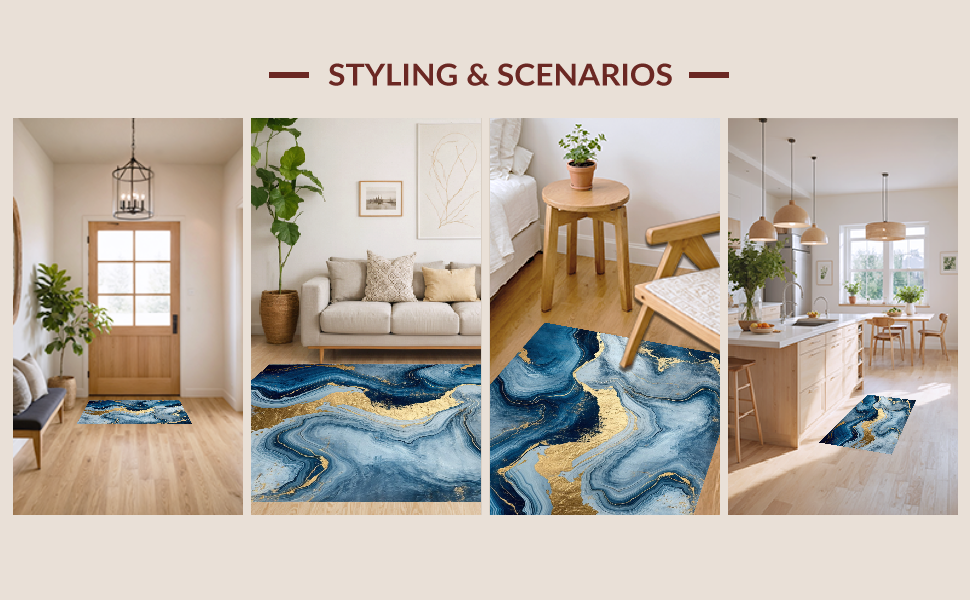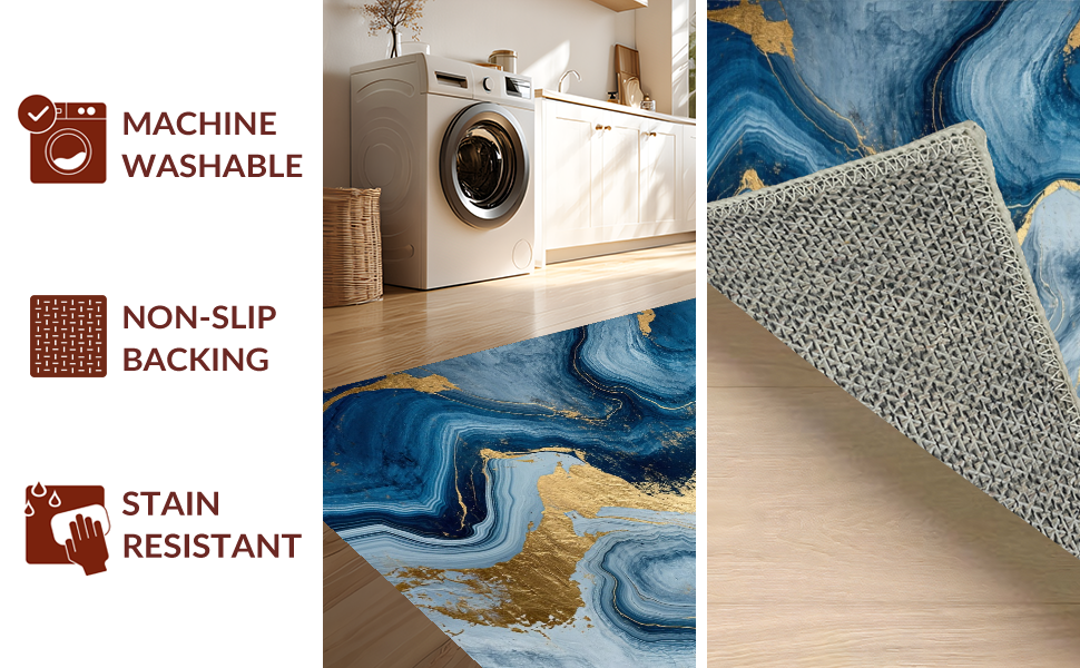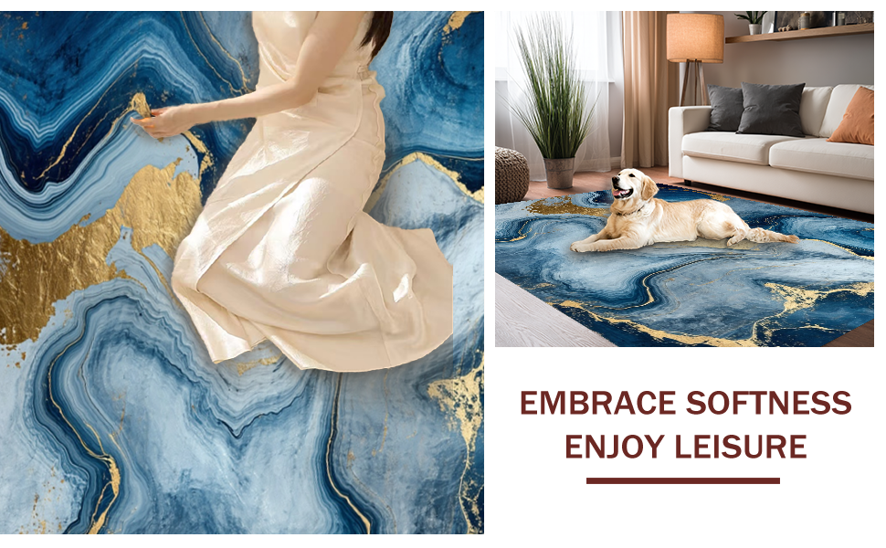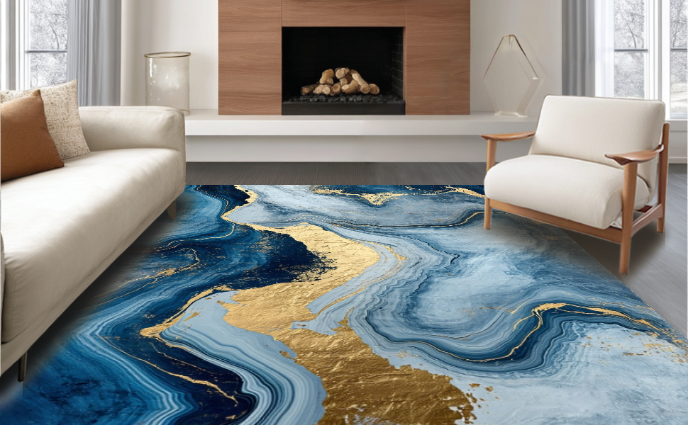 Ultra Soft Area Rug, Non Slip, Stain Resistant, Washable Area Rugs for Living Room, Bedroom, Dynamic Blue and Gold Layers(Blue) Overview: