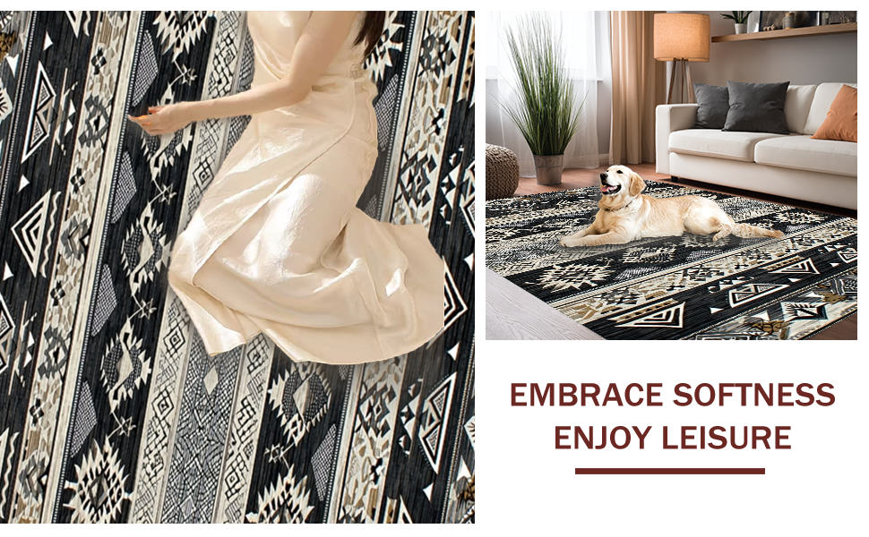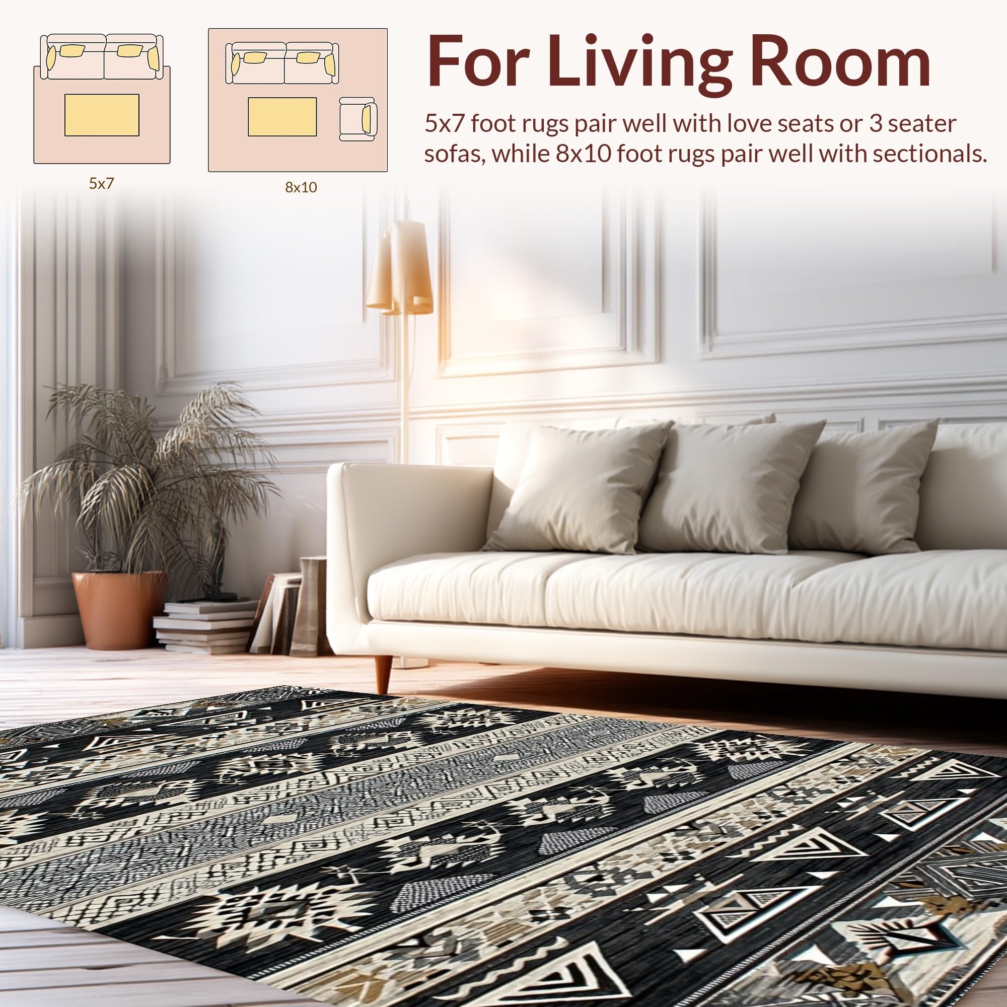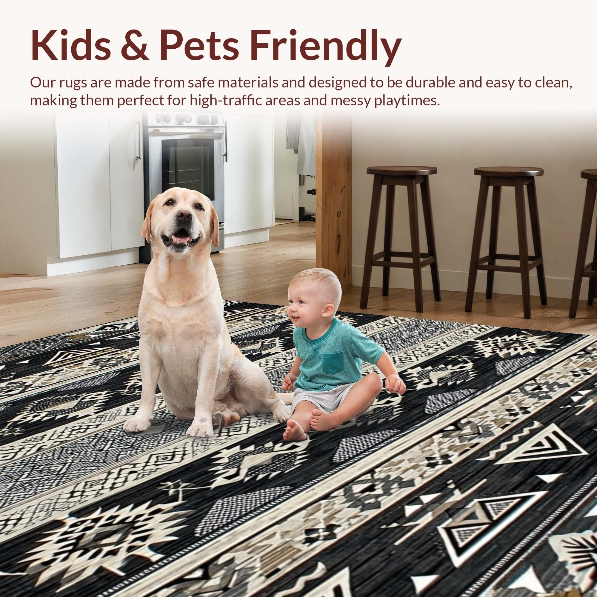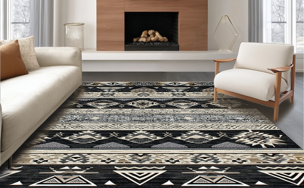 Ultra Soft Area Rug, Non Slip, Stain Resistant, Washable Area Rugs for Living Room, Bedroom, Dynamic Boho Wave Pattern(Black) Overview: