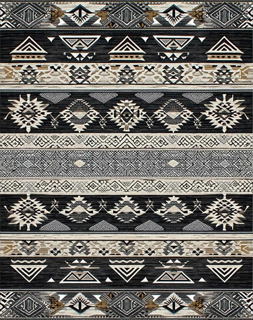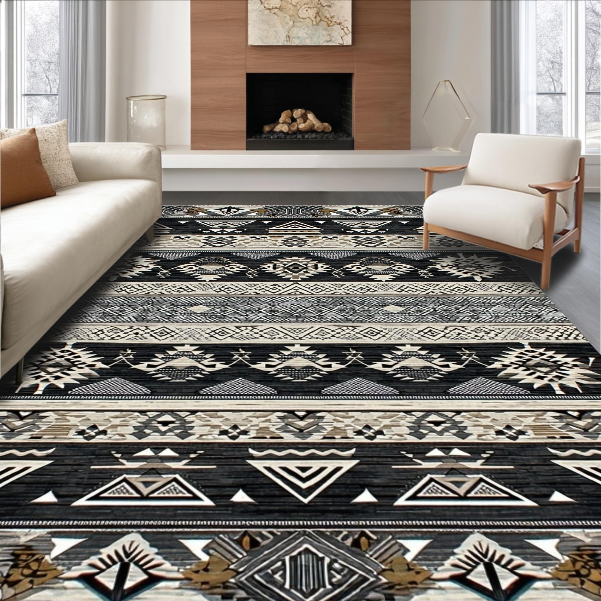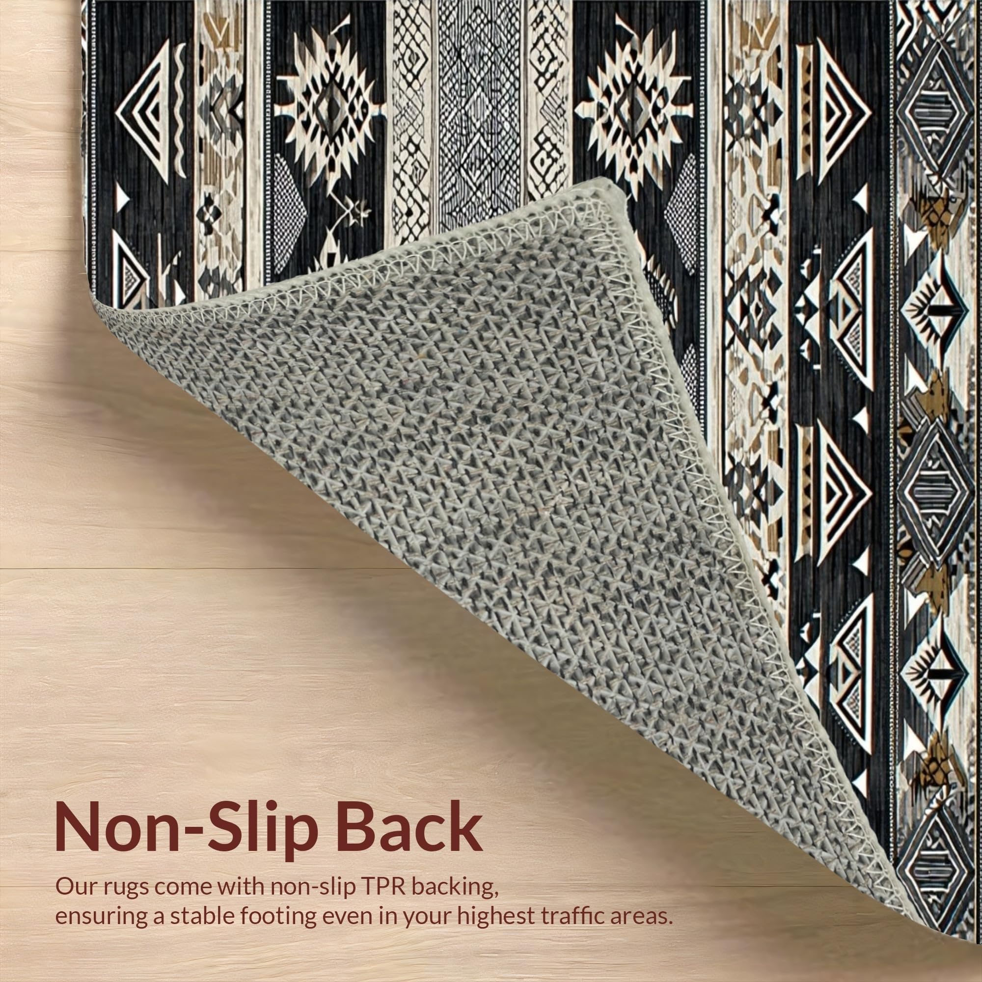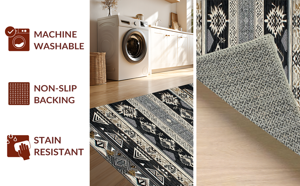 Ultra Soft Area Rug, Non Slip, Stain Resistant, Washable Area Rugs for Living Room, Bedroom, Dynamic Boho Wave Pattern(Black) Overview: