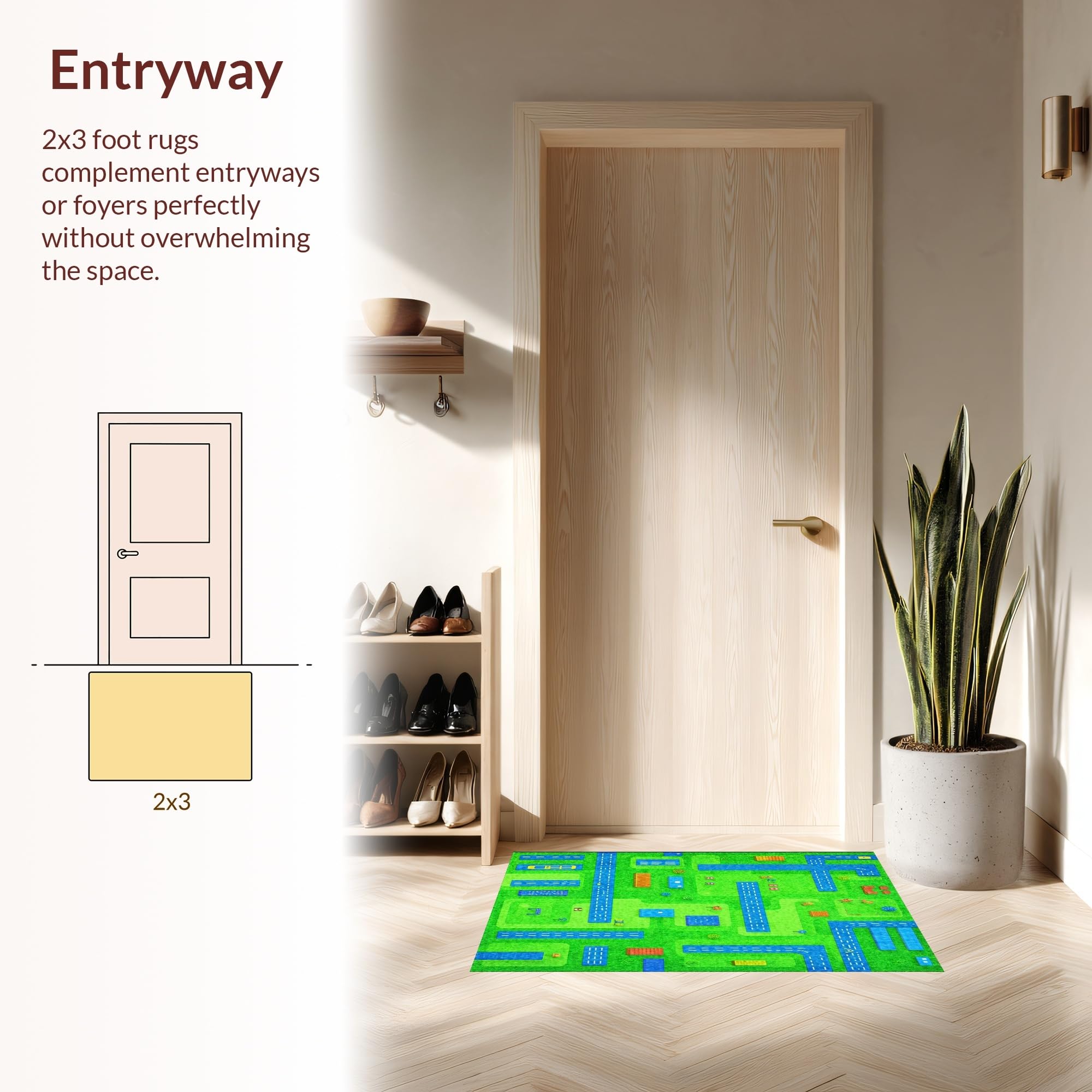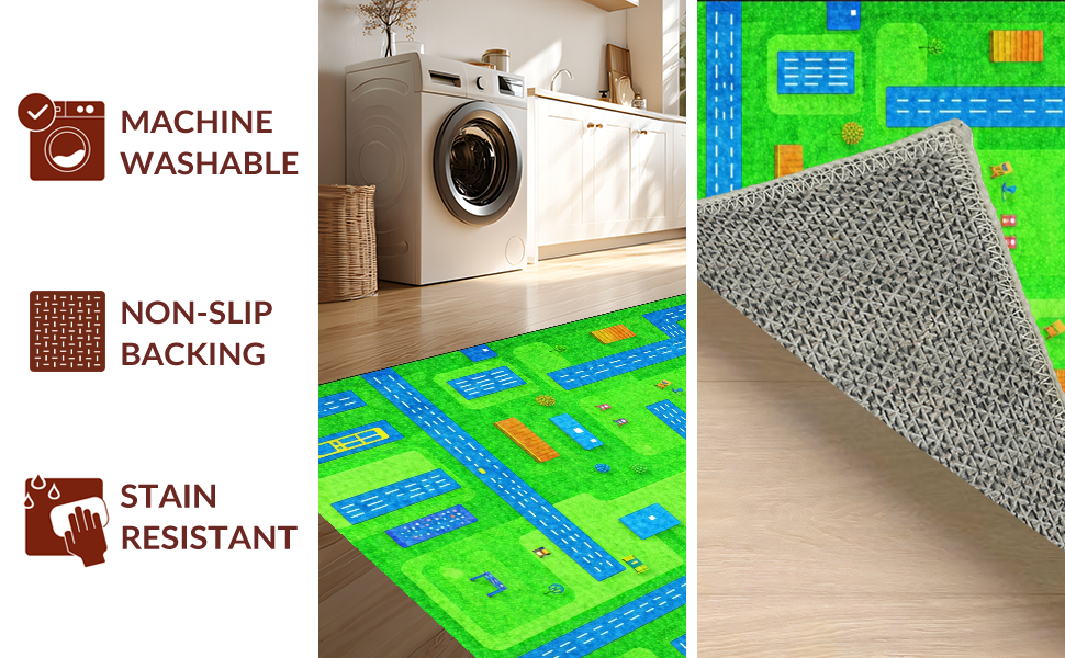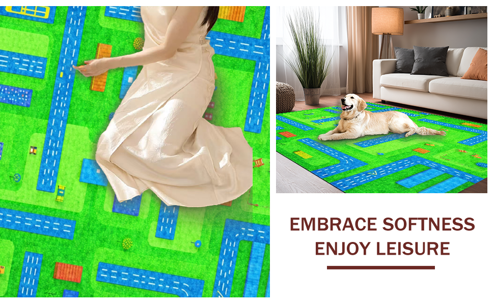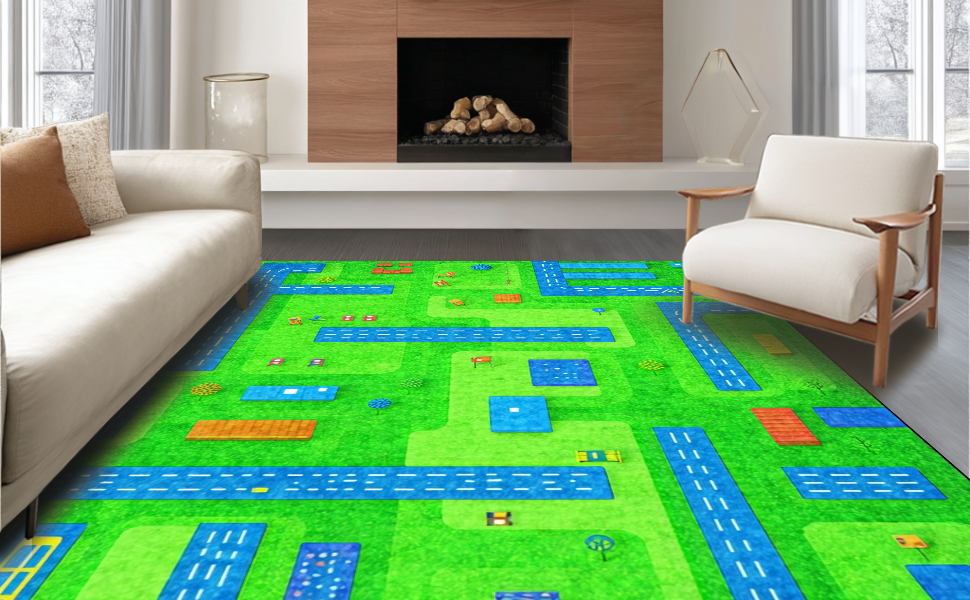 Ultra Soft Area Rug, Non Slip, Stain Resistant, Washable Area Rugs for Living Room, Bedroom, Dynamic Child-Friendly Townscape Layout(Green) Overview: