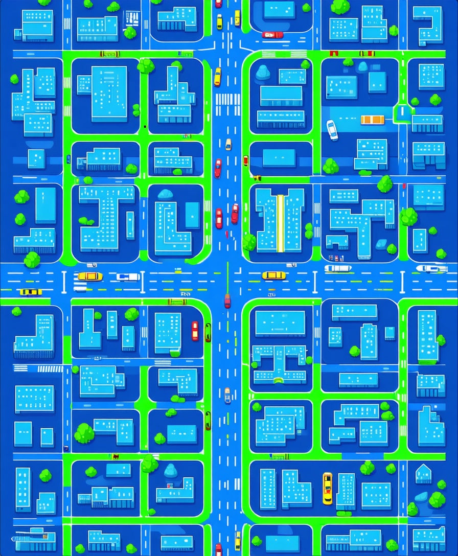 Flatwoven High Traffic Area Rug, Dynamic Cityscape Exploration Theme, Non Slip, Stain Resistant, Washable Area Rugs for Living Room, Bedroom (Blue) Overview:
