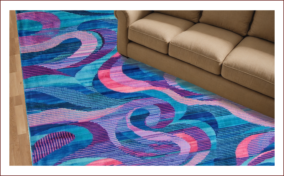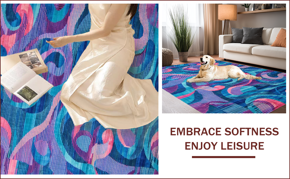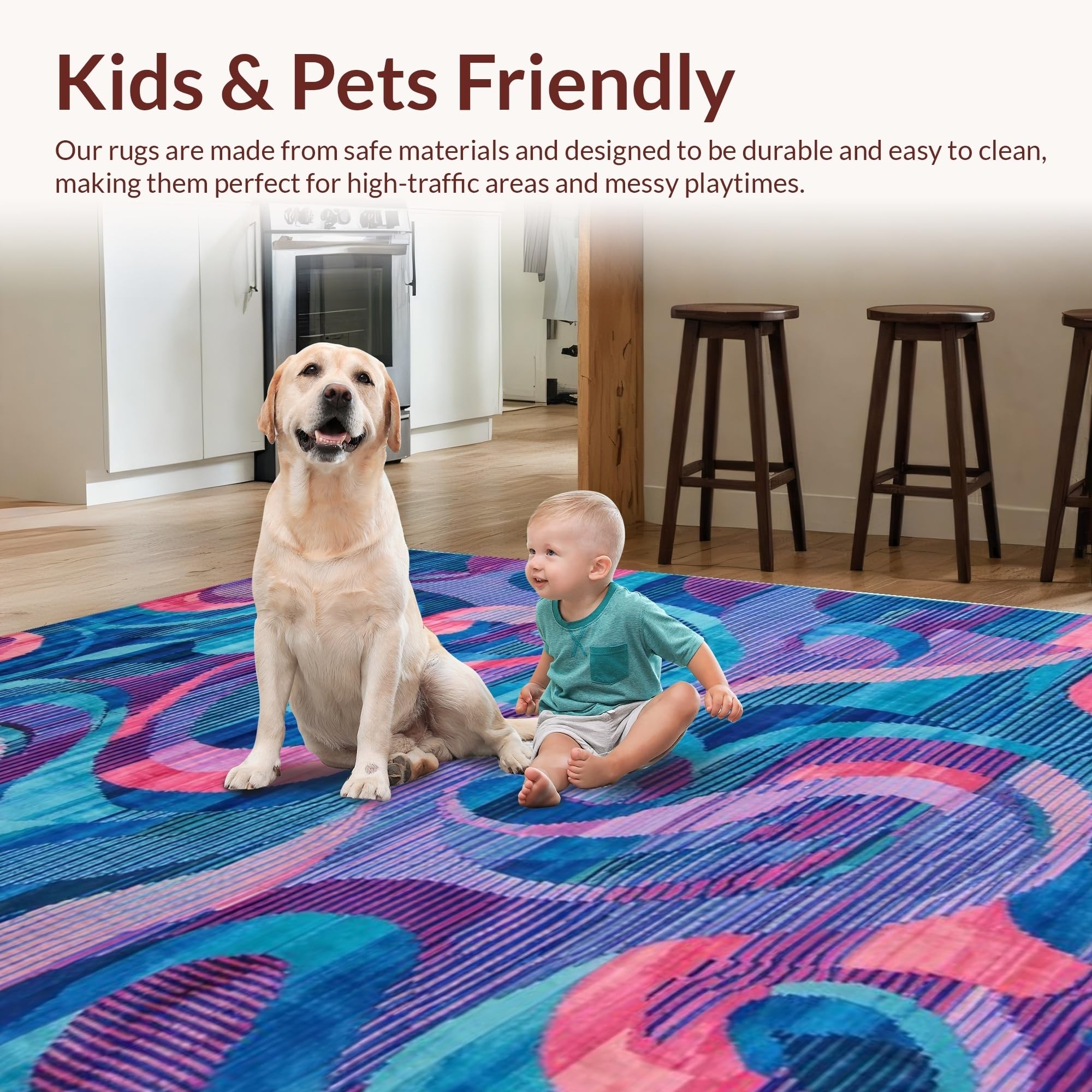 Ultra Soft Area Rug, Non Slip, Stain Resistant, Washable Area Rugs for Living Room, Bedroom, Dynamic Colorful Abstract Motif(Blue) Overview: