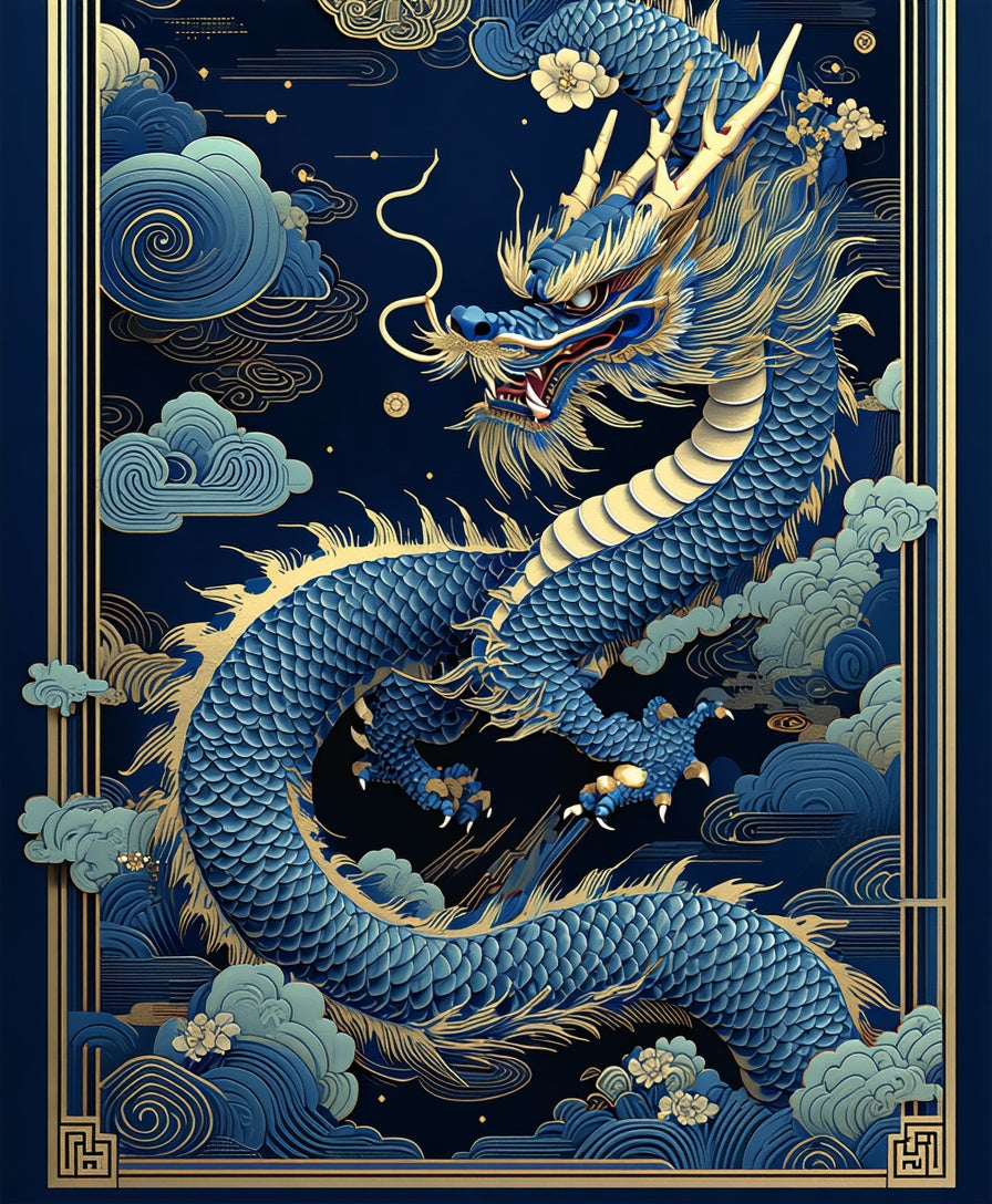 Dynamic Colorful Dragon Imagery(Blue)