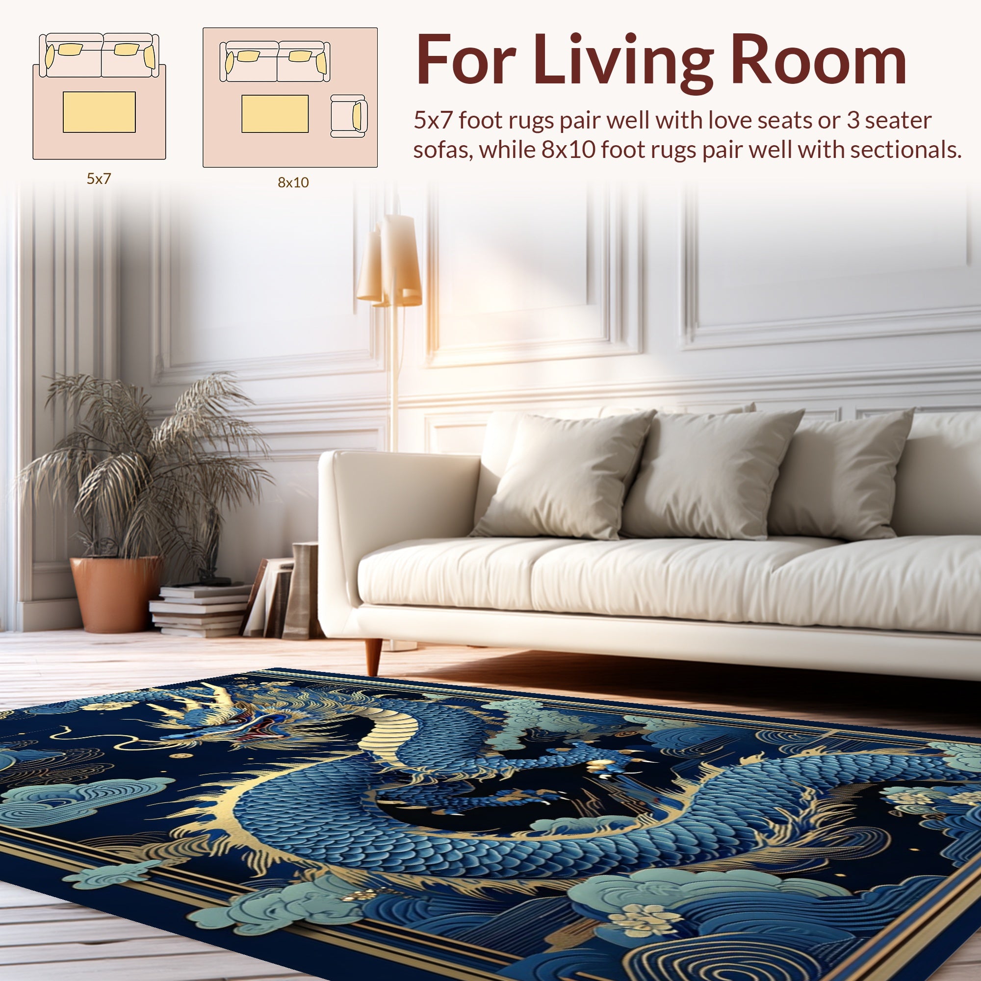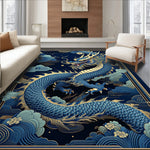Flatwoven High Traffic Area Rug, Dynamic Colorful Dragon Imagery, Non Slip, Stain Resistant, Washable Area Rugs for Living Room, Bedroom (Blue) Overview: