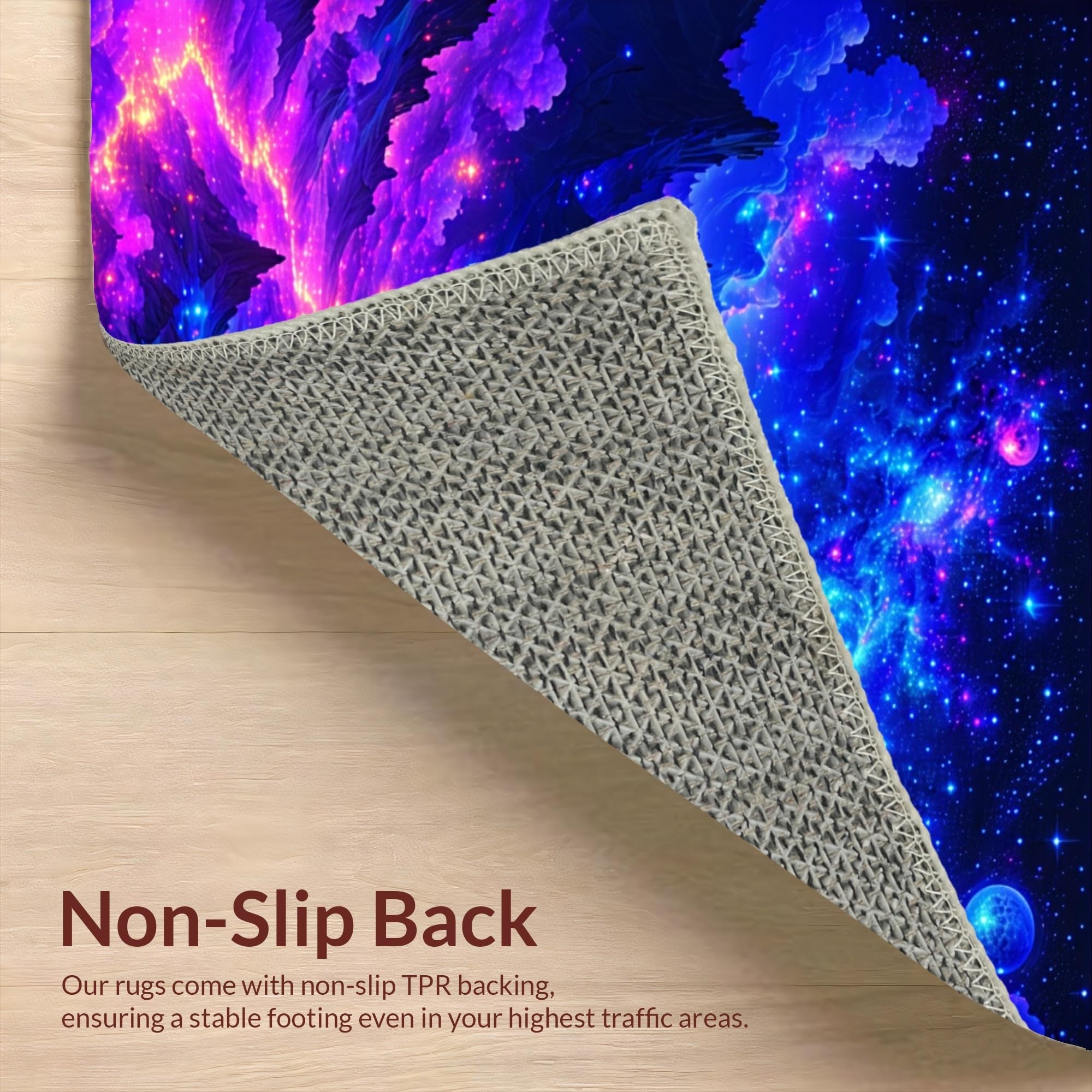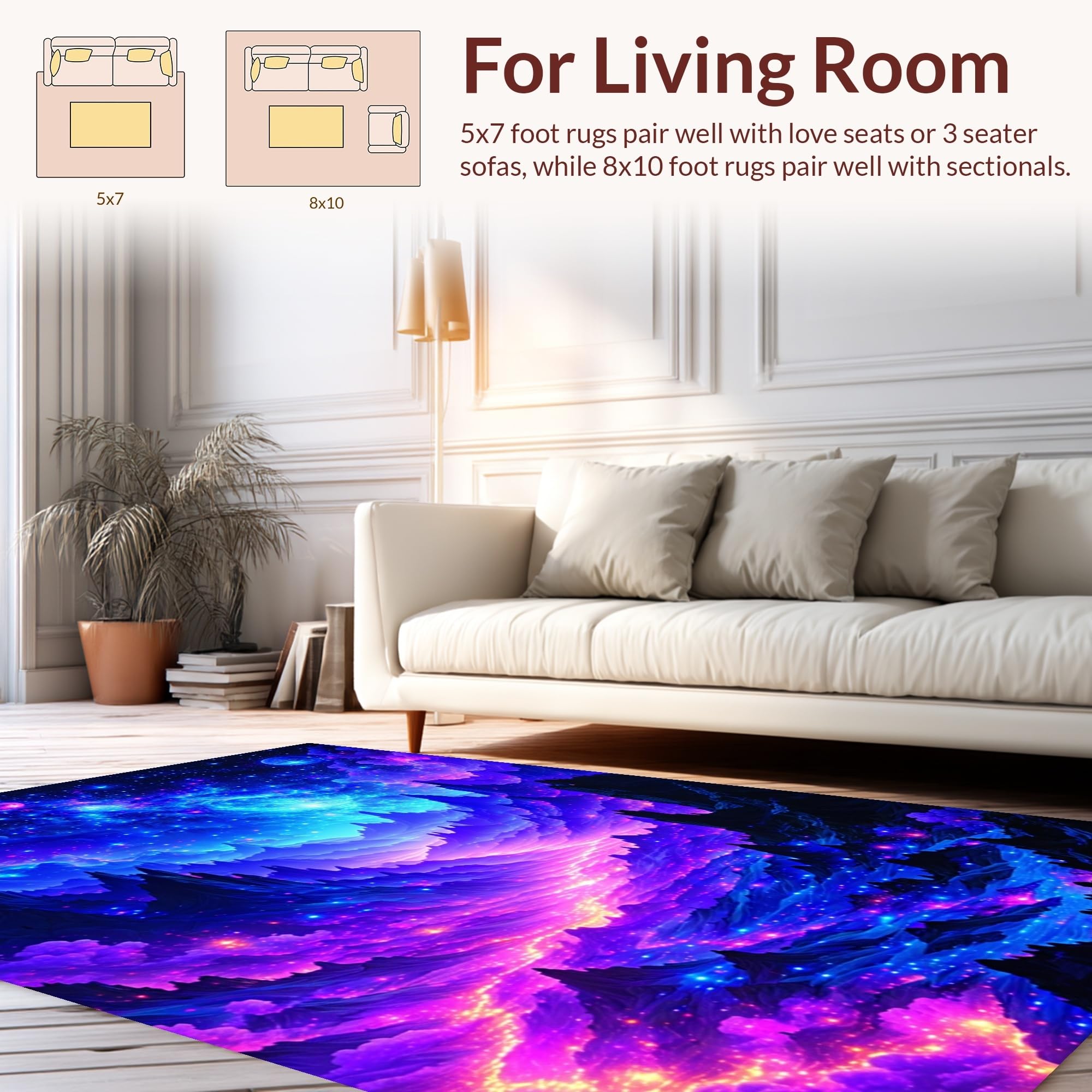 Ultra Soft Area Rug, Non Slip, Stain Resistant, Washable Area Rugs for Living Room, Bedroom, Dynamic Colorful Stellar Patterns(Purple) Overview: