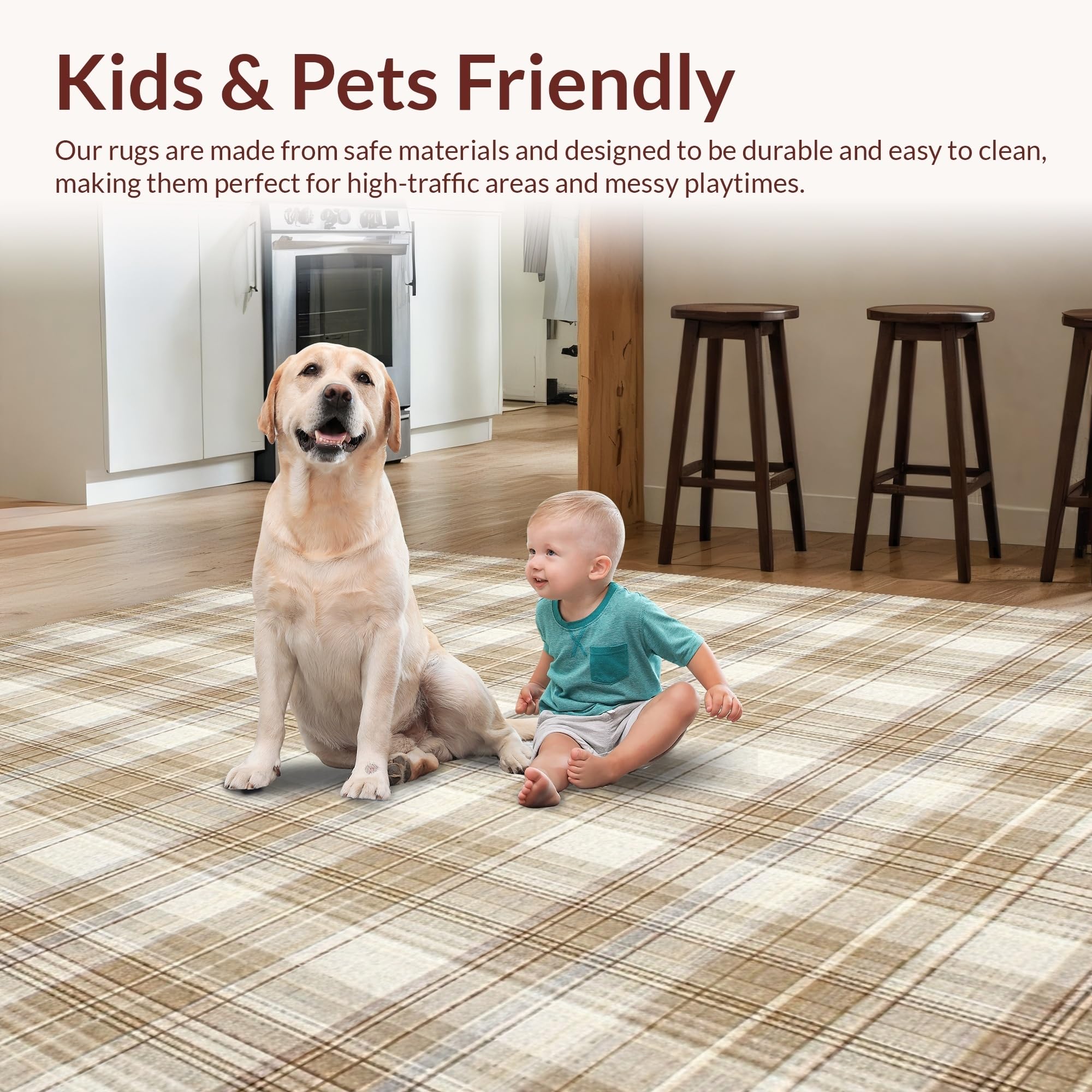Ultra Soft Area Rug, Non Slip, Stain Resistant, Washable Area Rugs for Living Room, Bedroom, Dynamic Earthy Sand Palette(Beige) Overview: