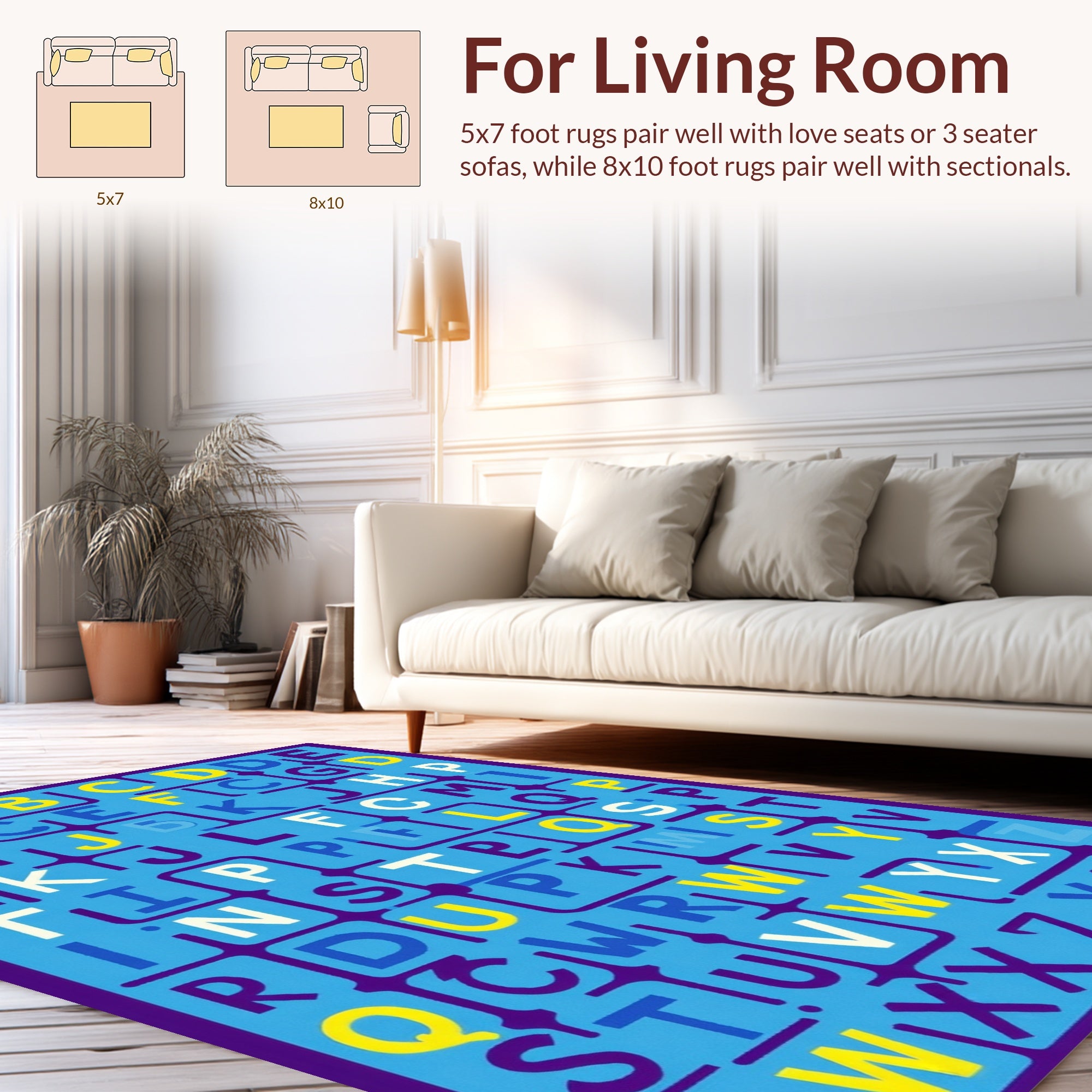 Flatwoven High Traffic Area Rug, Dynamic Educational Display, Non Slip, Stain Resistant, Washable Area Rugs for Living Room, Bedroom (Blue) Overview: