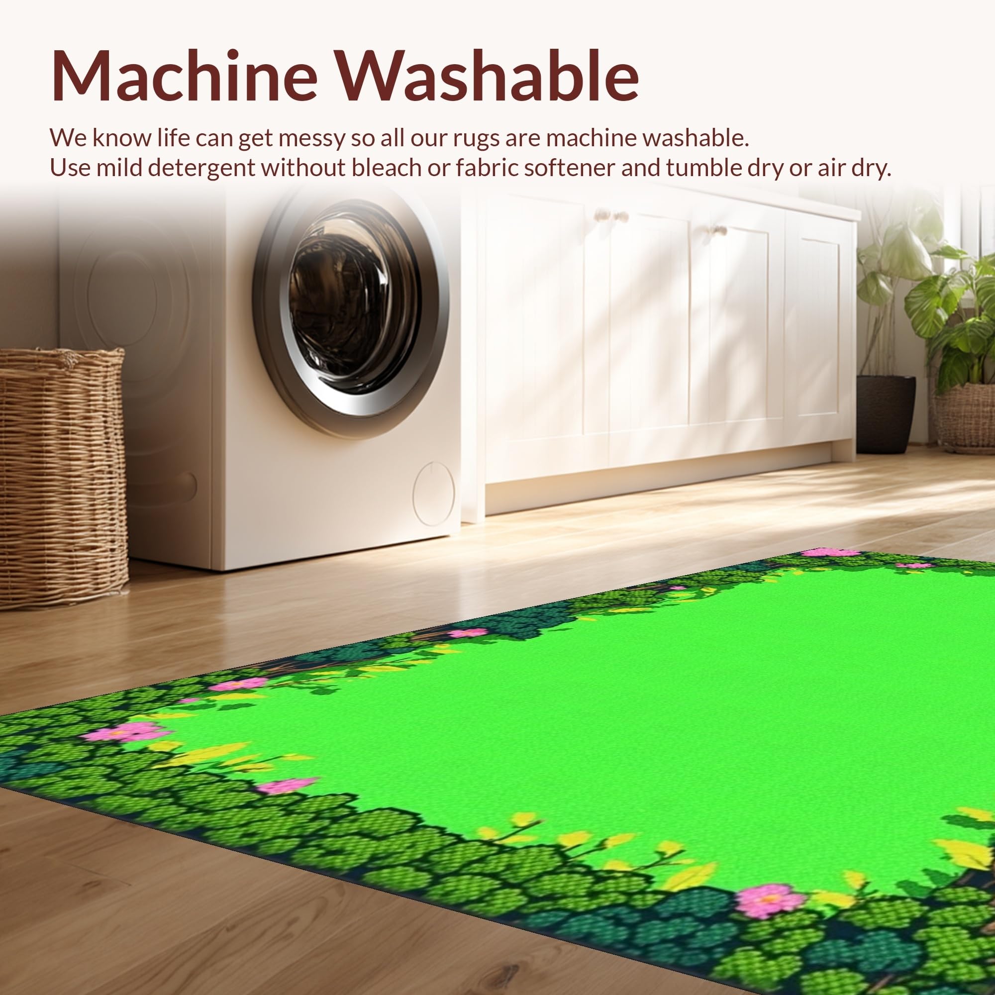- Machine Washable: Our rugs can be easily thrown in the wash machine.