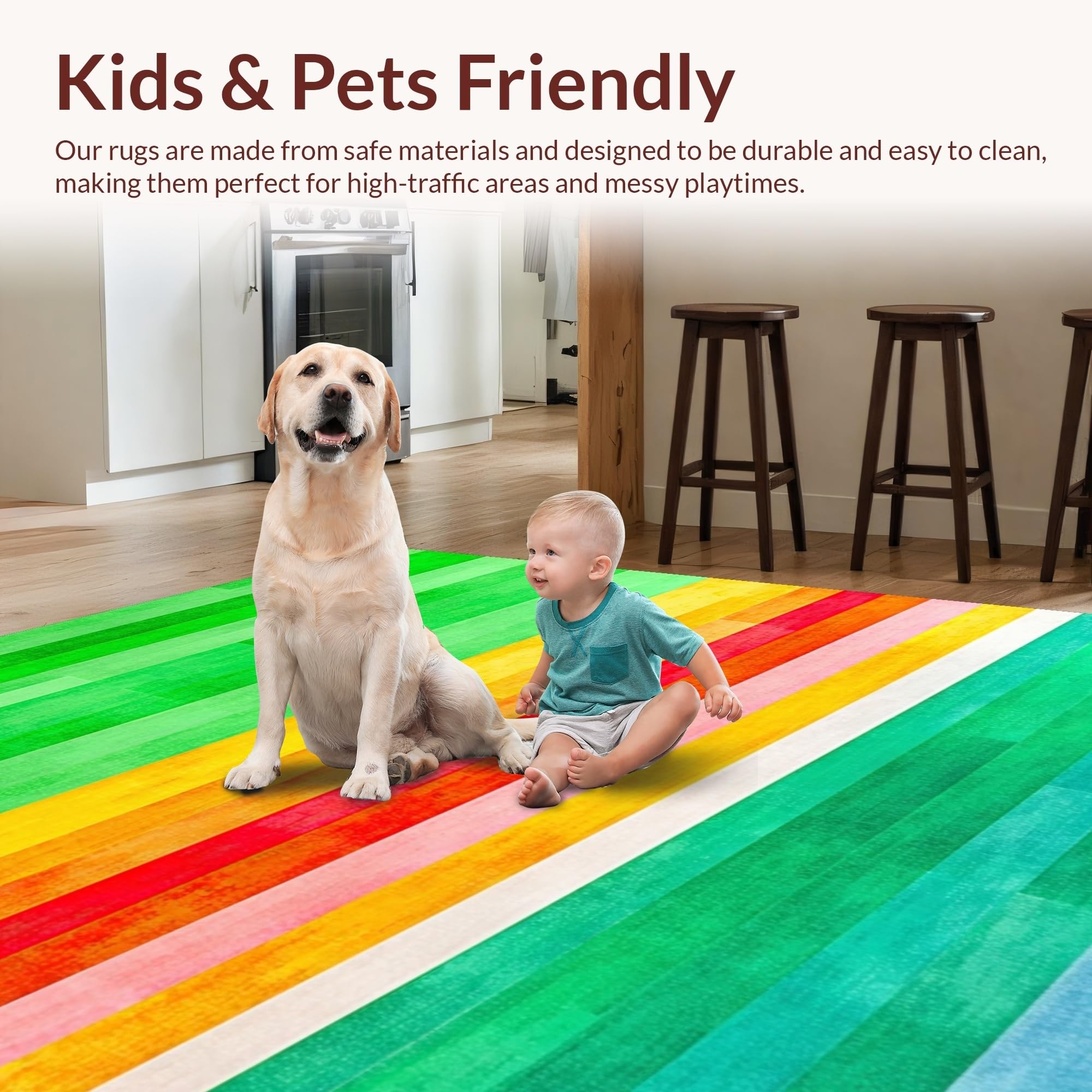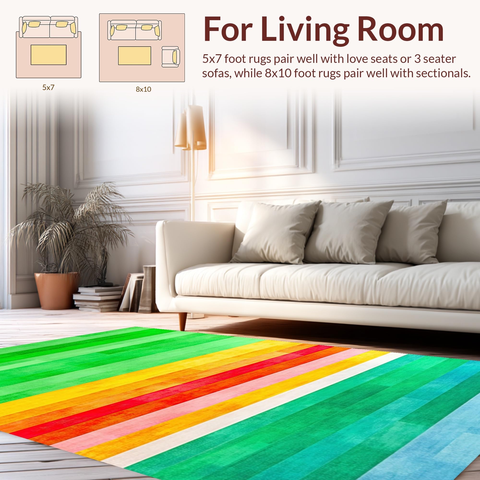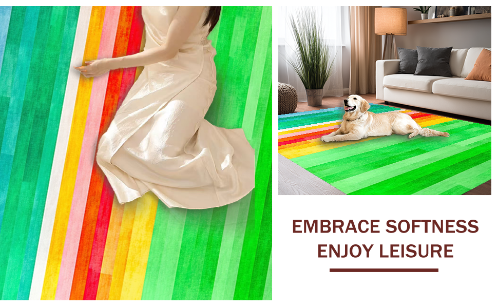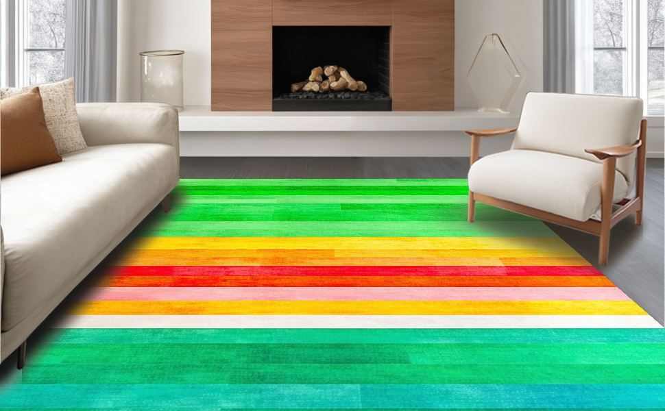 Ultra Soft Area Rug, Non Slip, Stain Resistant, Washable Area Rugs for Living Room, Bedroom, Dynamic Graphic Geometric Elements(Green) Overview: