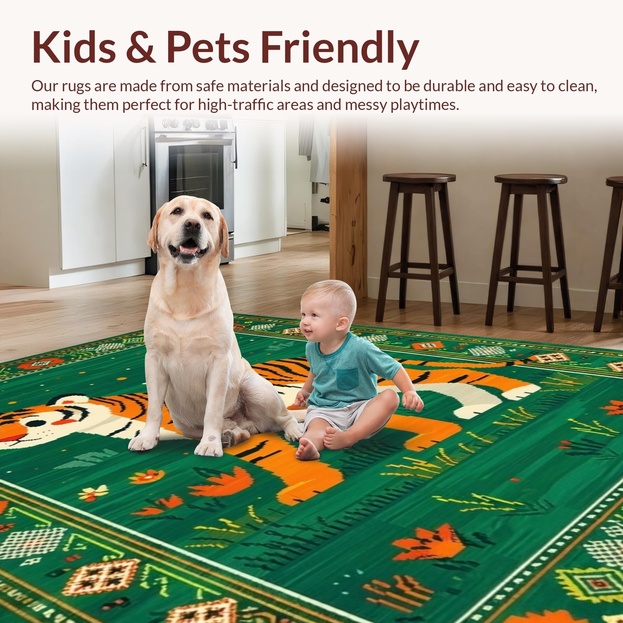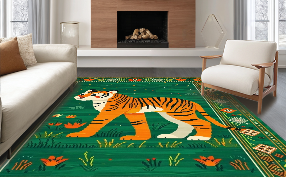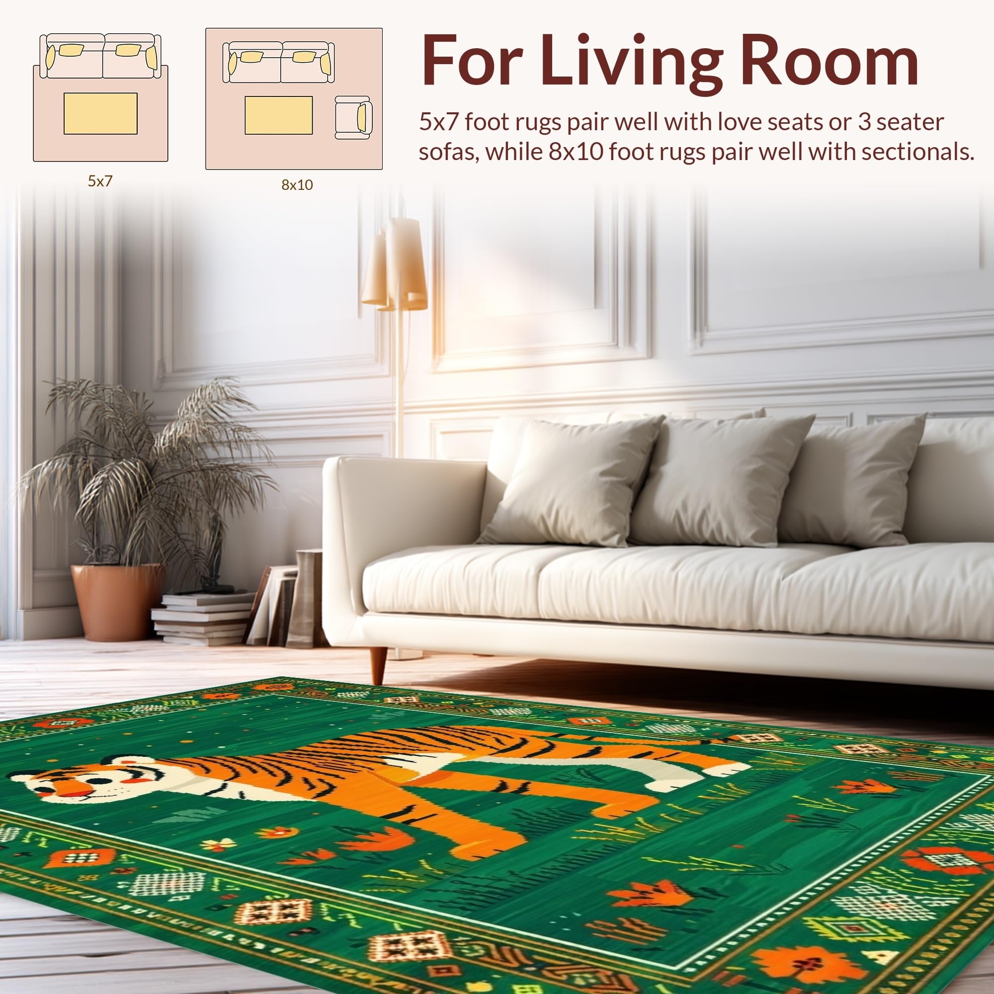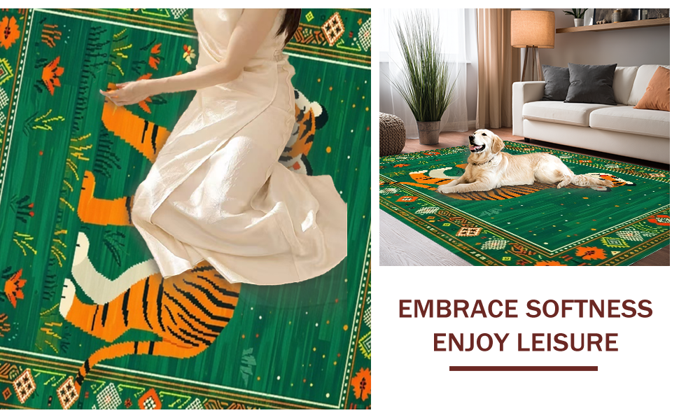 Ultra Soft Area Rug, Non Slip, Stain Resistant, Washable Area Rugs for Living Room, Bedroom, Dynamic Green and Orange Palette(Green) Overview: