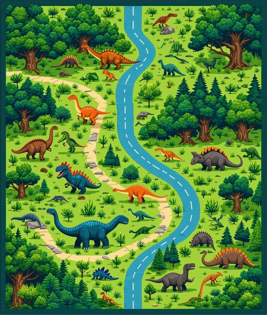 Flatwoven High Traffic Area Rug, Dynamic Jurassic Off Road Experience, Non Slip, Stain Resistant, Washable Area Rugs for Living Room, Bedroom (Green) Overview: