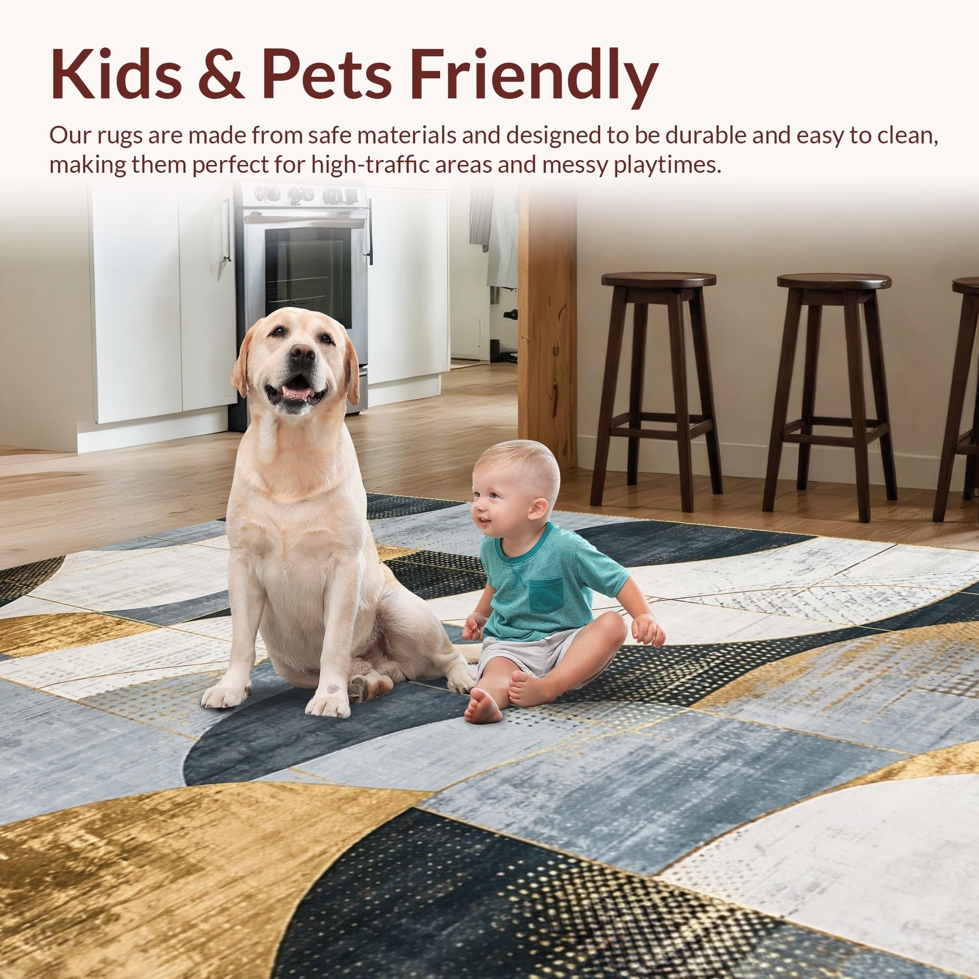 Ultra Soft Area Rug, Non Slip, Stain Resistant, Washable Area Rugs for Living Room, Bedroom, Dynamic Modern Diamond Pattern Play(Gray) Overview: